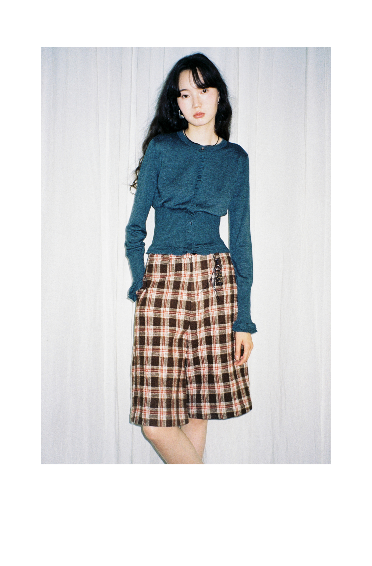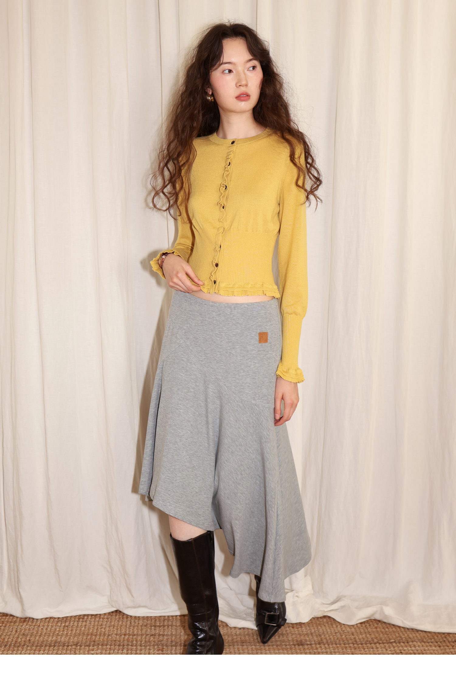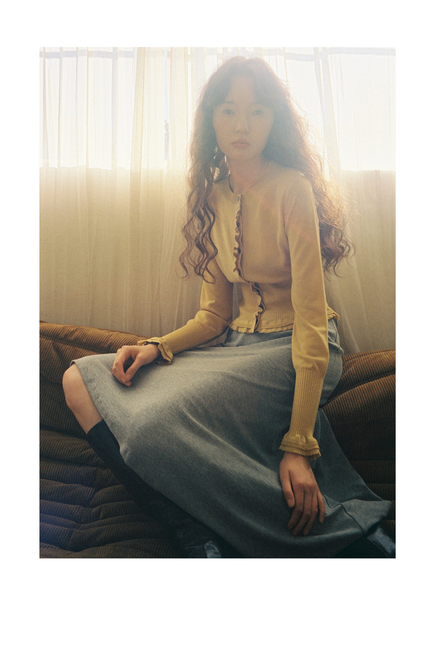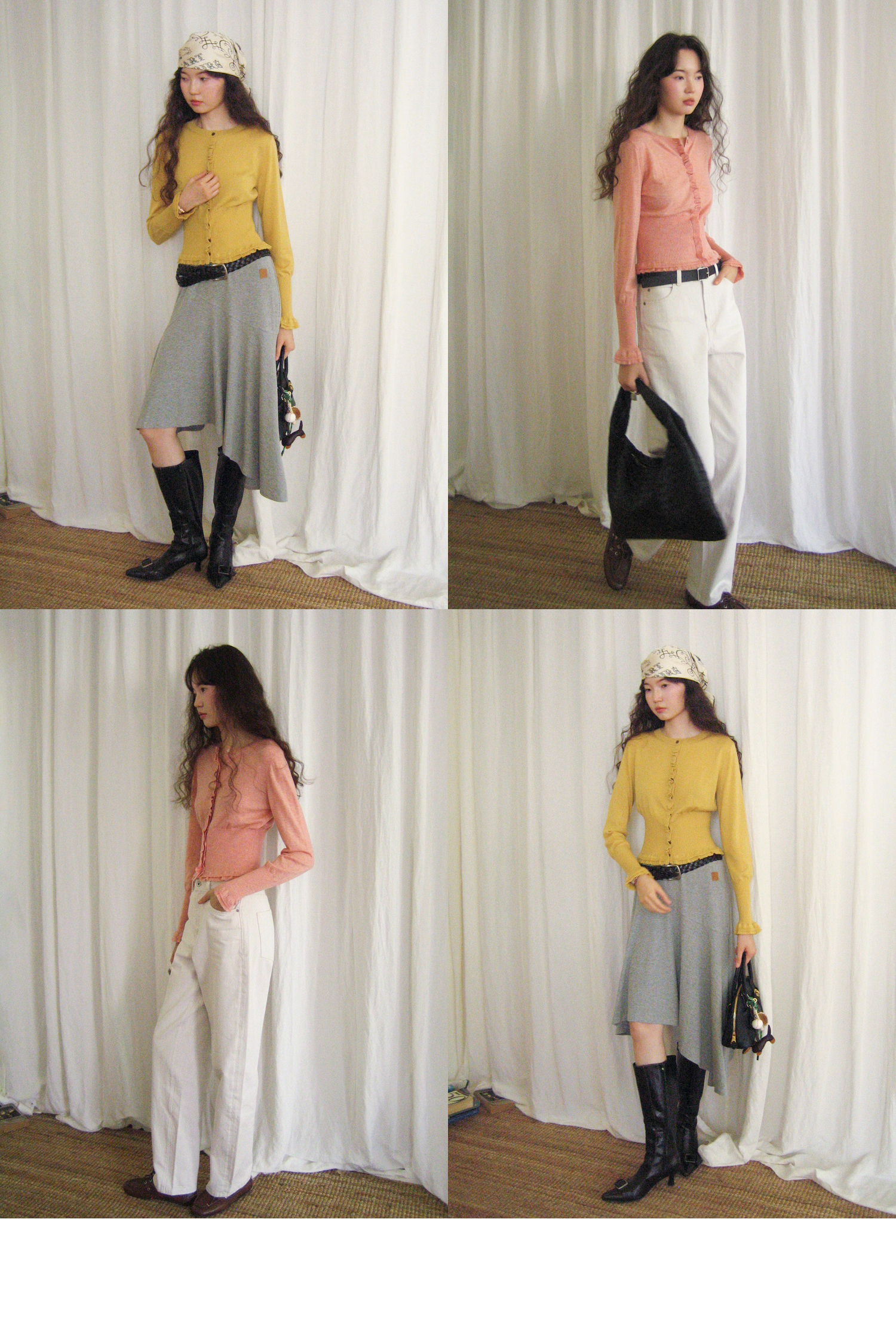 素舶 极细美丽诺羊毛亲肤弹力褶皱花边门襟法式收腰显瘦针织开衫