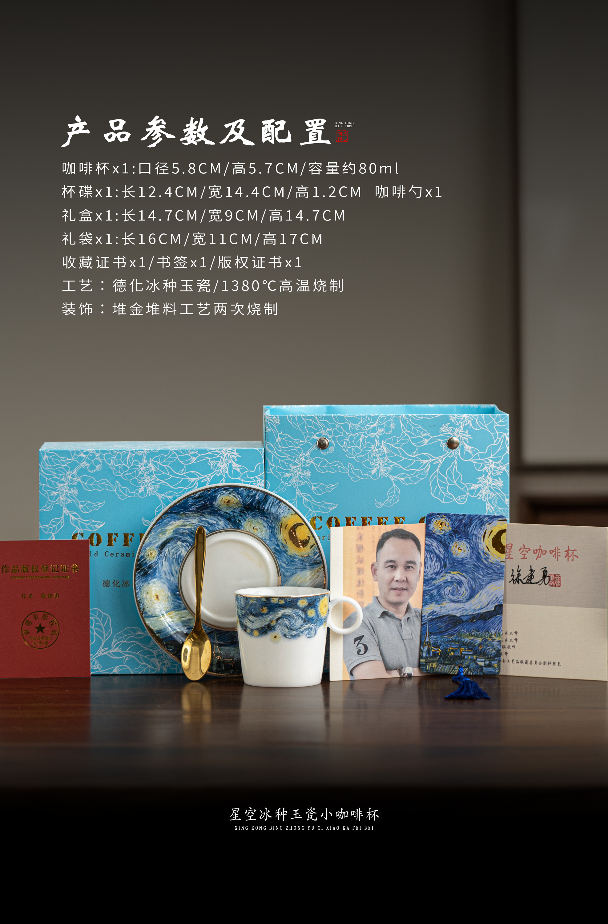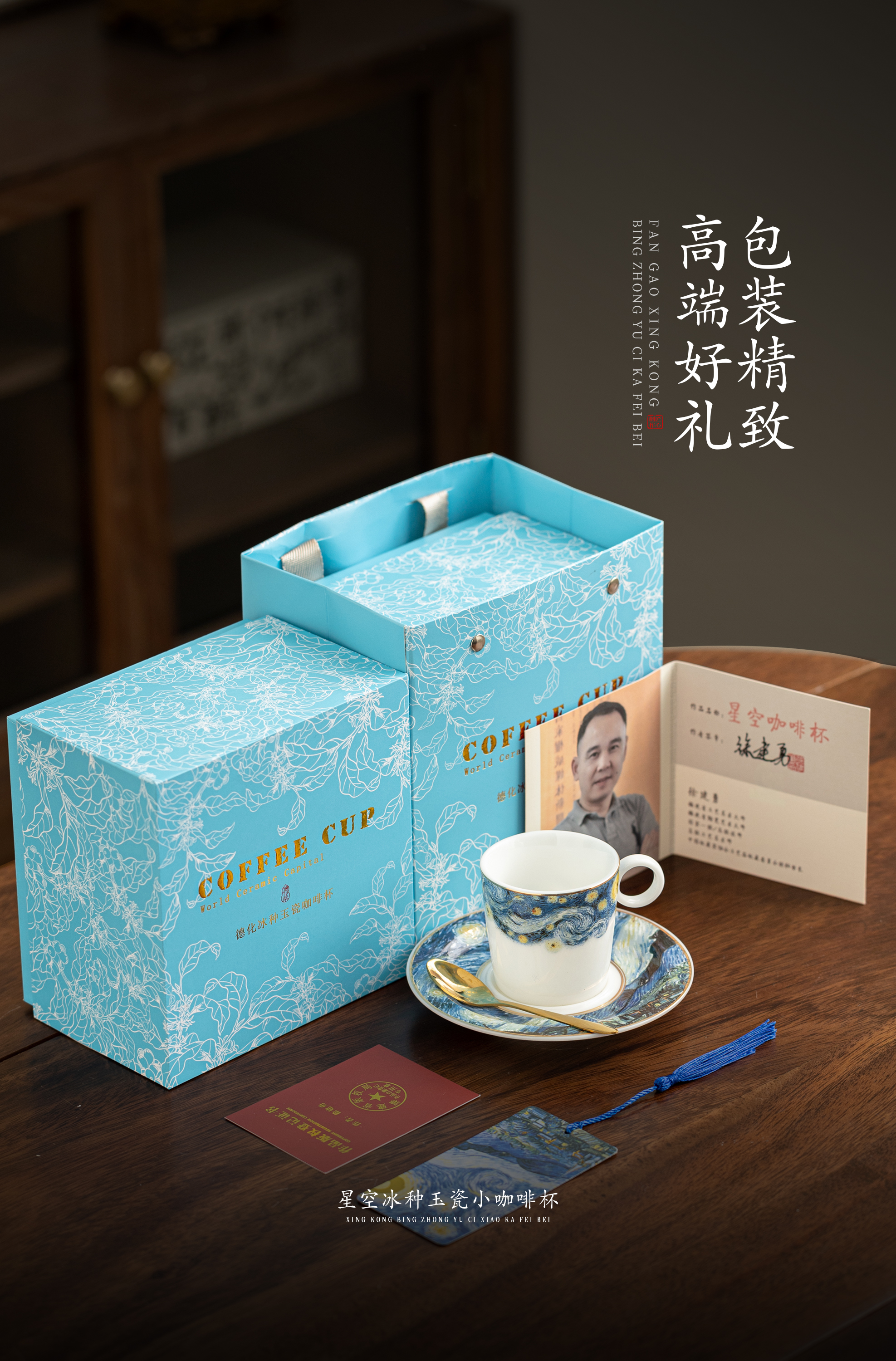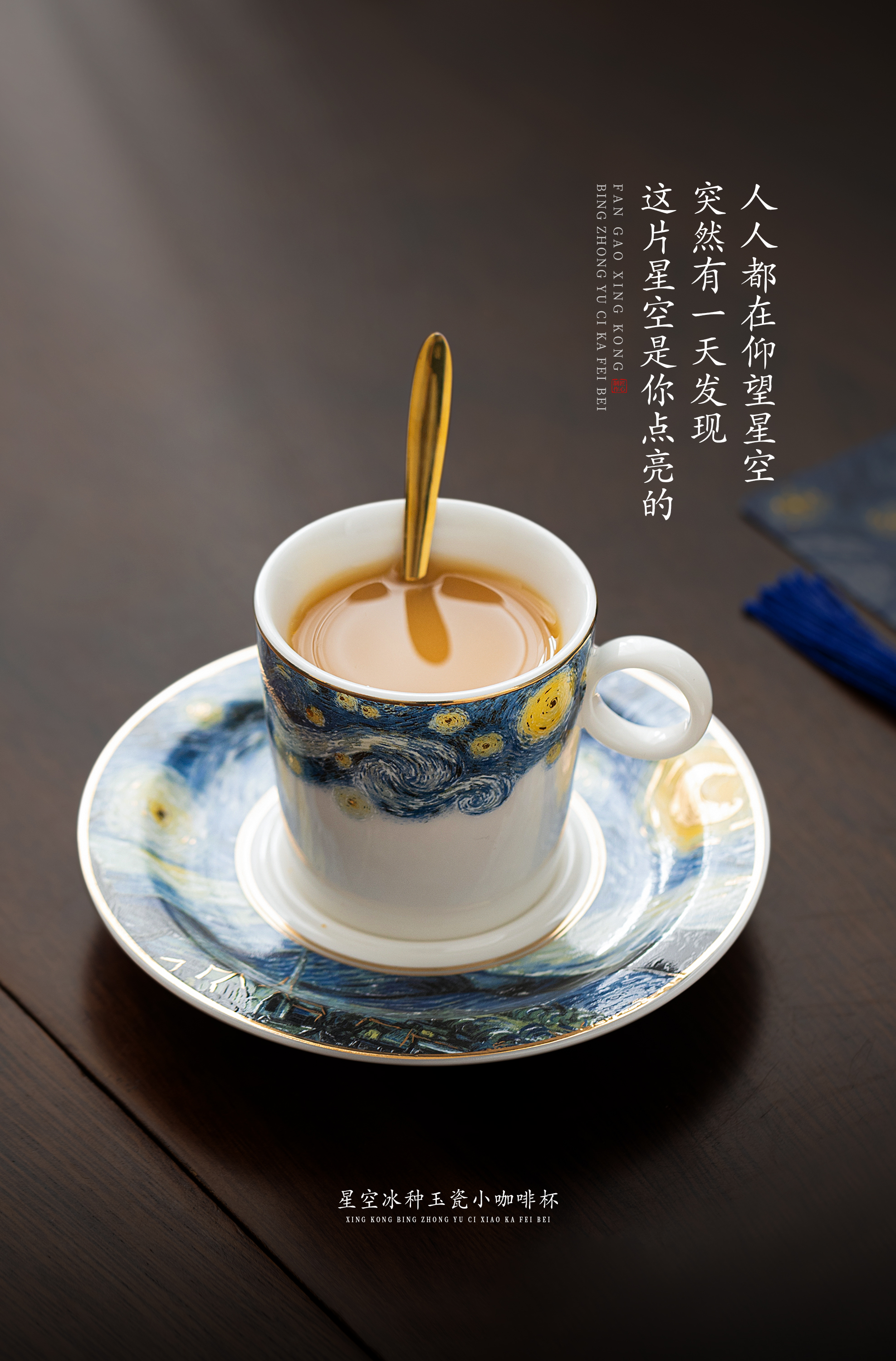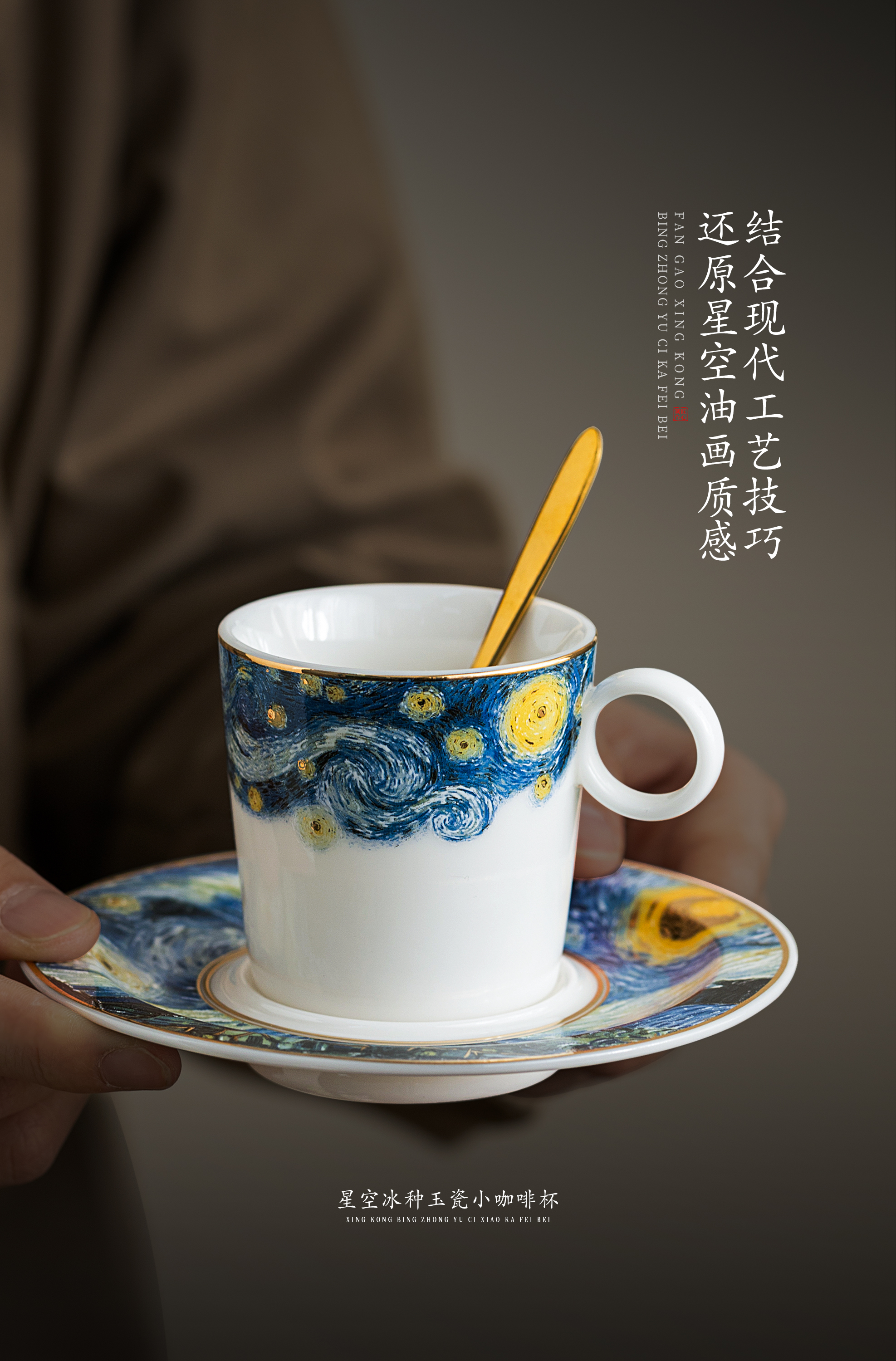 【梵高.星空】冰种玉瓷小咖啡杯,迎光透亮 温润如玉,油画效果 层次分明,精美包装 gao端好礼