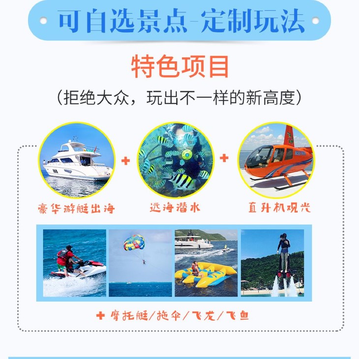 | 交通 | 超出指定接送区域,需额外支付一定费用:海棠湾50元,万丽酒店100元,其他非正常接送区域咨询客服 |