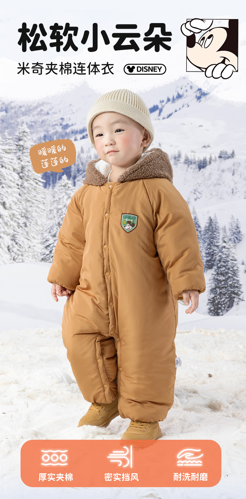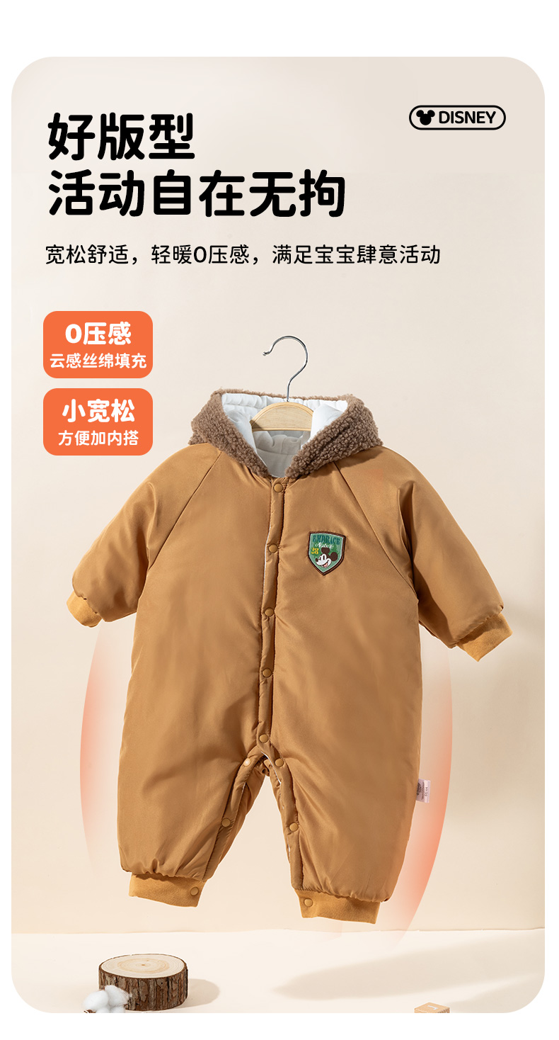迪士尼【米奇夹棉保暖哈衣】24冬季新款男童连体衣防风御寒爬服外出服ZD4DL011