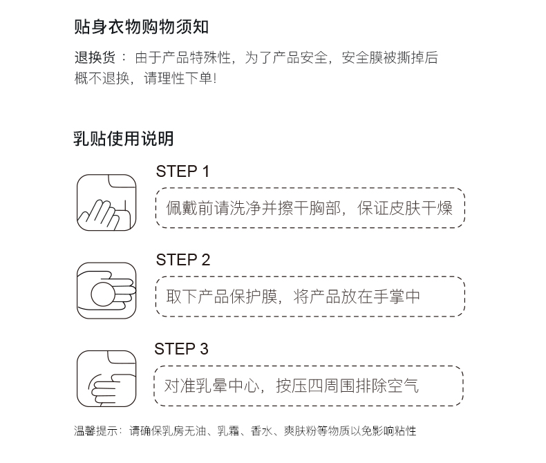提示!由于胸贴是贴身物品,暂不支持7天无理由退换货