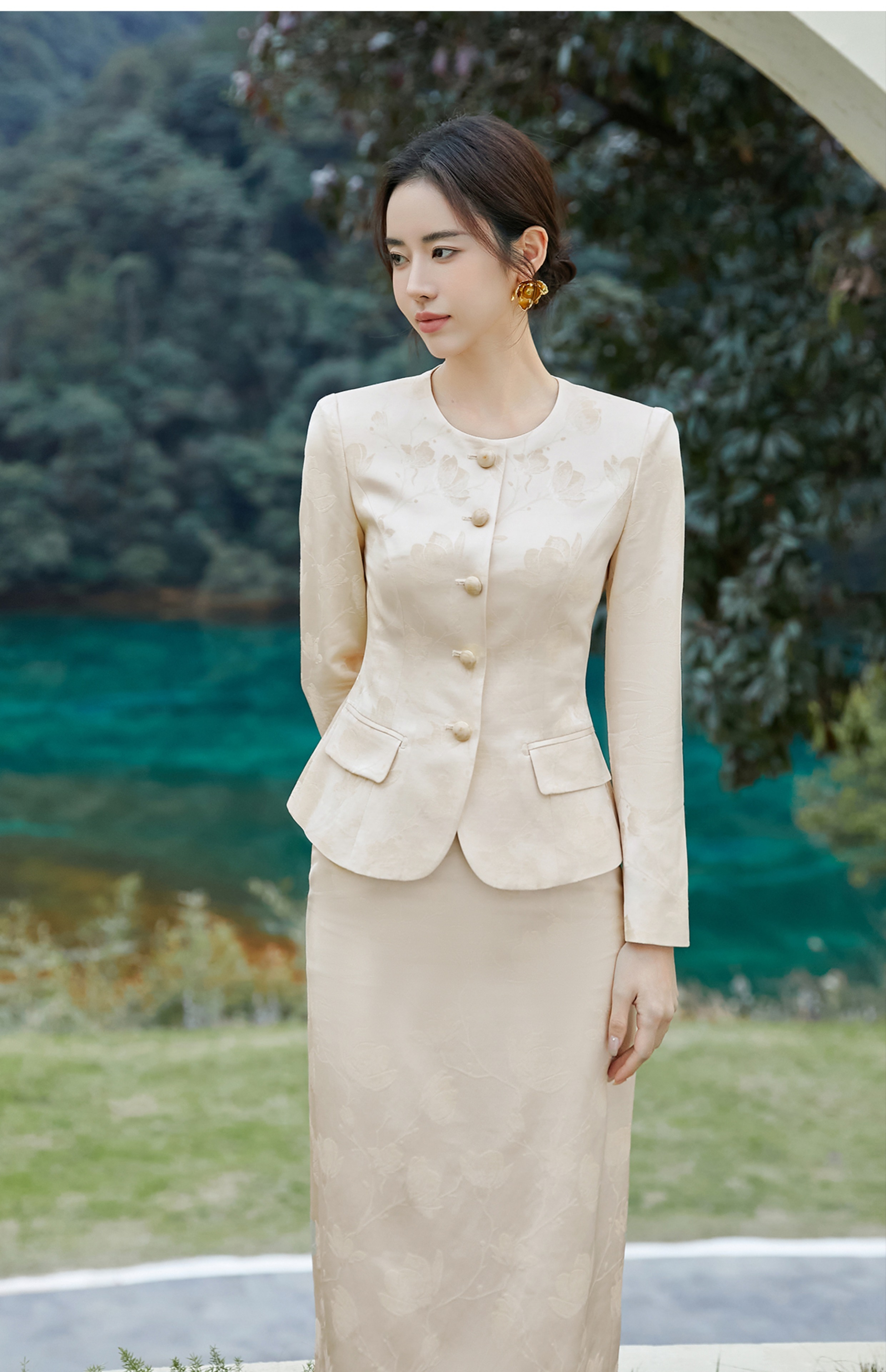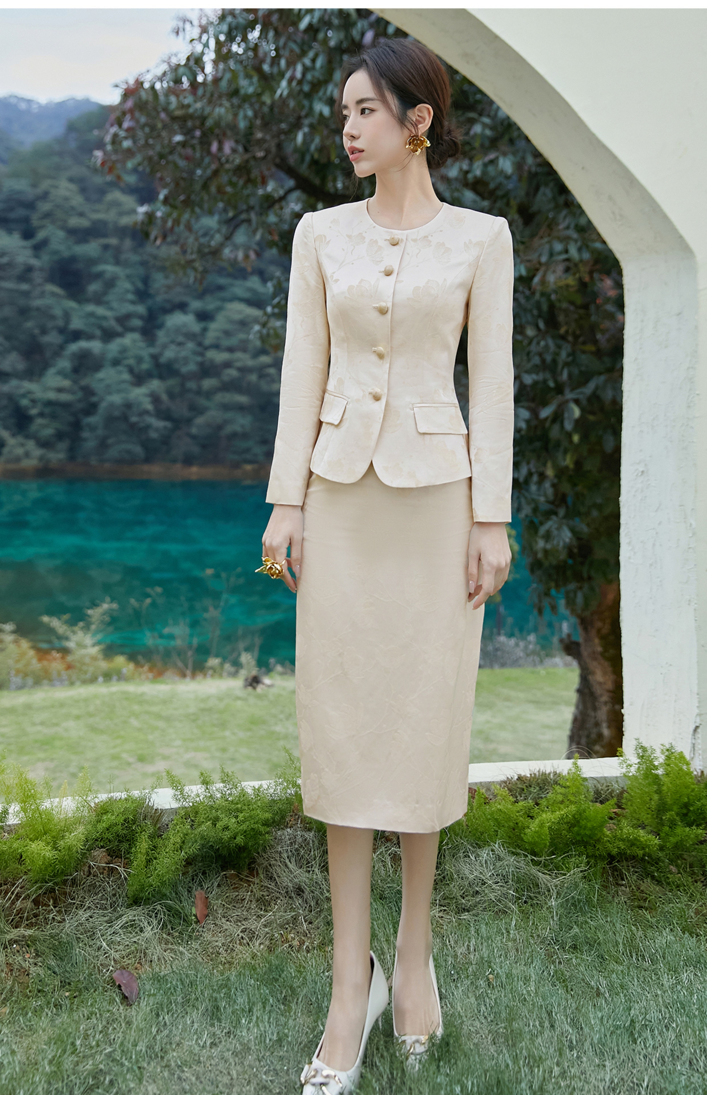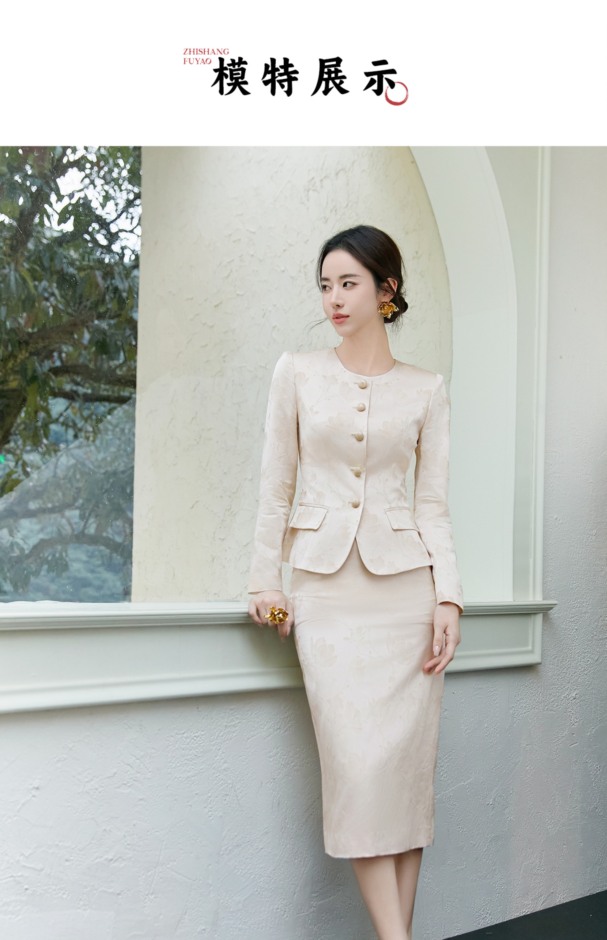 FUYAO扶摇 轻奢优雅时尚套装气质小香风淑女提花外套半身裙两件套