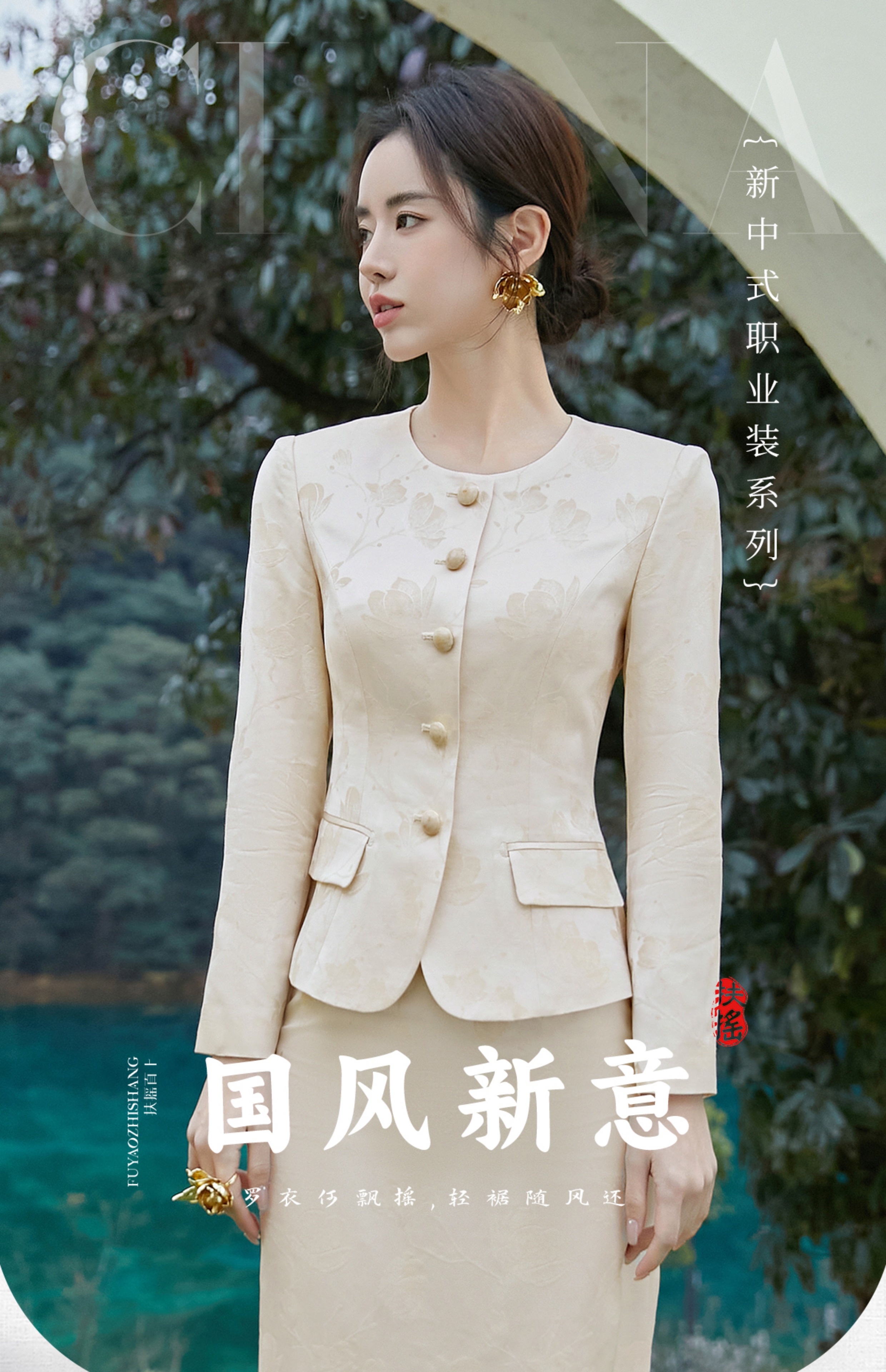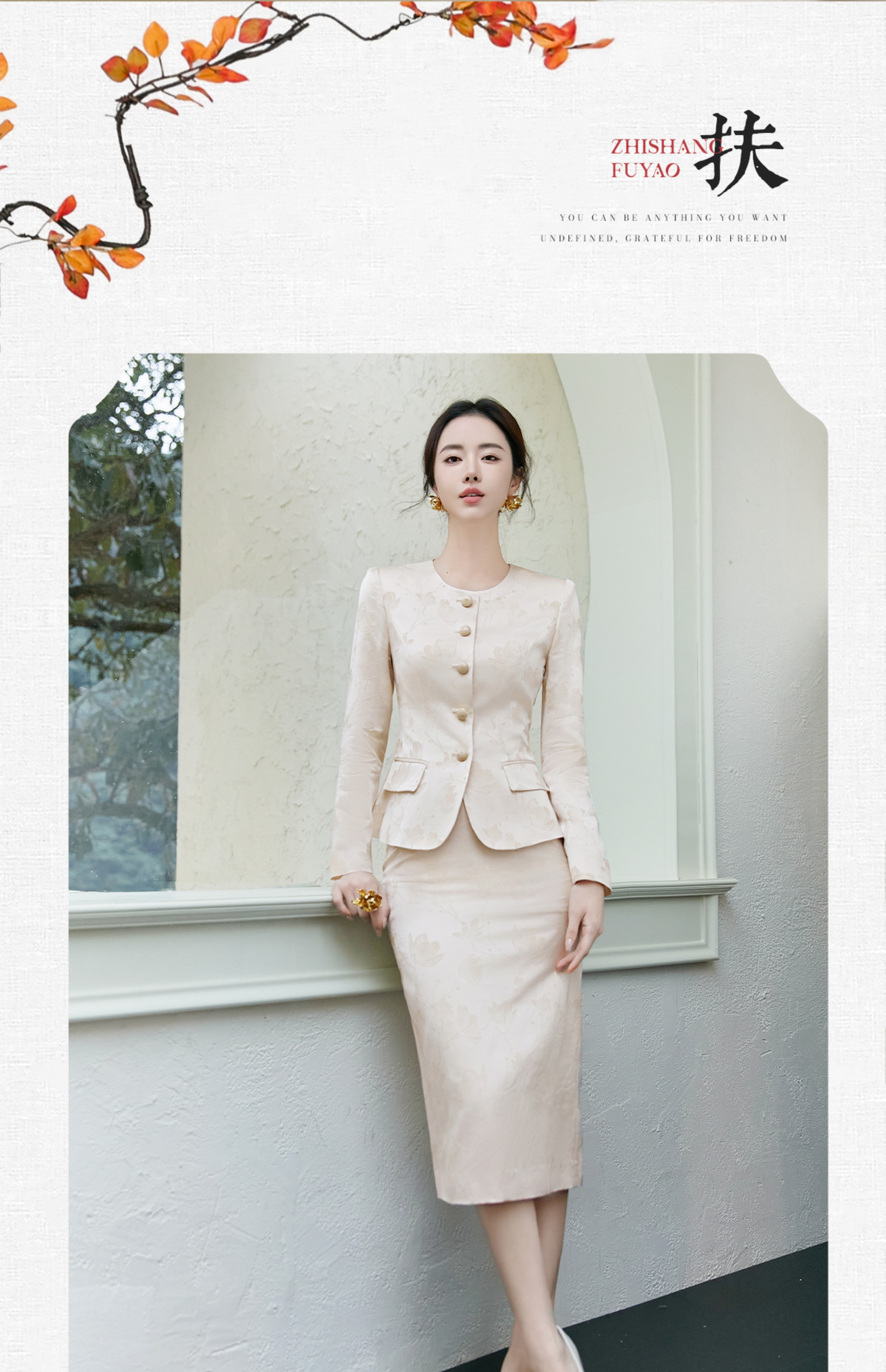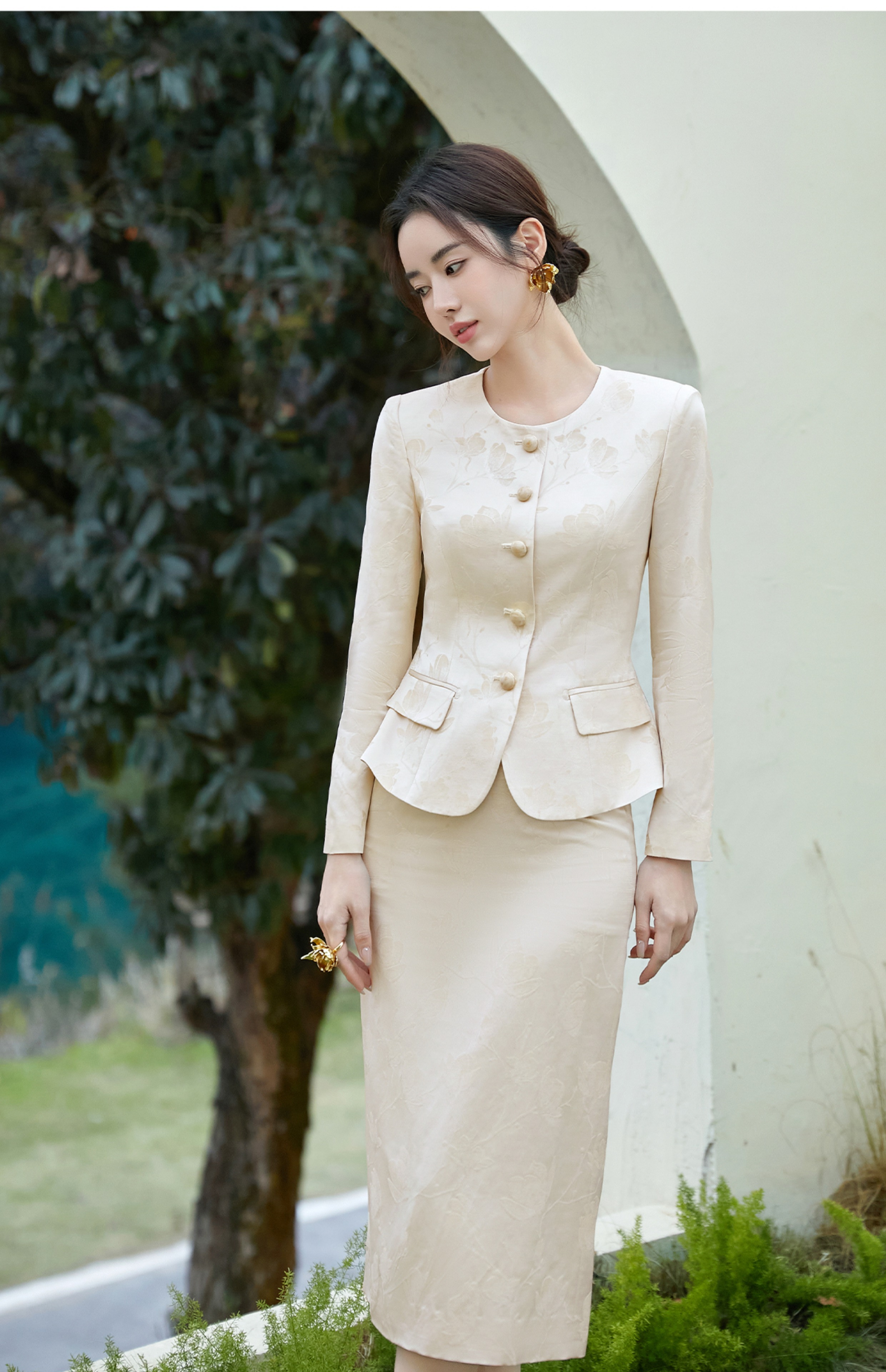 FUYAO扶摇 轻奢优雅时尚套装气质小香风淑女提花外套半身裙两件套