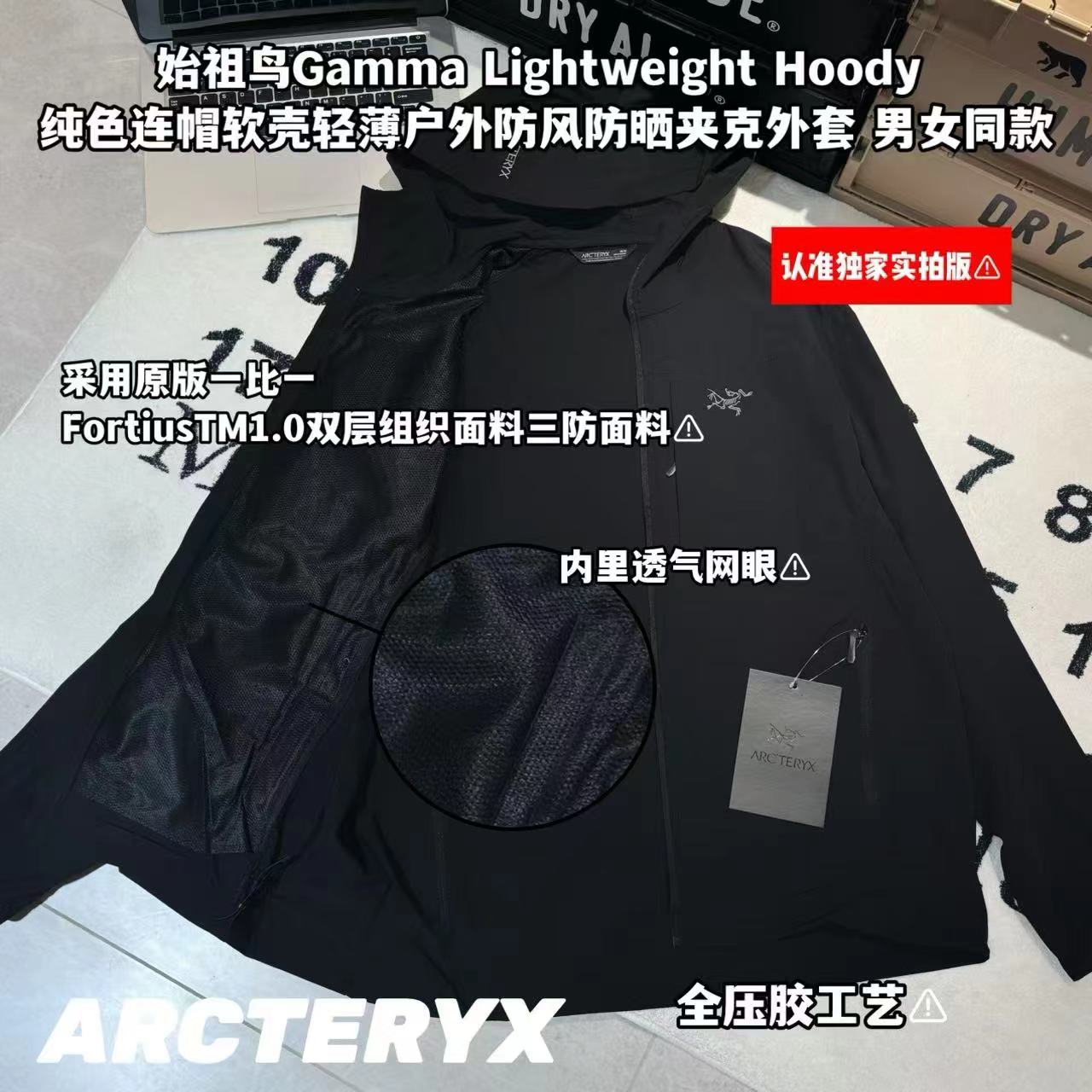 纯色连帽软壳轻薄户外防风防晒夹克外套 男女同款-面料:采用原版一比一FortiusTM1.0双层组织面料三防面料。