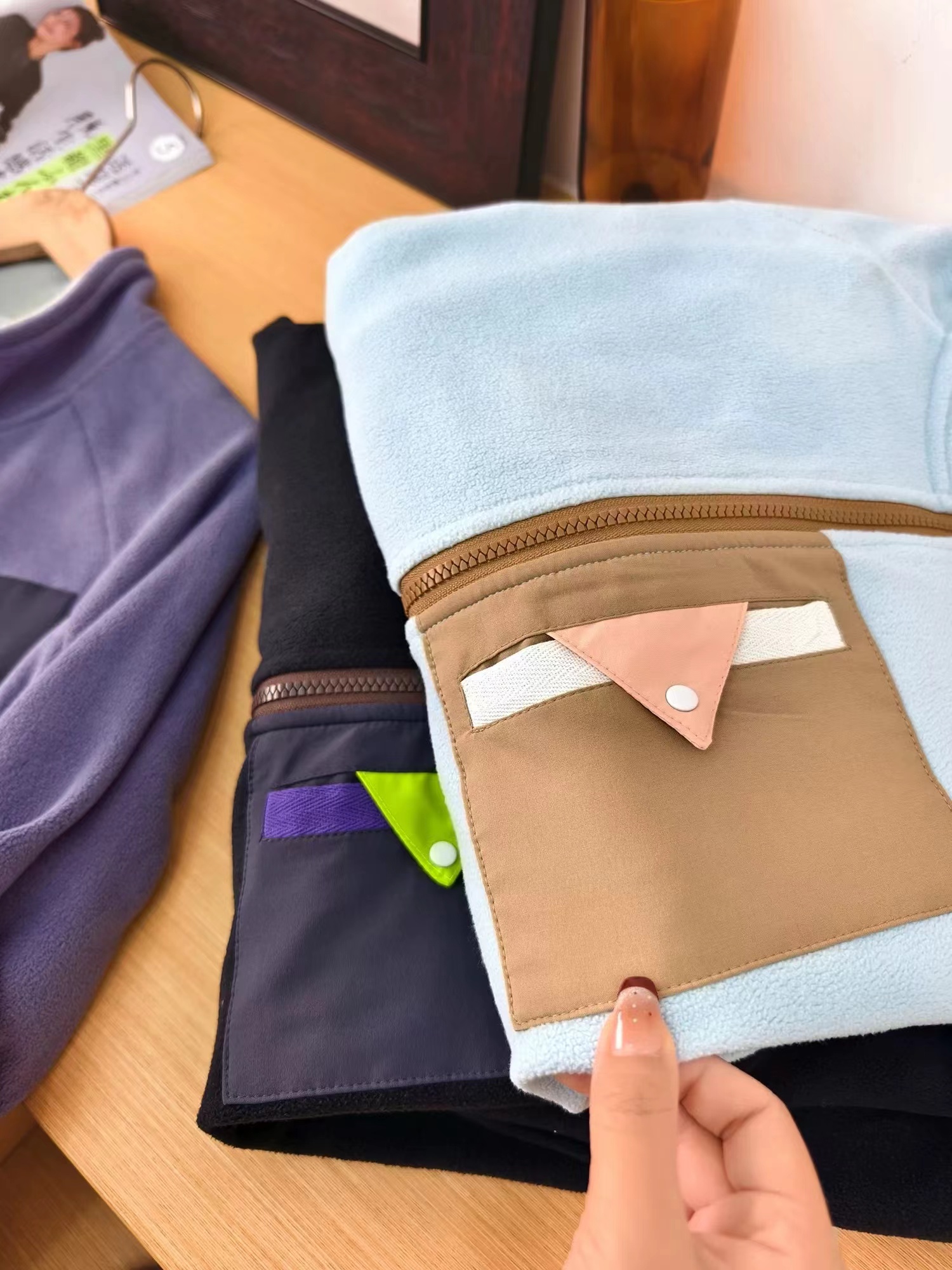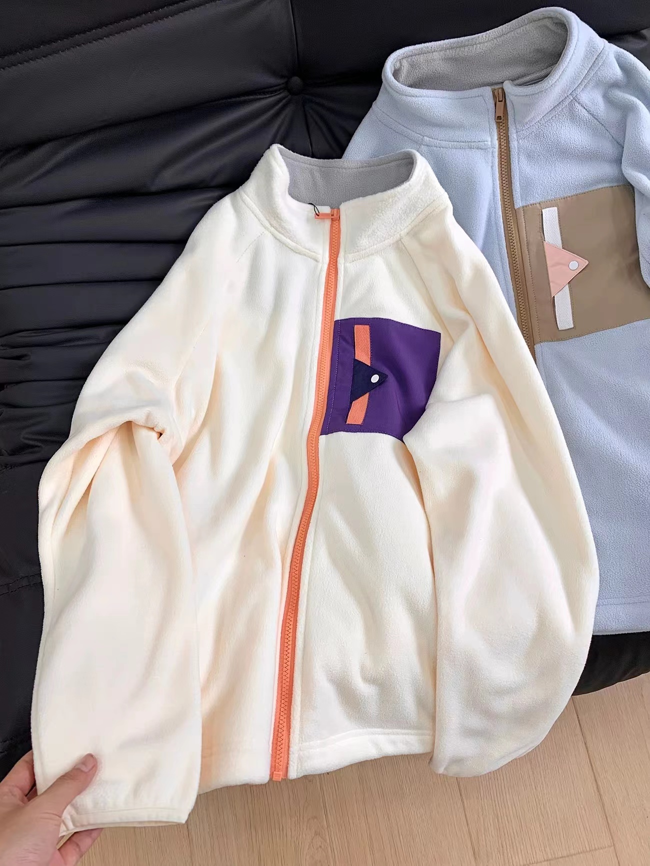 男女同款云朵绒摇粒绒外套设计感撞色口袋保暖抓绒衣,户外山系~男女情侣款云朵绒摇粒绒外套,2025秋冬新款抓绒衣内搭保暖外套,优选质感细密摇粒绒面料,触感柔软细腻又亲肤,上身轻盈保暖无负重感,休闲百搭小就宽松版型,利落小立领更好的防风又保暖,精典插肩袖长袖,袖口处松紧收口,宽松又量的直身版型,胸前撞色口袋装饰细节点睛,腰身两侧插袋口袋便于收纳随身小物件,来货多色可选,适合外穿也适合做内胆~~~材质:100锦纶