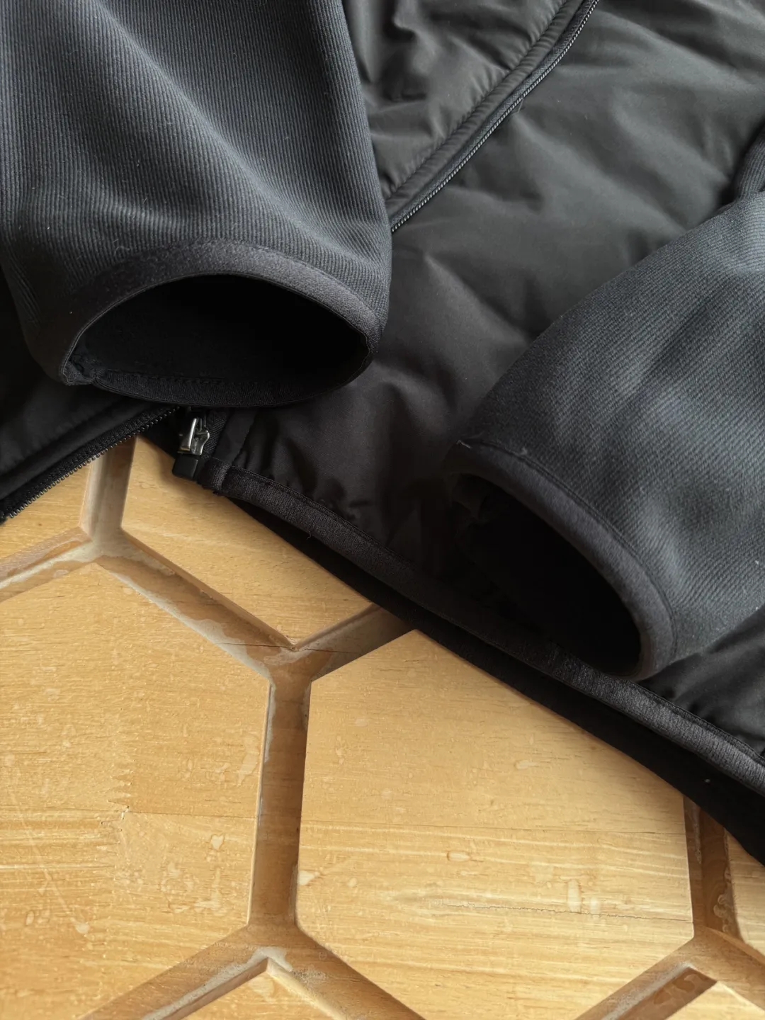 袖口采用弹力收拢包边防风严密!!版型方面,出色的人体工学裁剪设计贴合身材比例,有型且舒适度满分!可单穿,可内搭,搭配冲锋衣外套,轻松过冬!