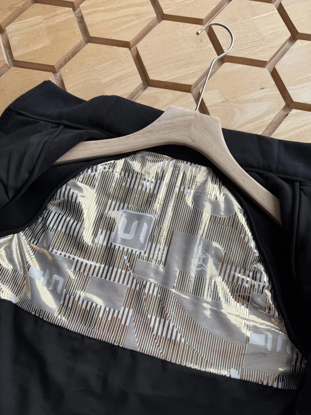 大身采用高科技防泼水面料 密度高 疏水性强并且防风透气,手臂拼接加密加厚澳力绒,微弹力,活动自如!