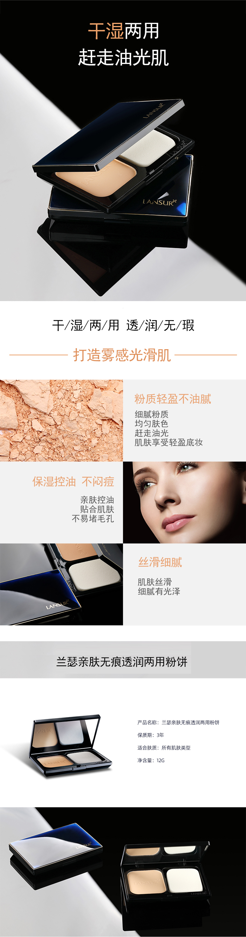 兰瑟亲肤无痕透润两用粉饼12g(30157354)【30157354】