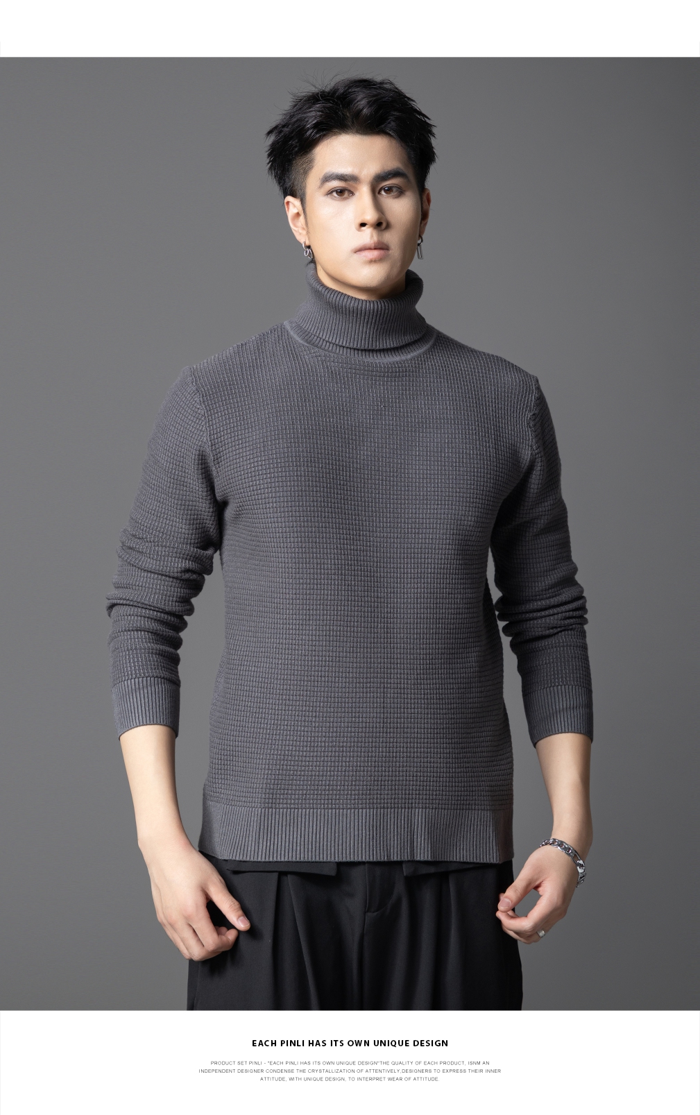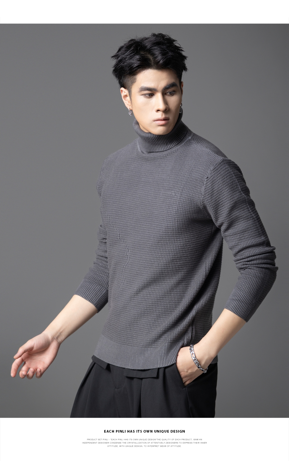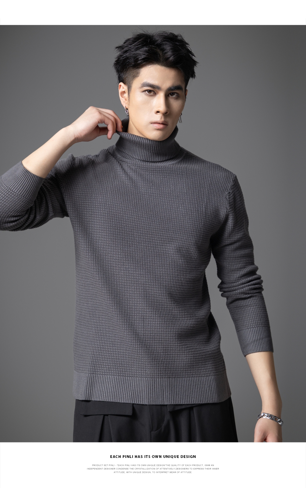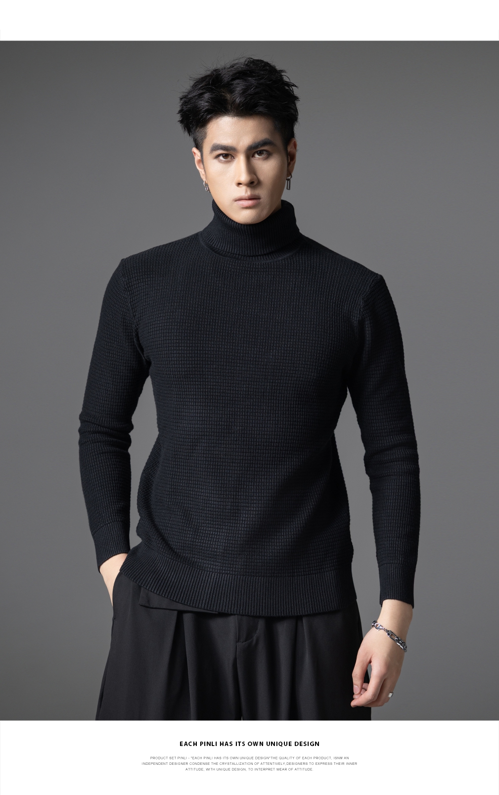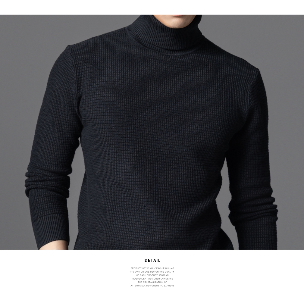 PINLI品立2025秋季新款男士修身高领提花格子打底毛衣套头针织衫GD253110077