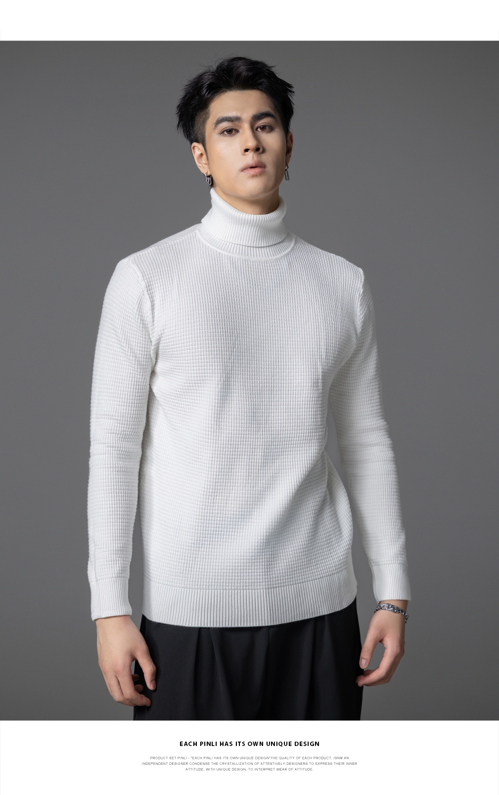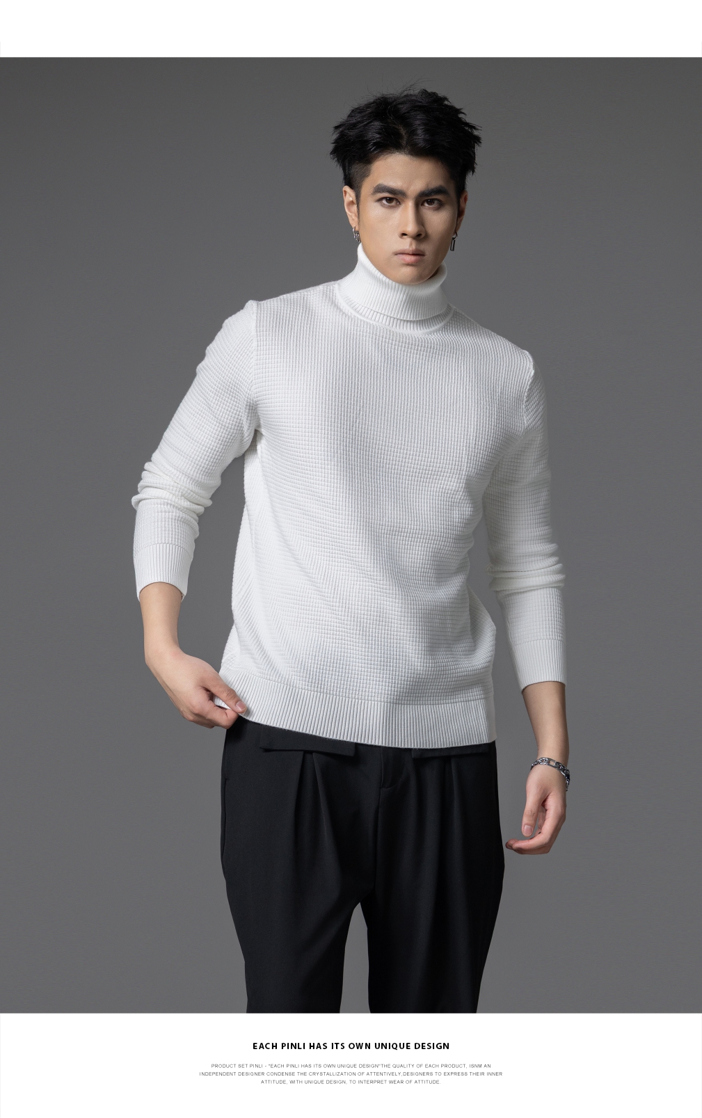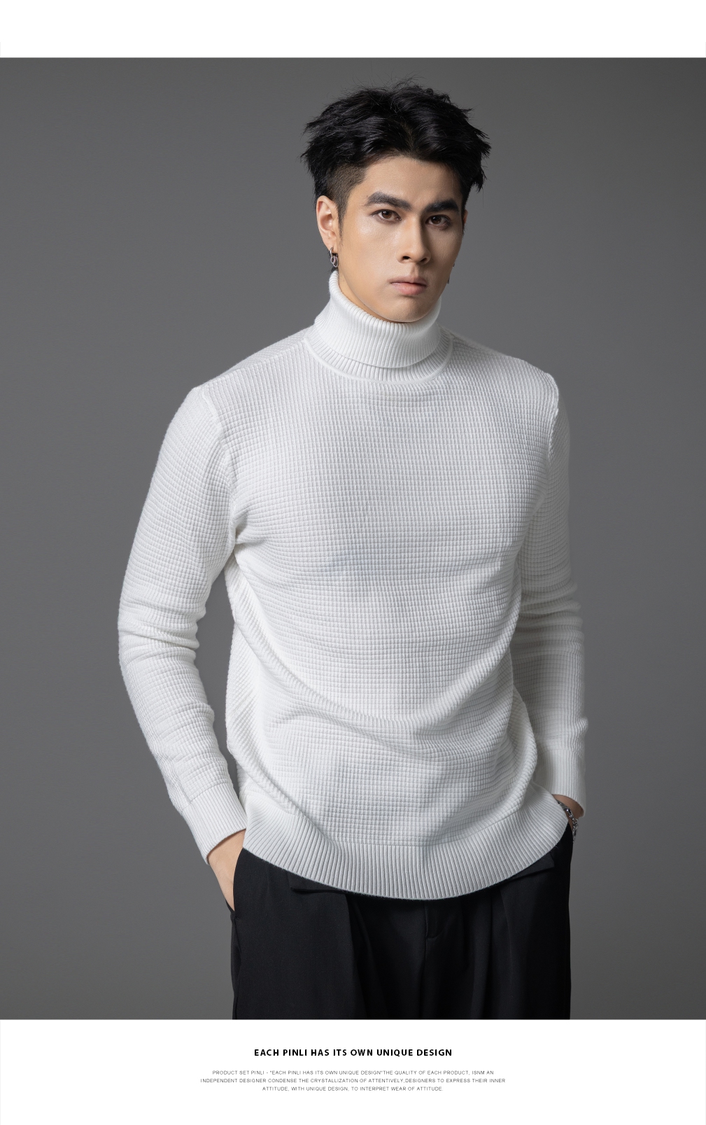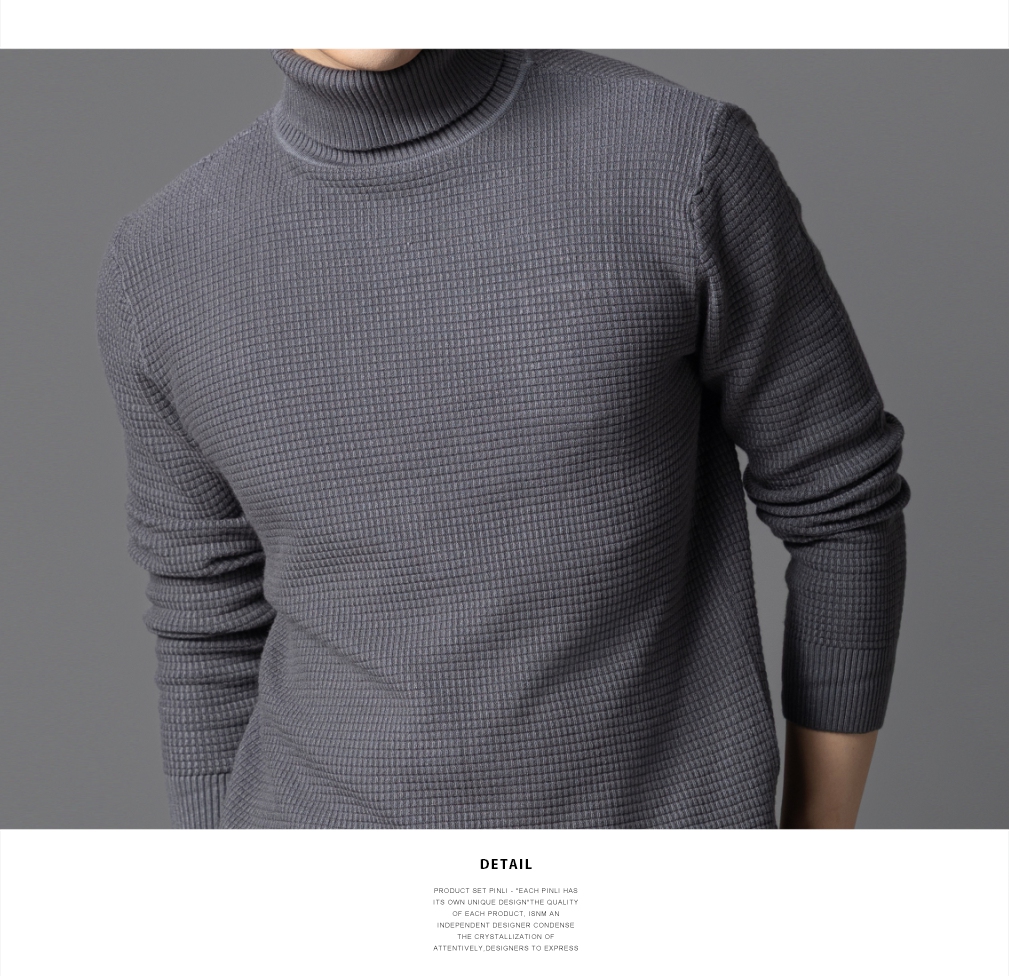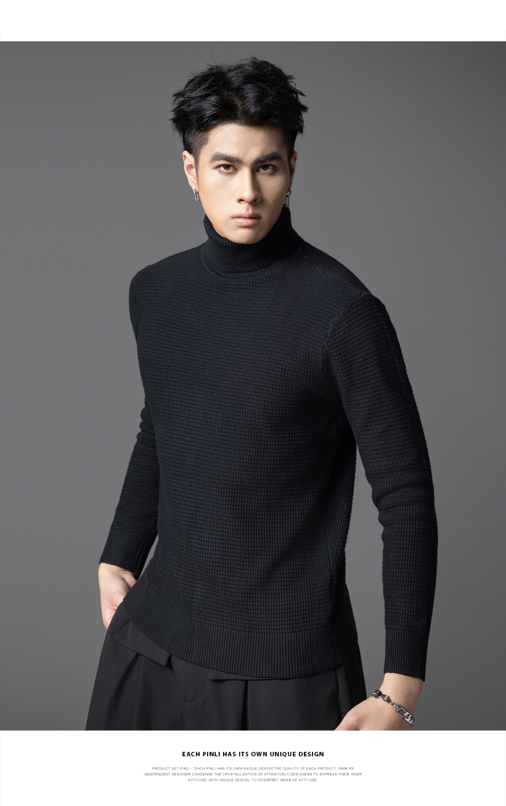 PINLI品立2025秋季新款男士修身高领提花格子打底毛衣套头针织衫GD253110077