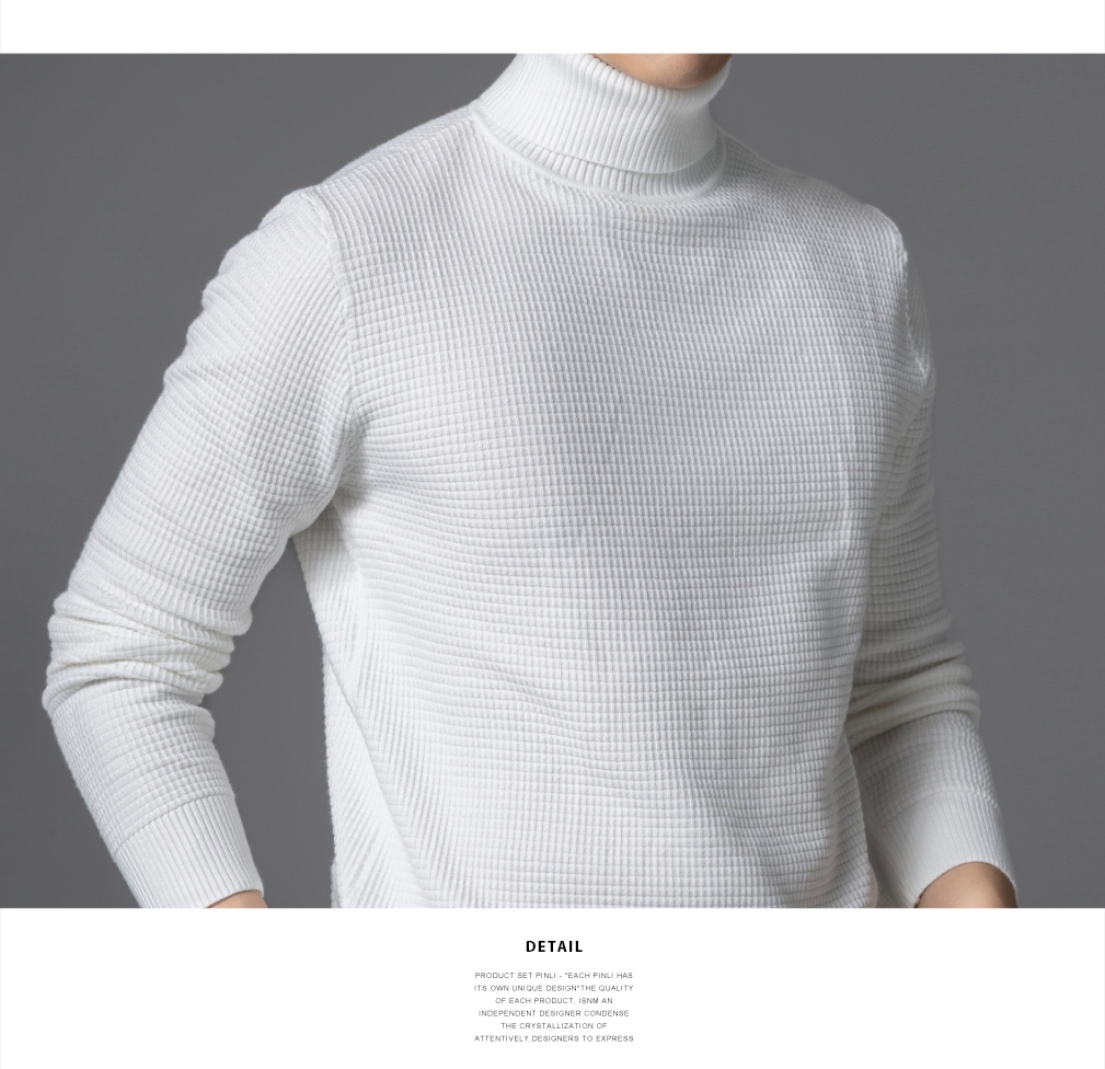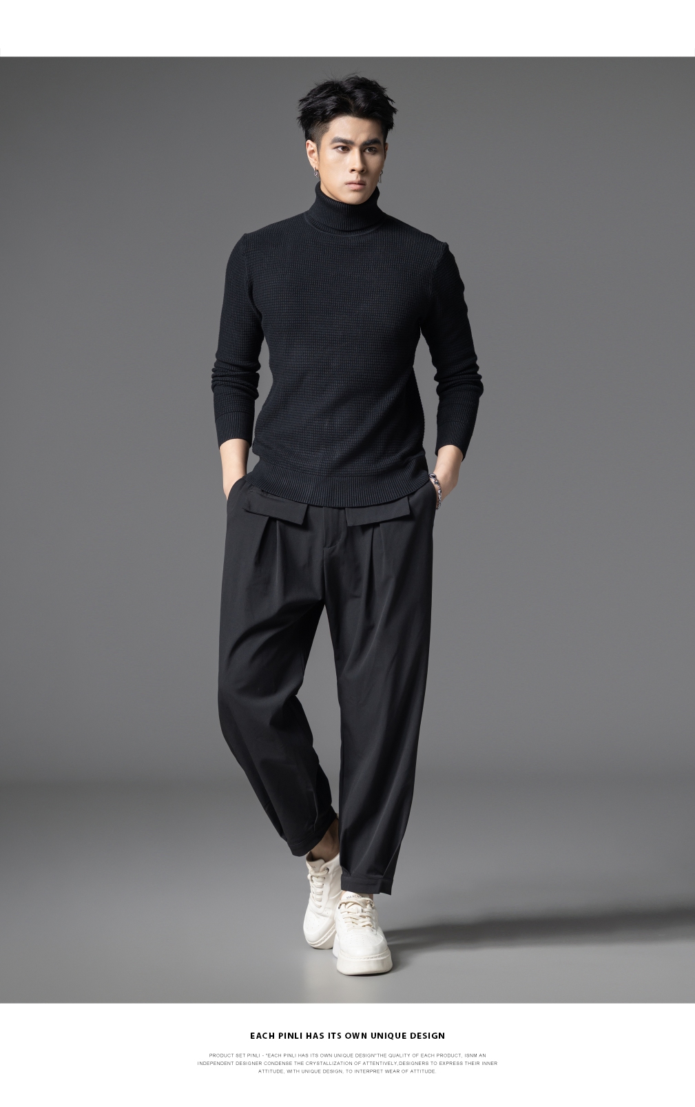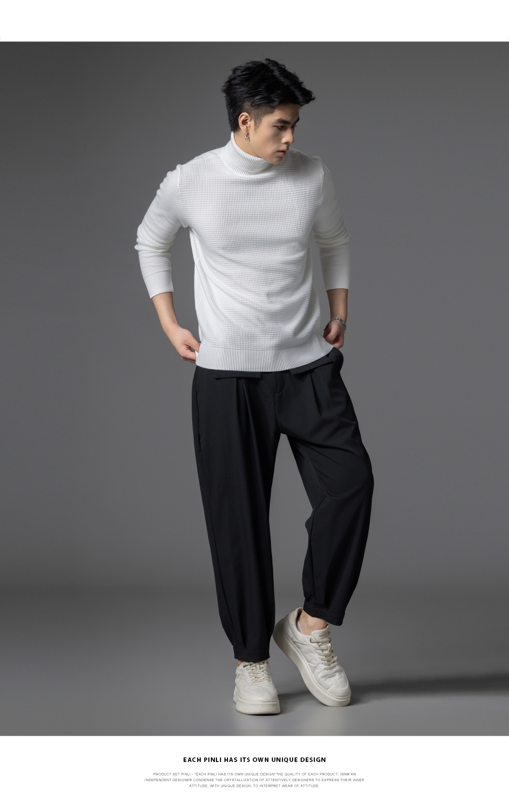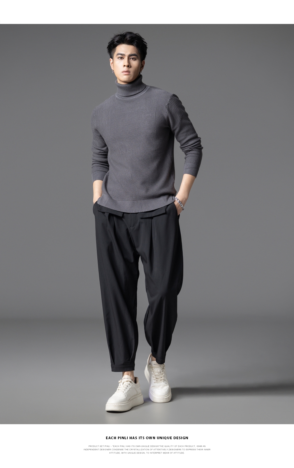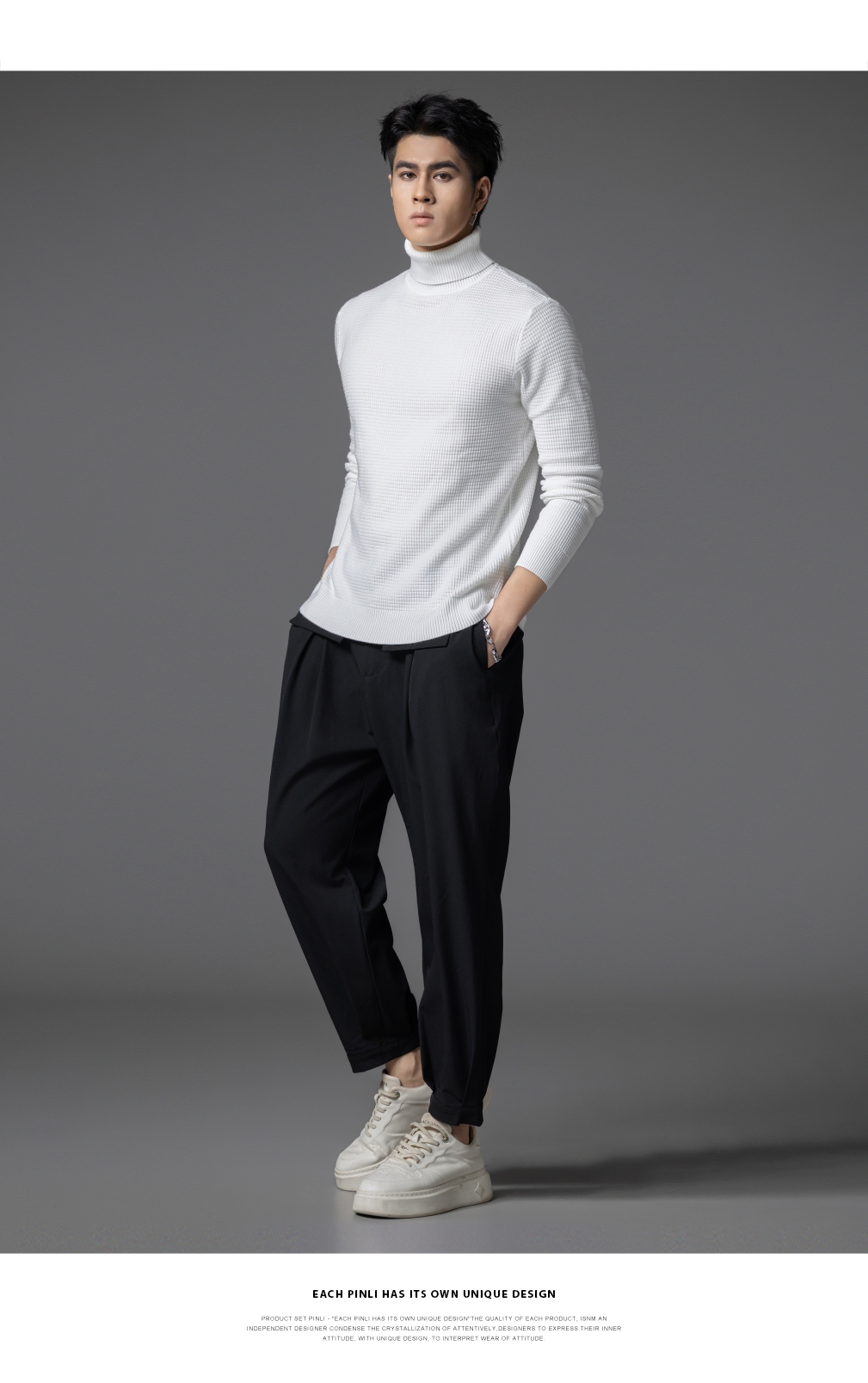 PINLI品立2025秋季新款男士修身高领提花格子打底毛衣套头针织衫GD253110077