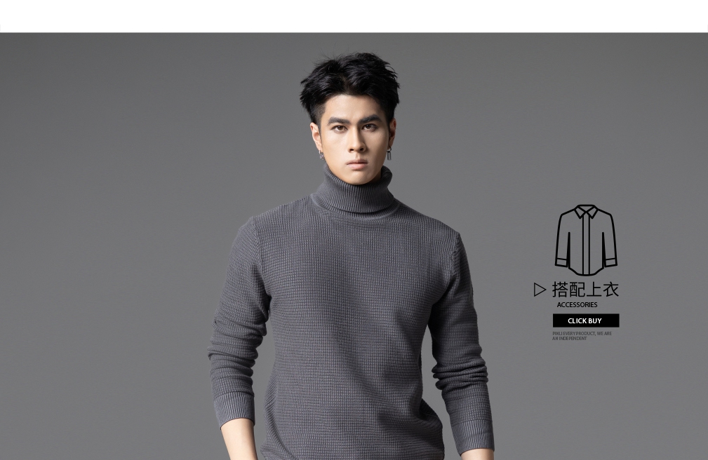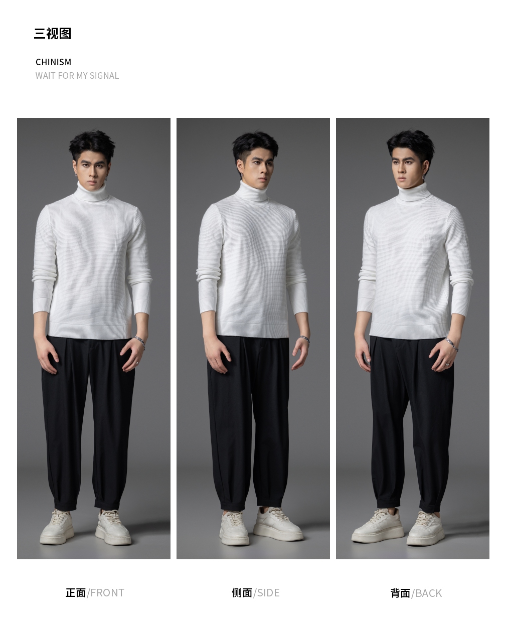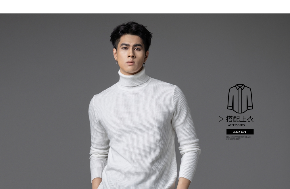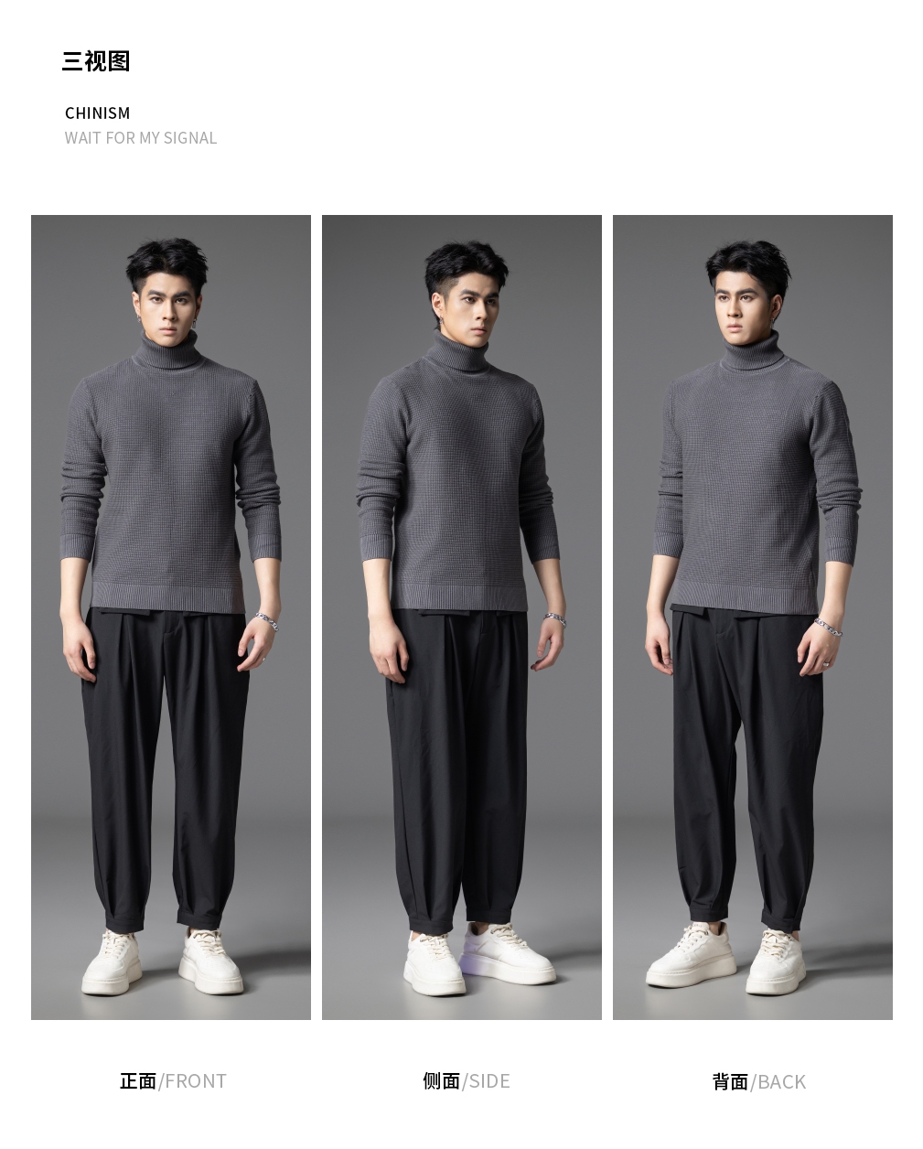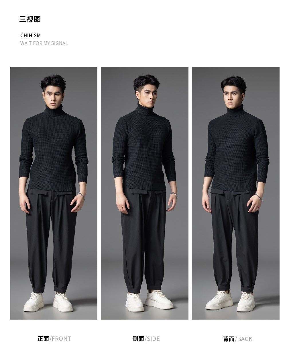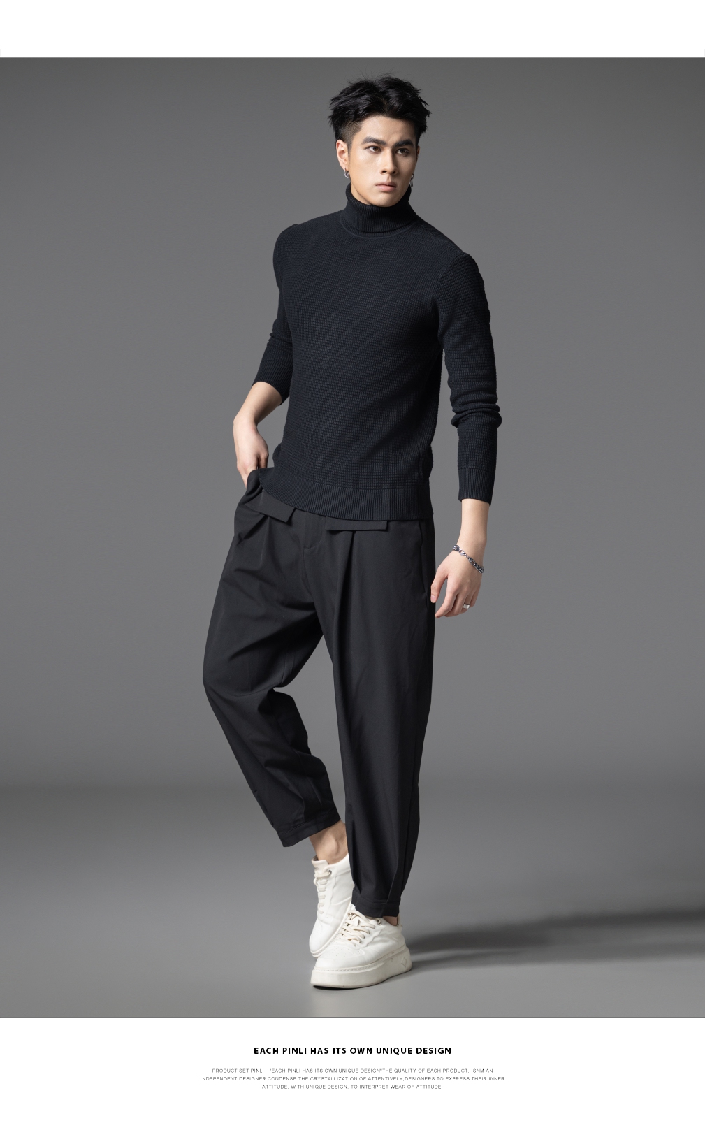 PINLI品立2025秋季新款男士修身高领提花格子打底毛衣套头针织衫GD253110077