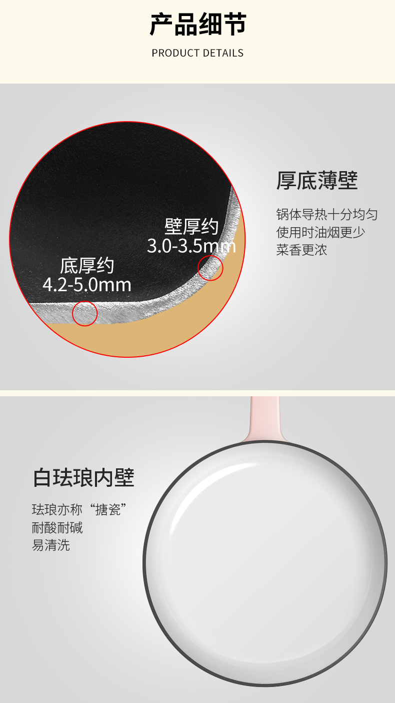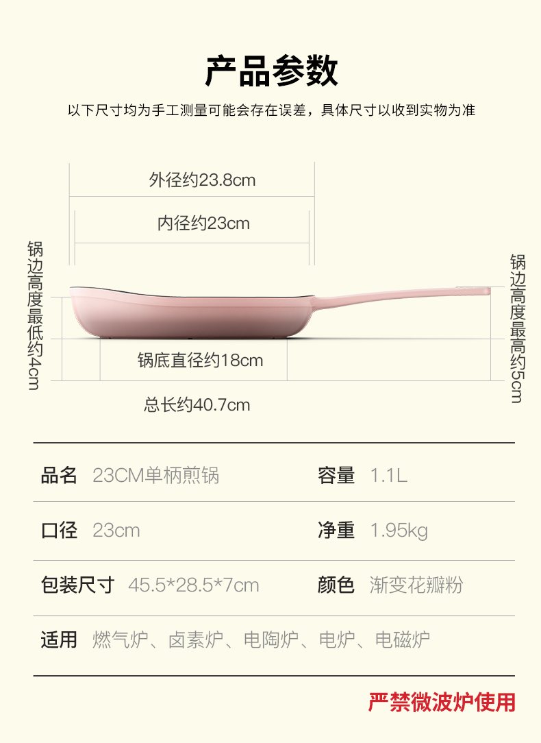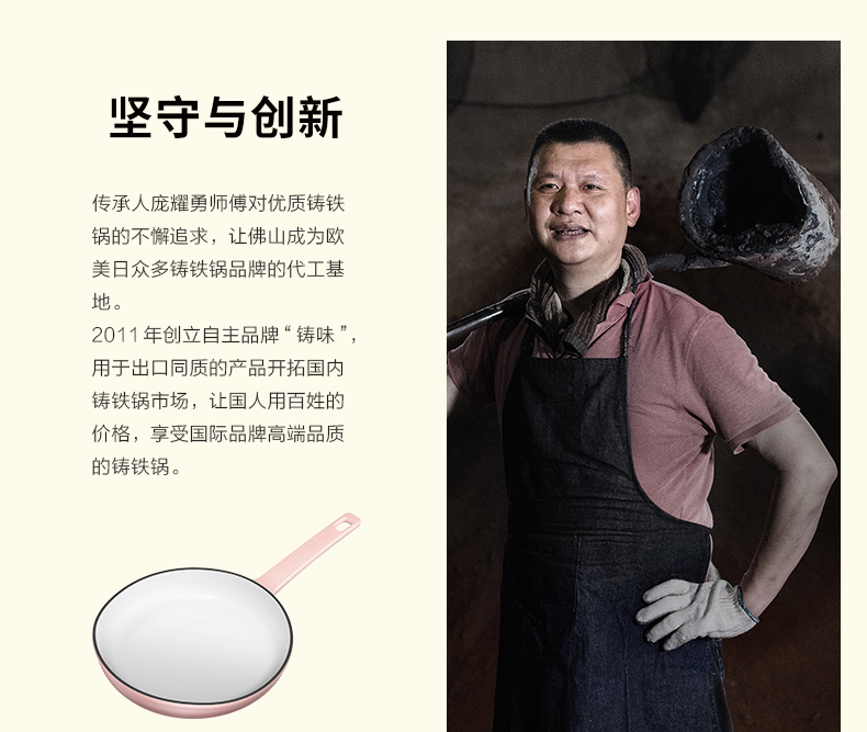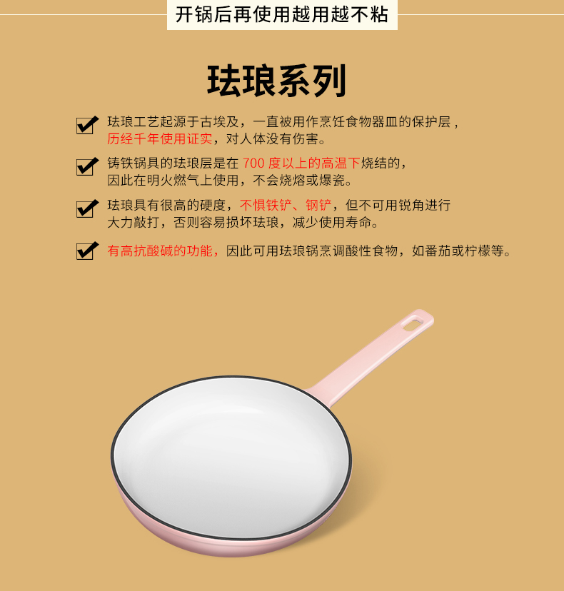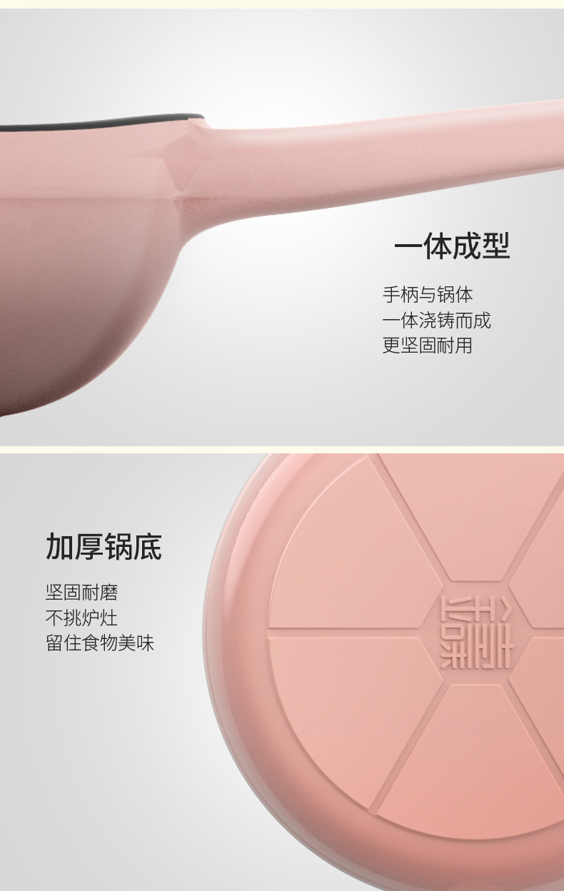 铸味 | 23cm粉色平底煎锅 珐琅铸铁煎盘生铁家用 牛排烙饼锅煎饼煎鸡蛋