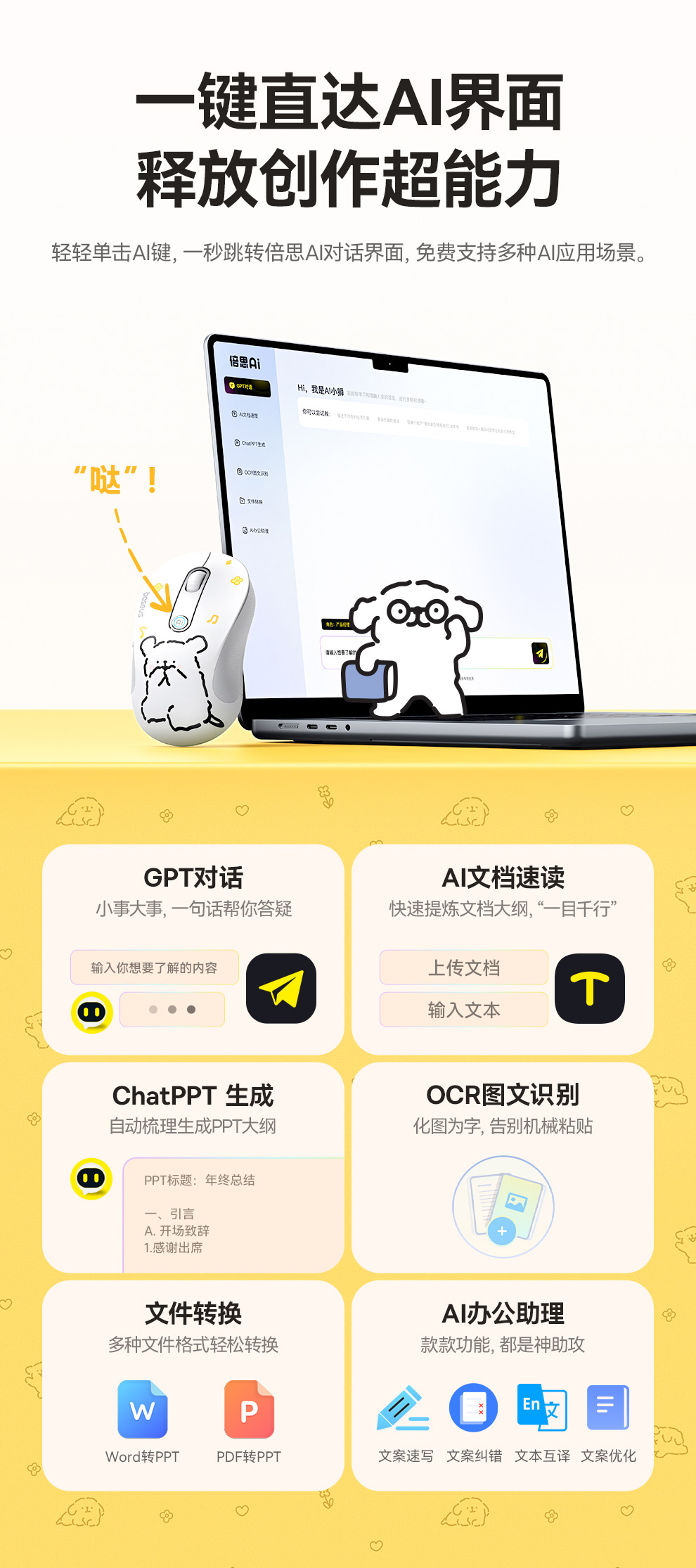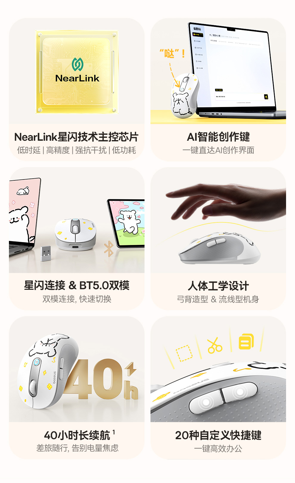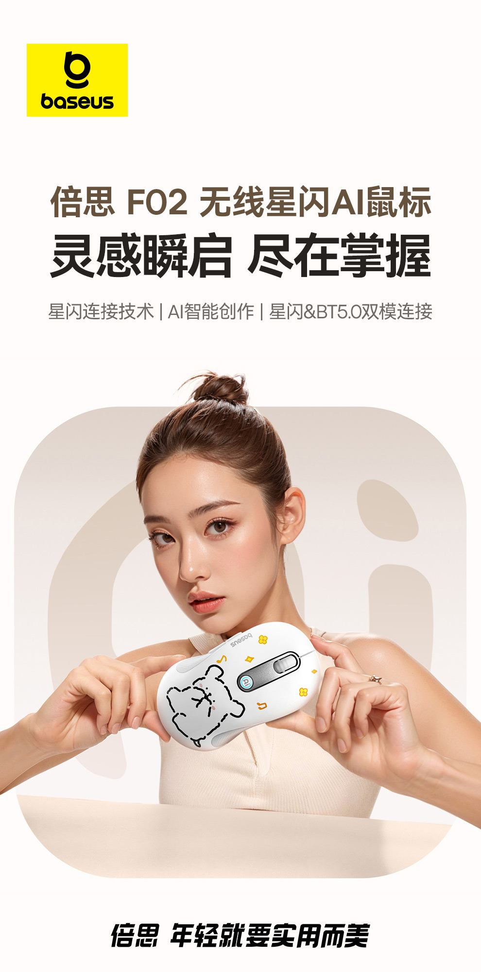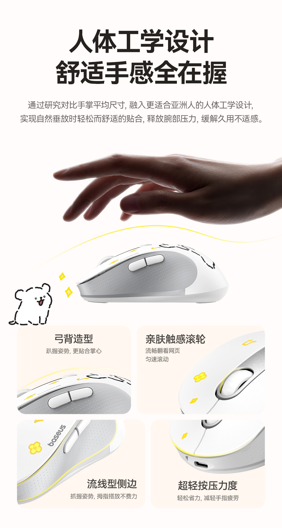 【十一专享】倍思 创作者 F02 人体工学 AI智能创作 无线星闪鼠标