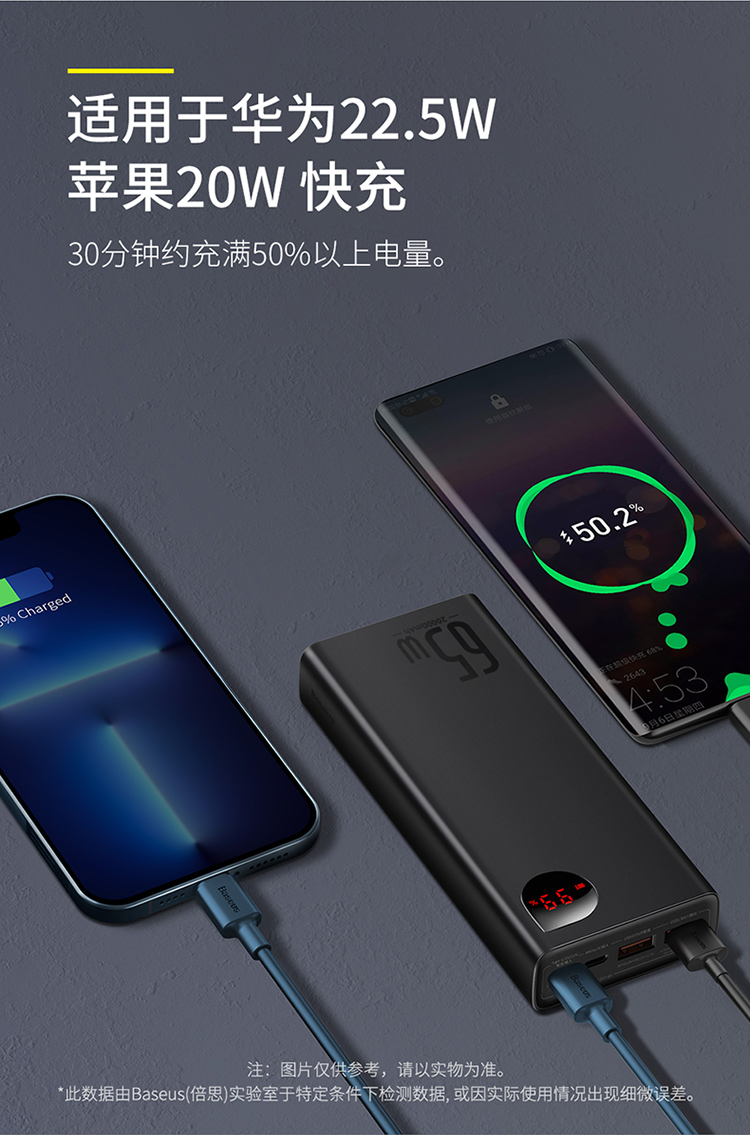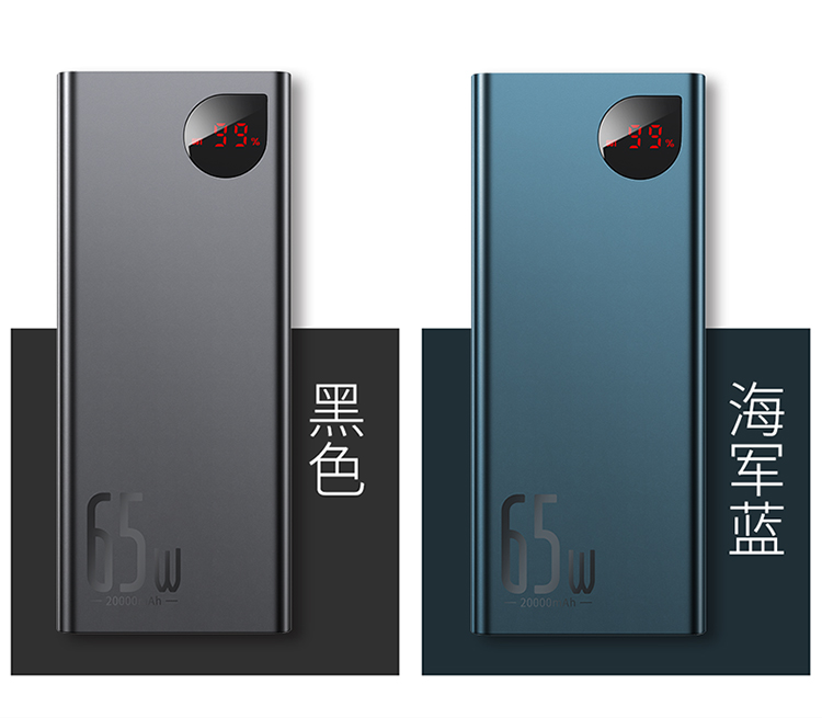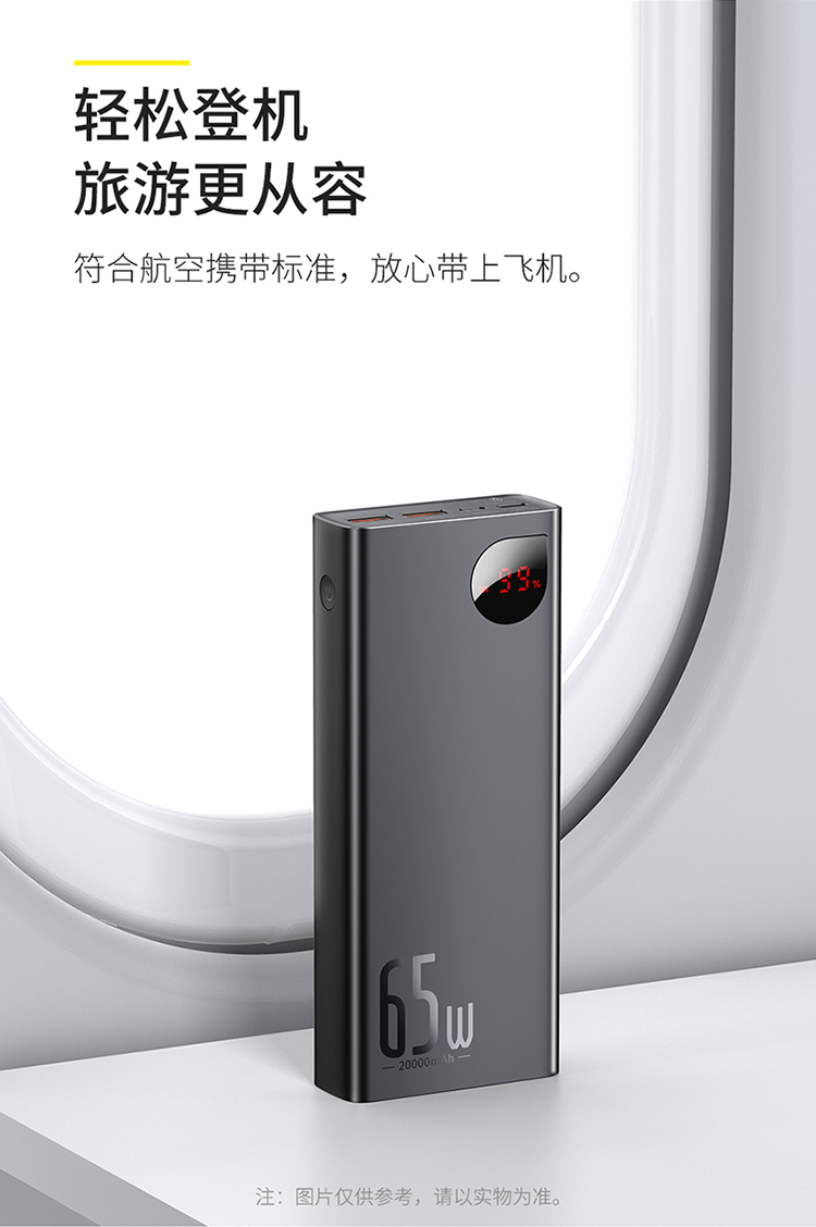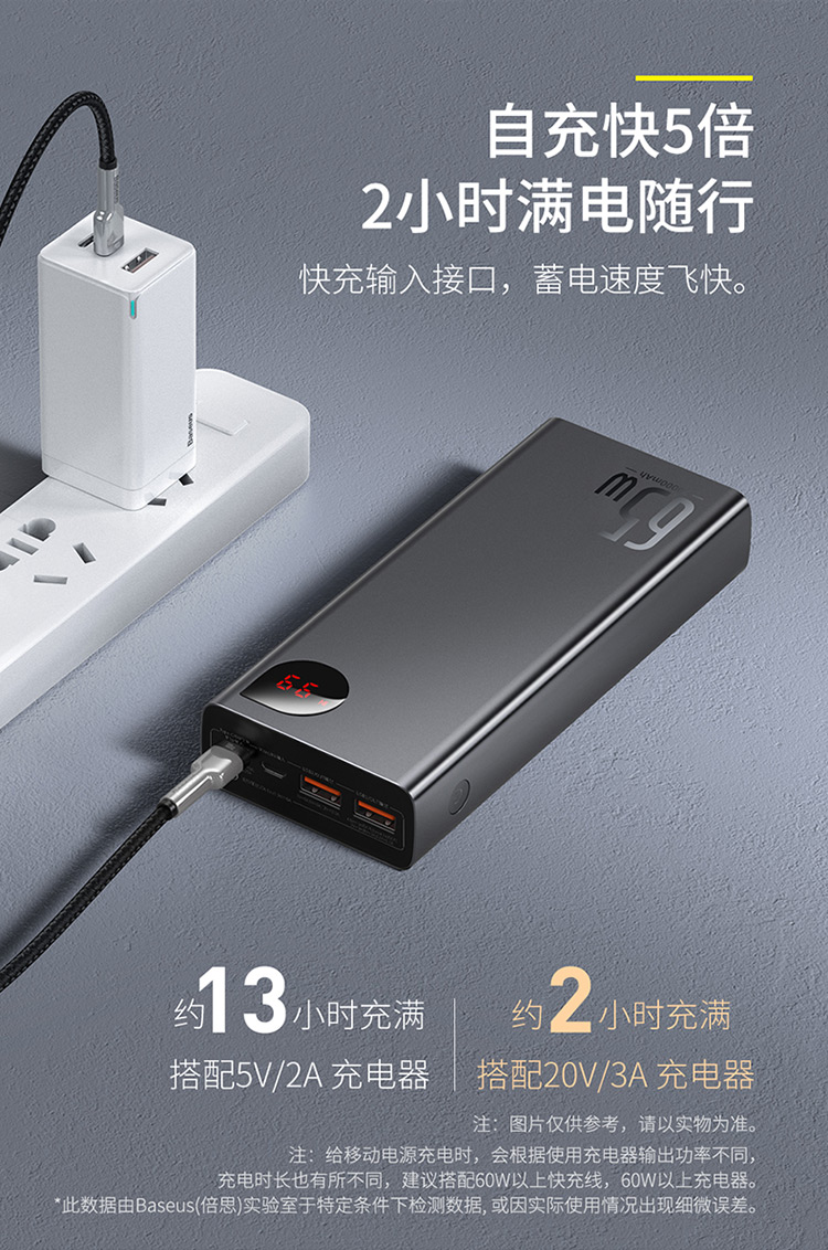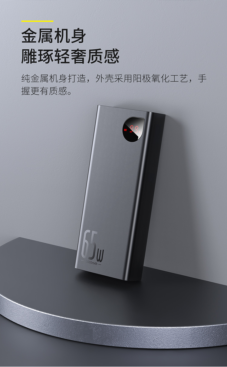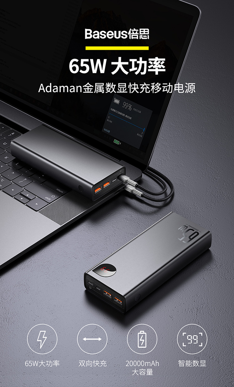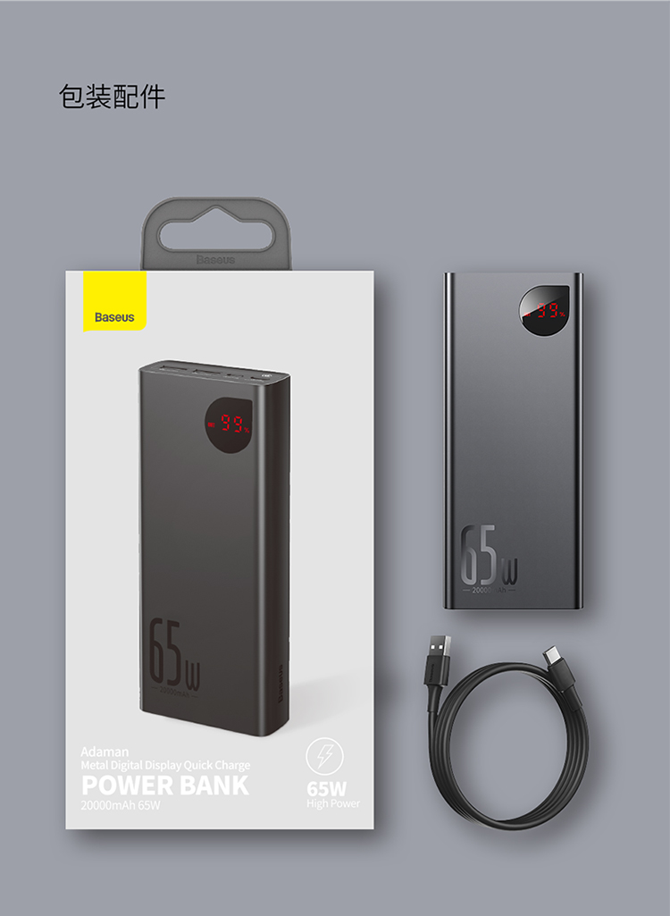 倍思 Adaman金属数显快充移动电源 65W 20000mAh充电宝(含简易通用数据线USB to Type-C 3A 0.3m)