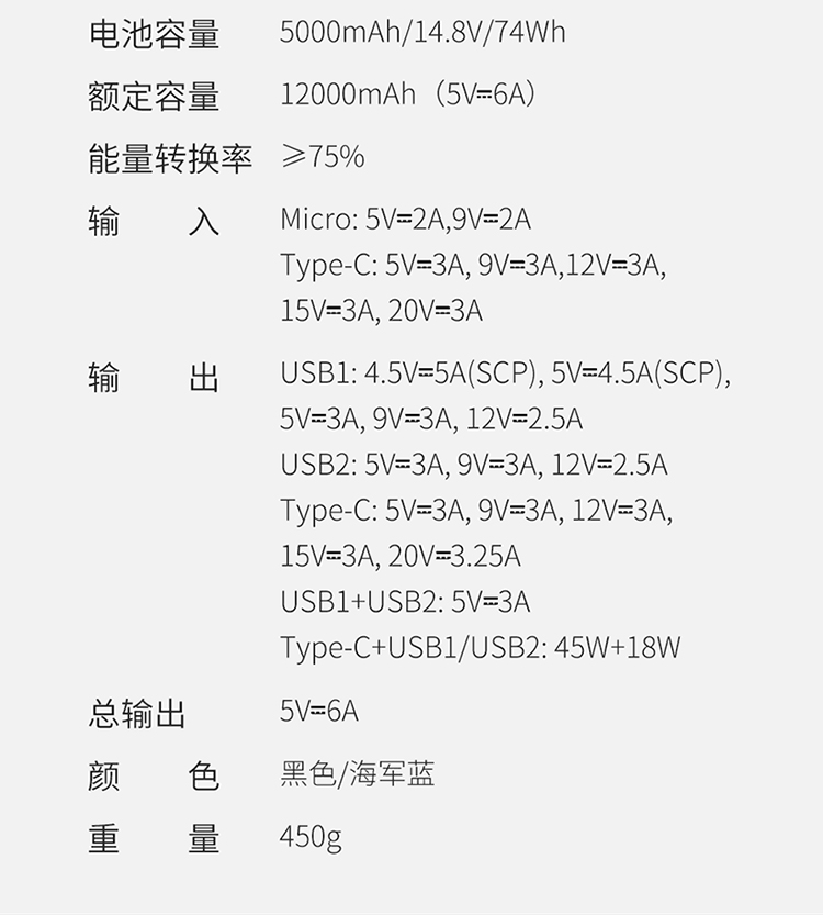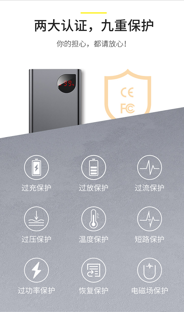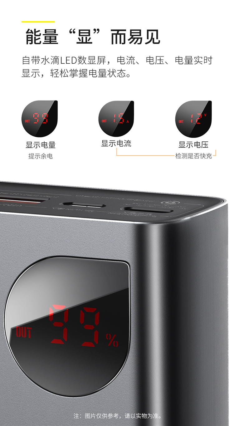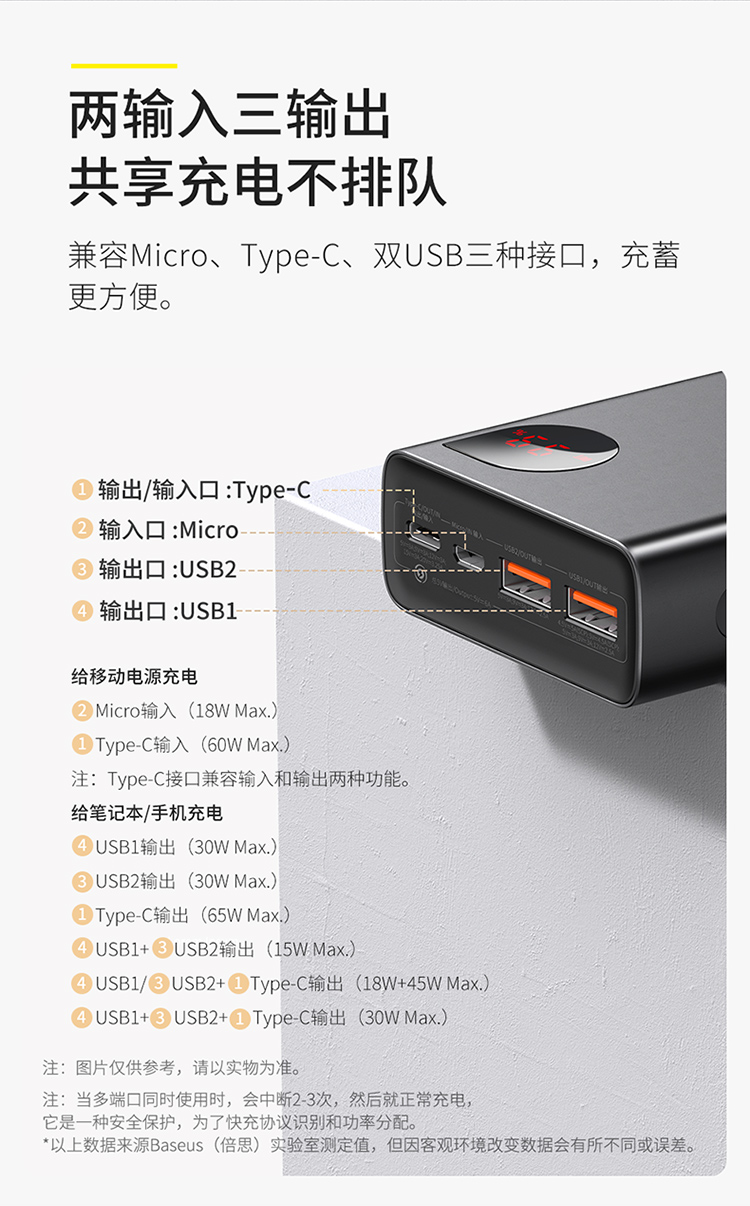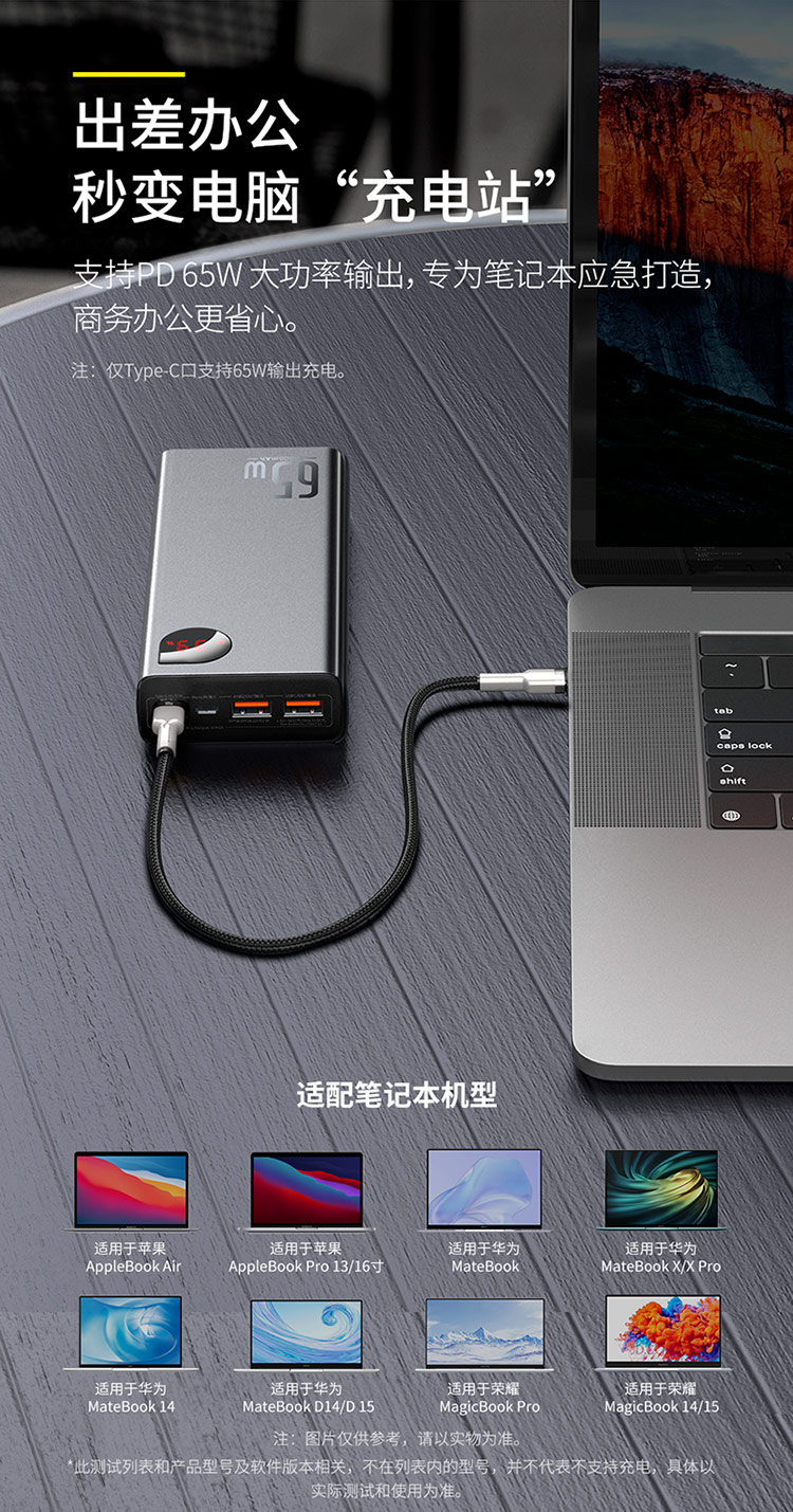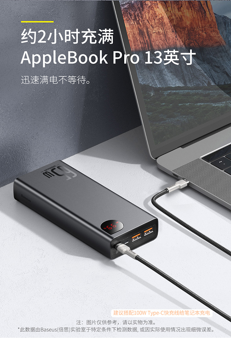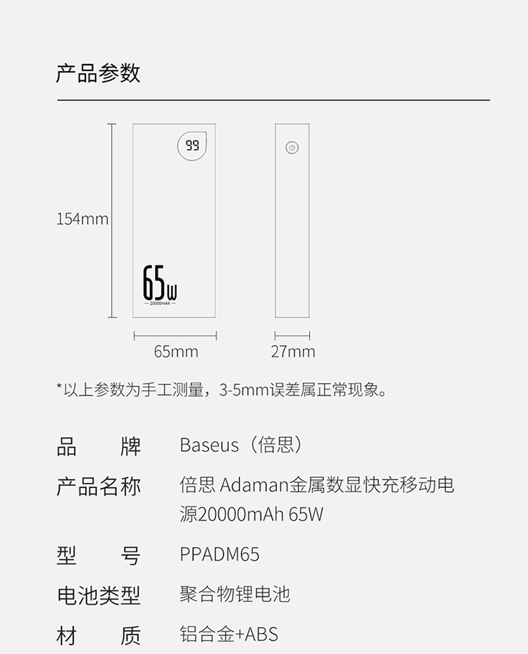 倍思 Adaman金属数显快充移动电源 65W 20000mAh充电宝(含简易通用数据线USB to Type-C 3A 0.3m)