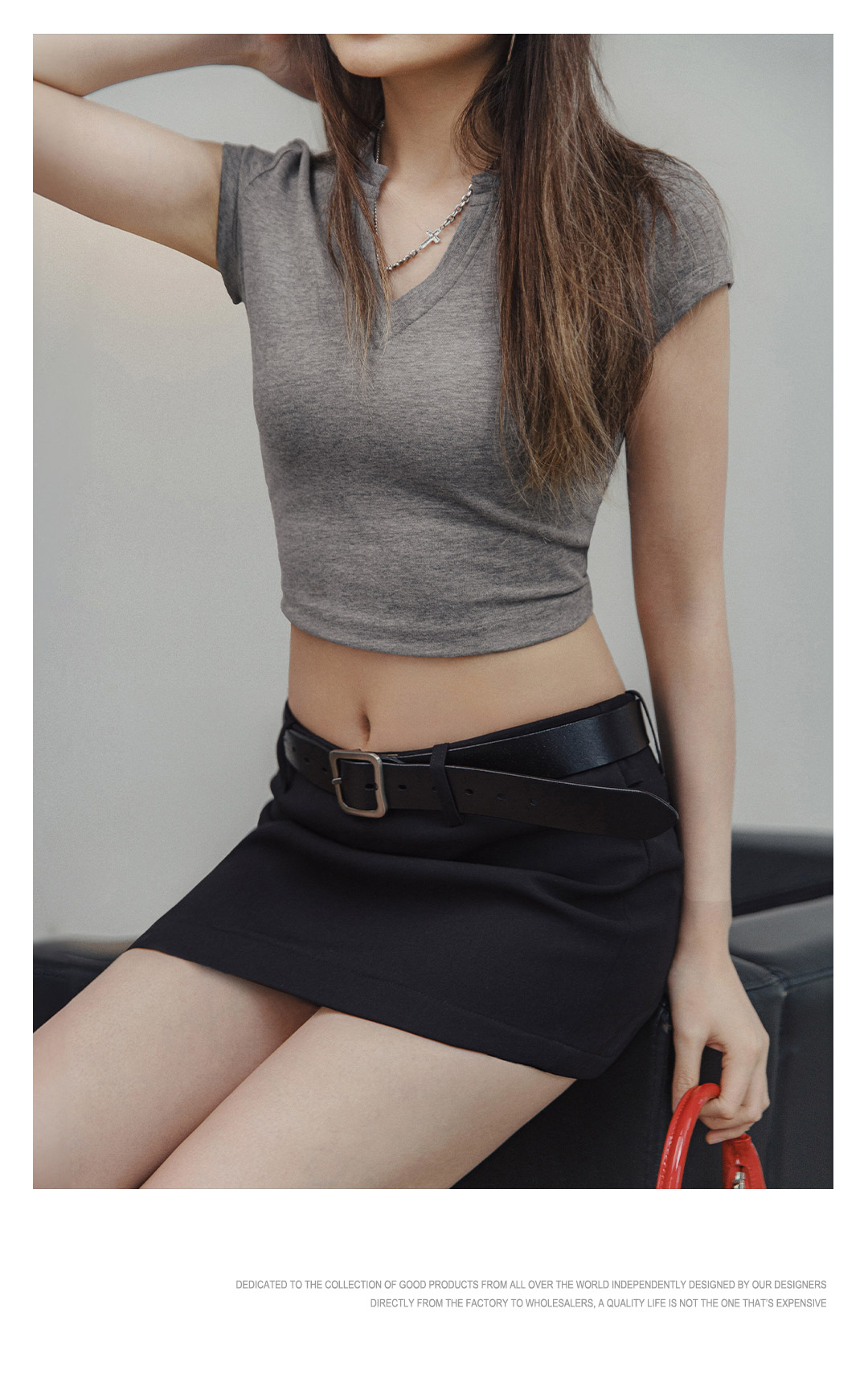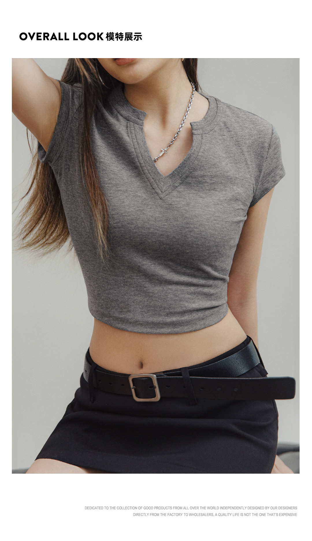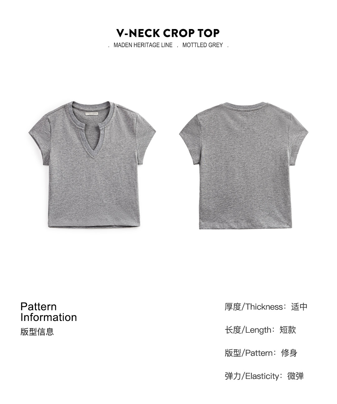 马登V领纯色短袖纯棉正肩T恤休闲百搭短款辣妹上衣修身基础款夏女