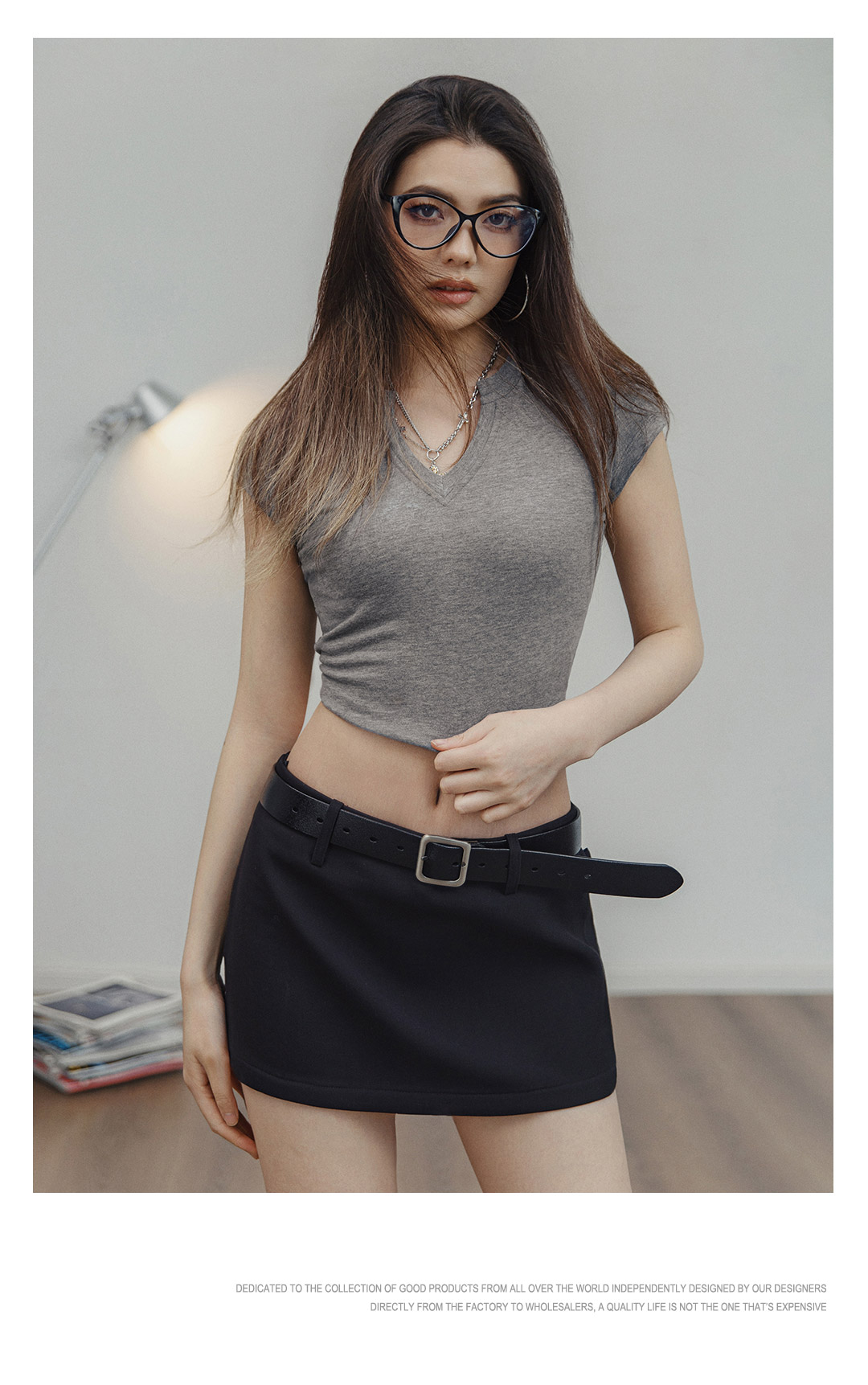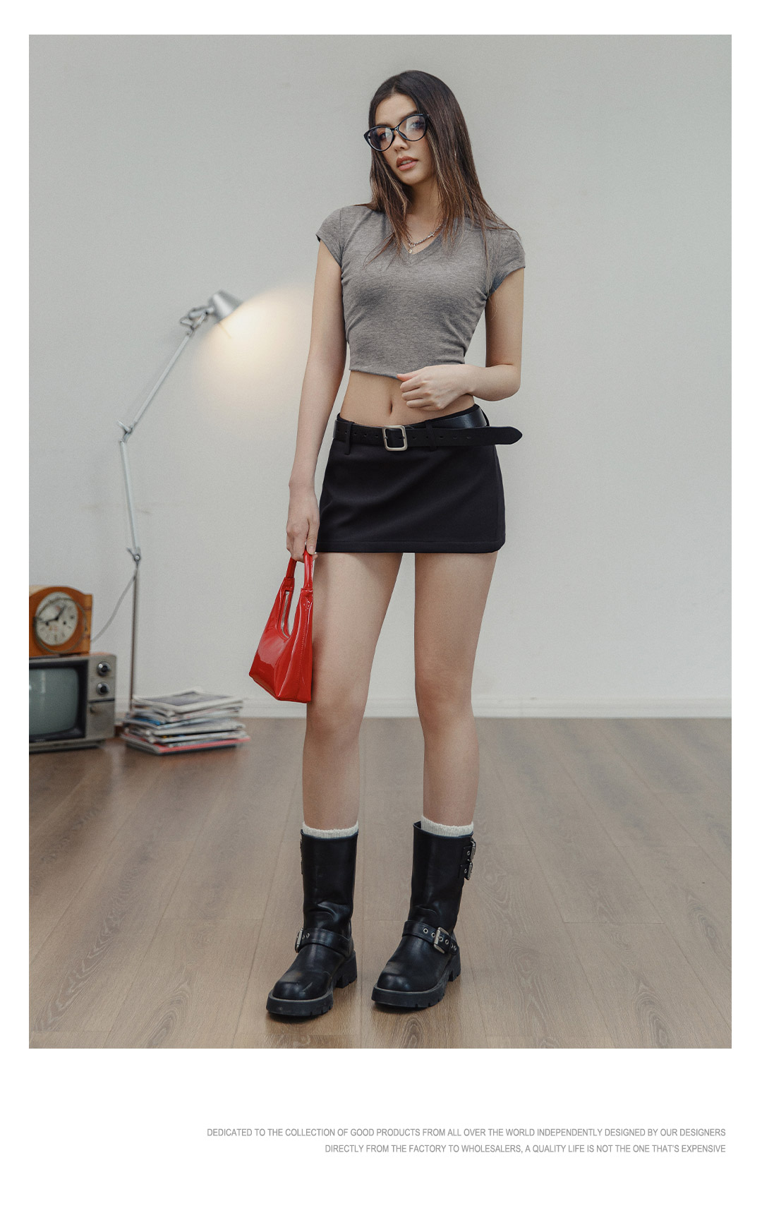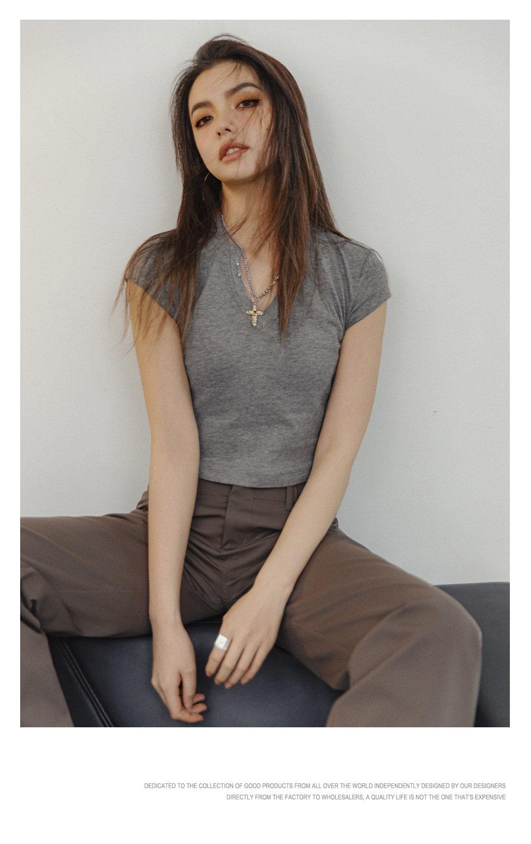 马登V领纯色短袖纯棉正肩T恤休闲百搭短款辣妹上衣修身基础款夏女