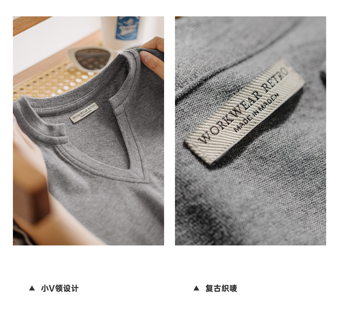 马登工装美式复古多口袋明线工装裤砖红色直筒阔腿束脚休闲裤男春
