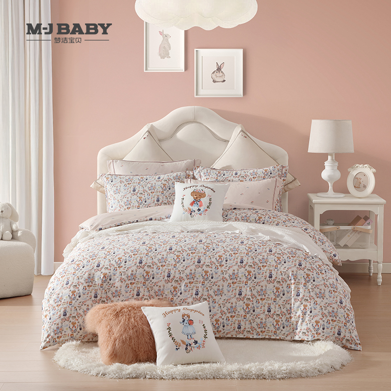 【6F】梦洁宝贝长绒棉印花四件套:花园萌宠