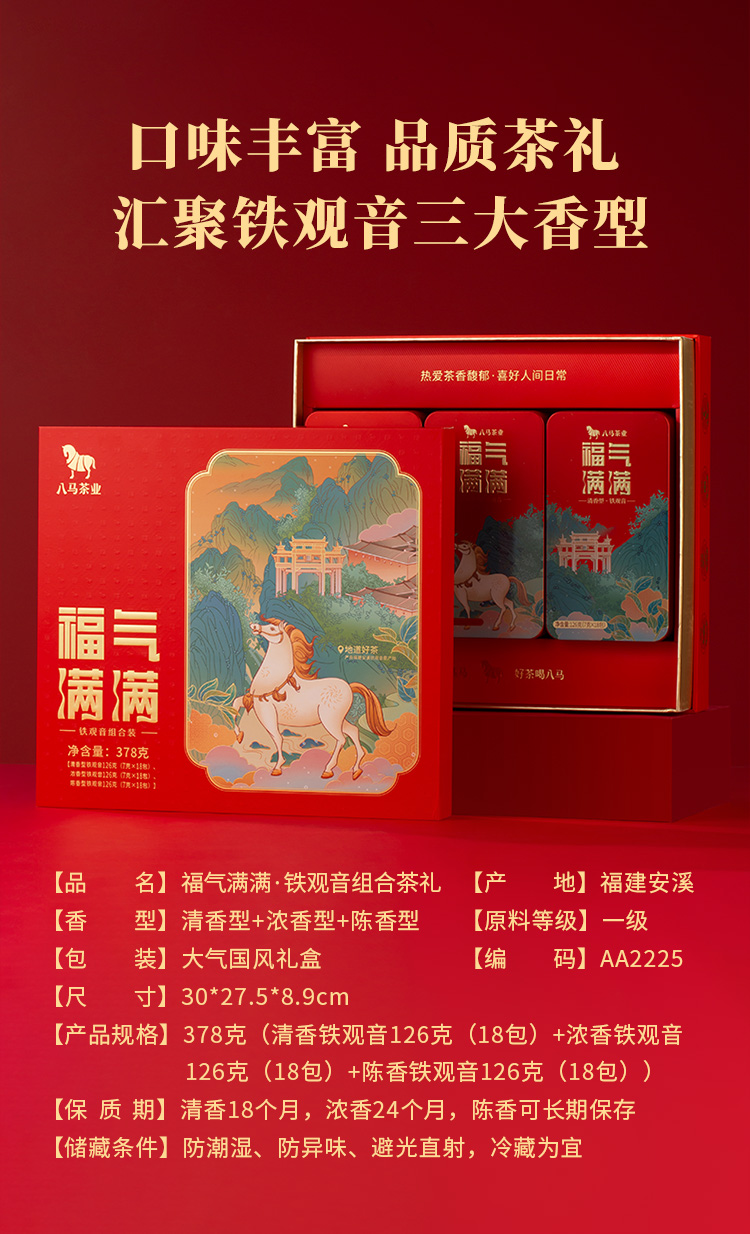 八马茶业 | 福气满满·乌龙茶铁观音组合茶礼378g