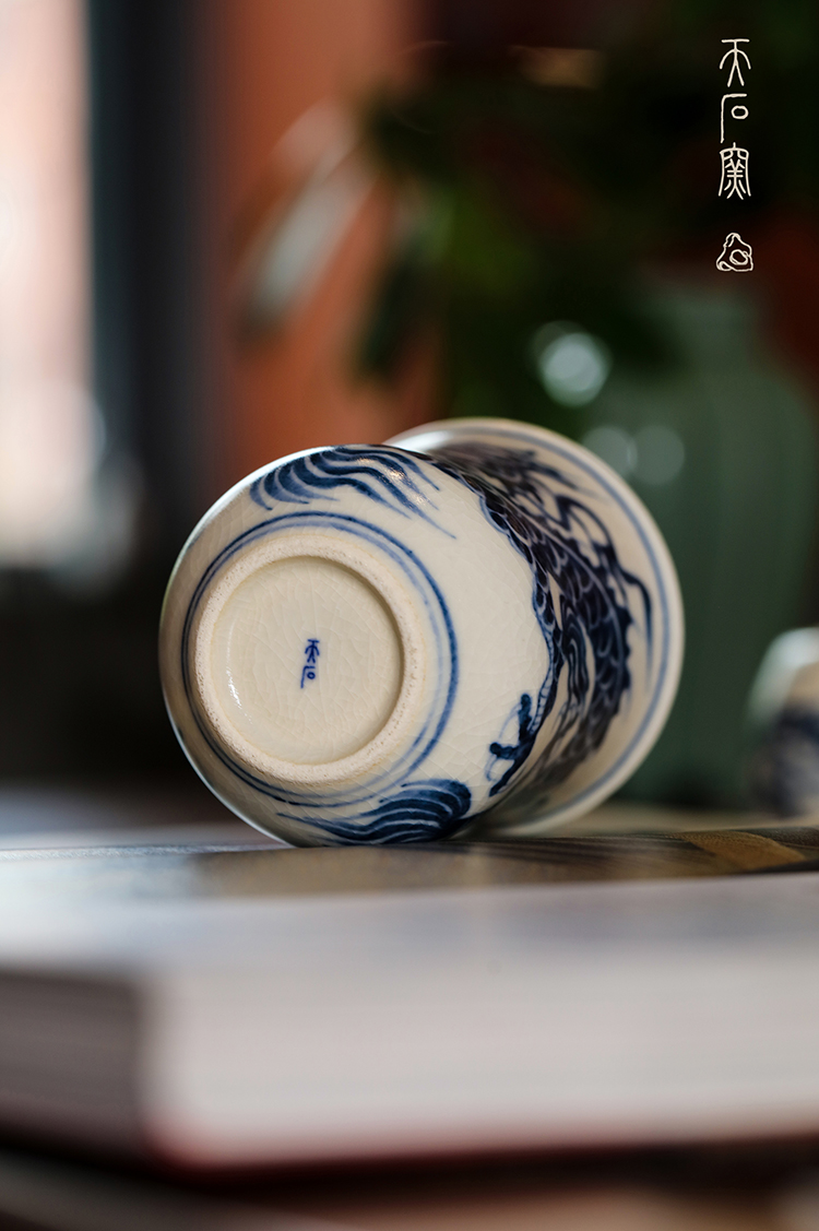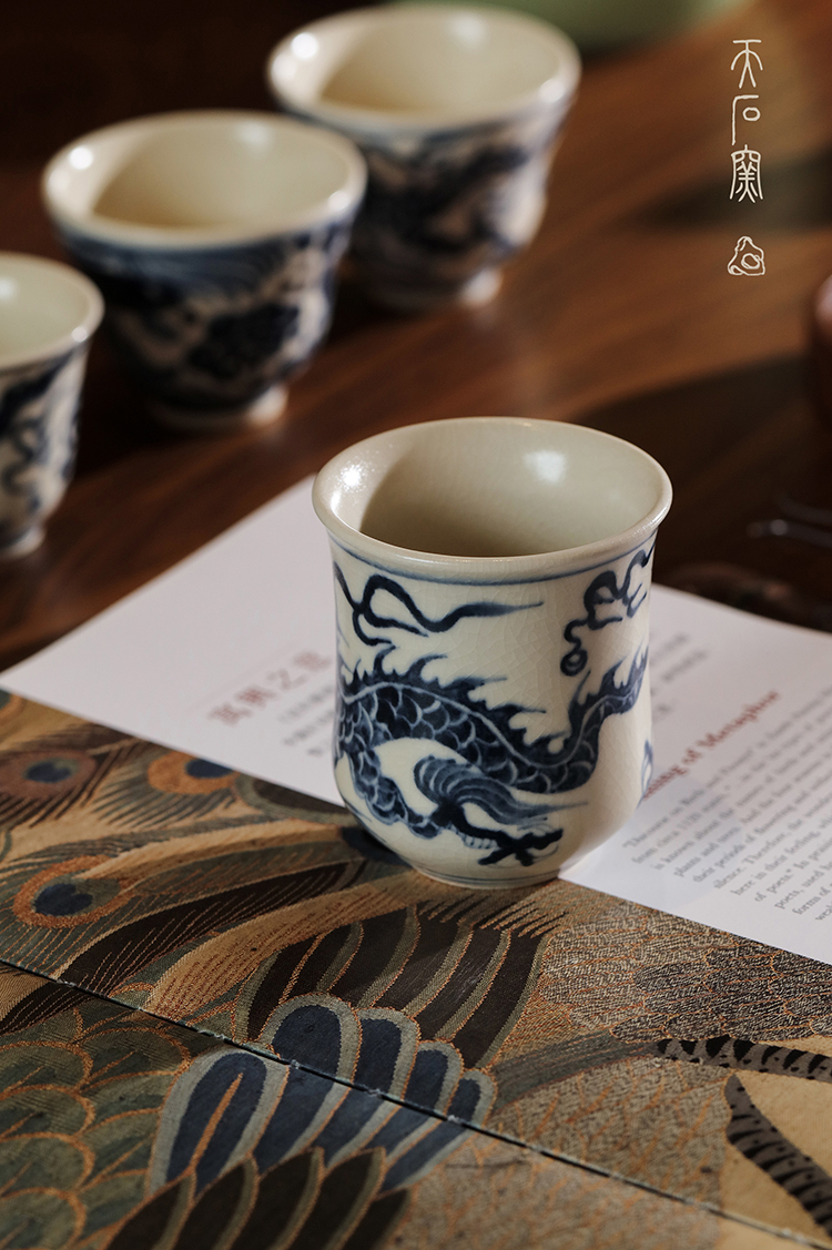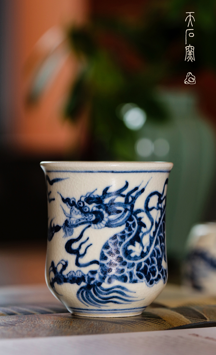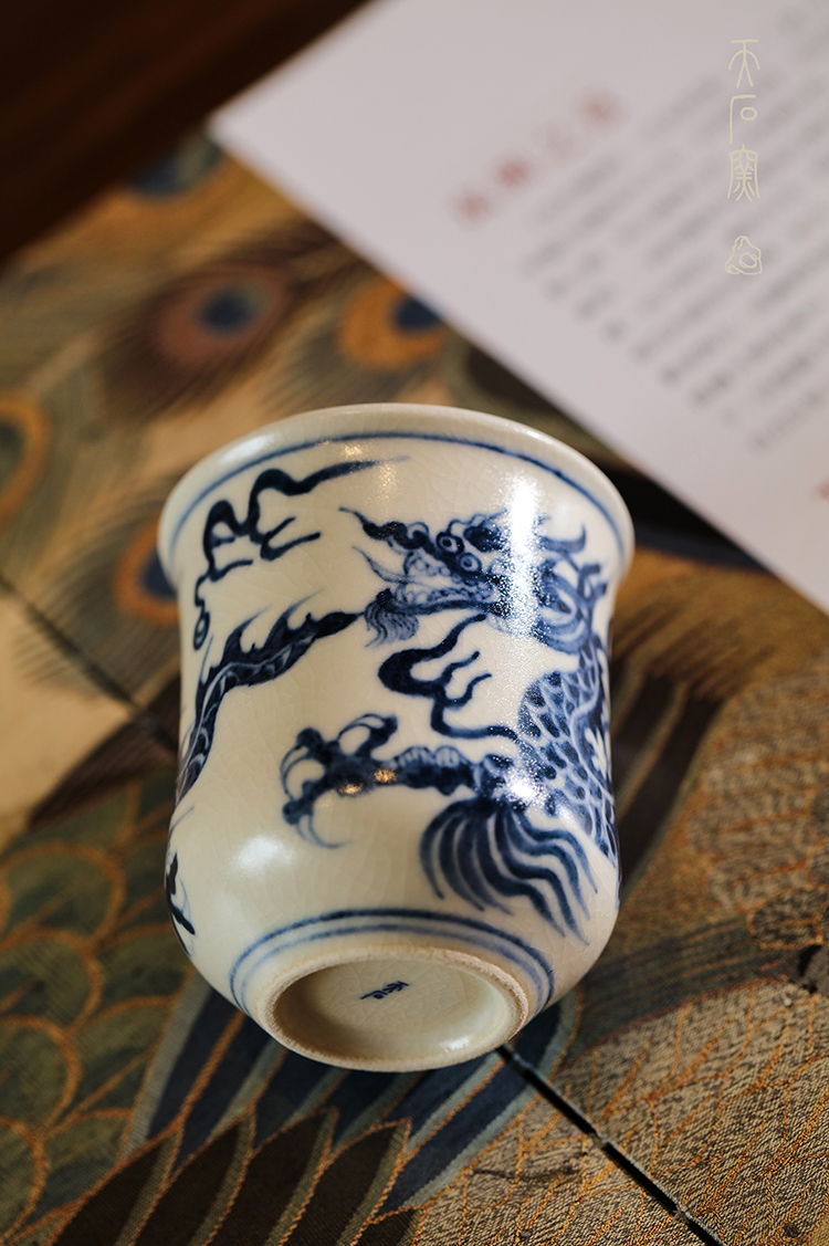 问鼎天石窑白陶泥元青花中号束腰杯(龙)