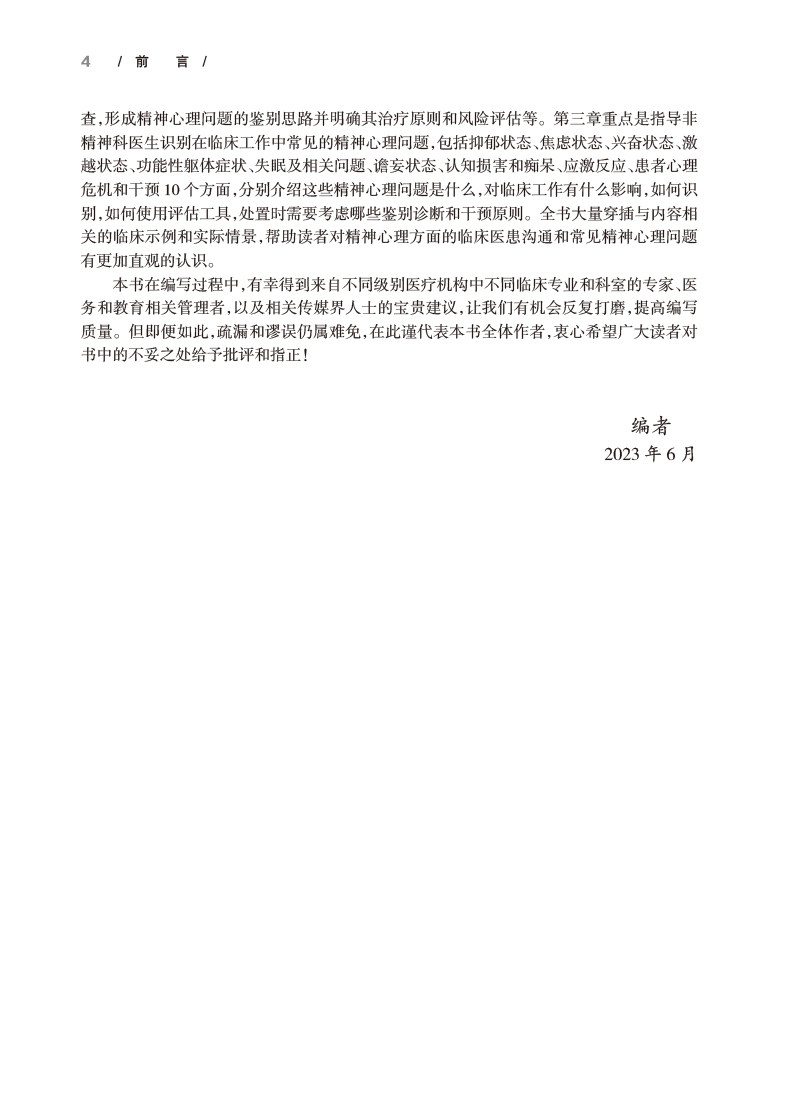 非精神科常见精神心理问题识别与处置 2023年12月参考书 9787117358446
