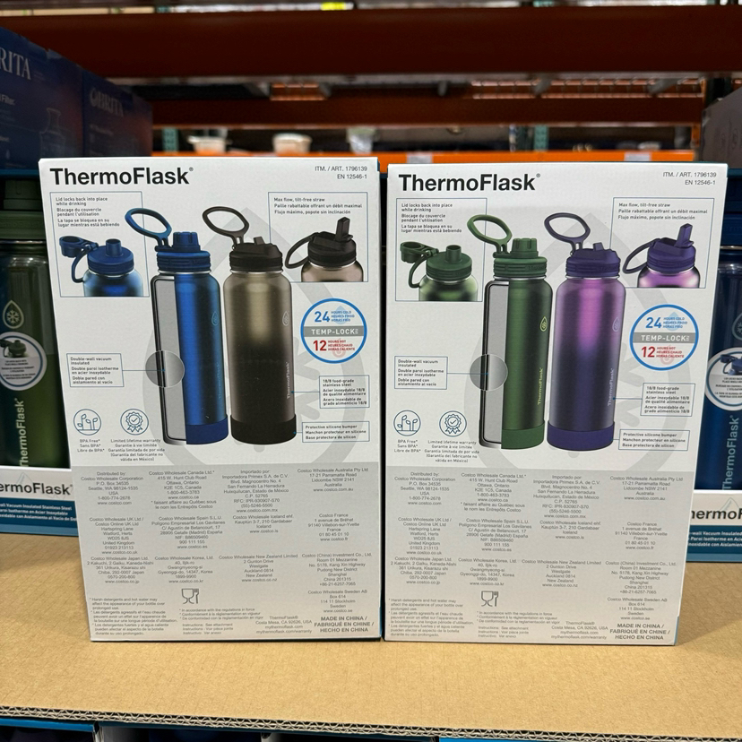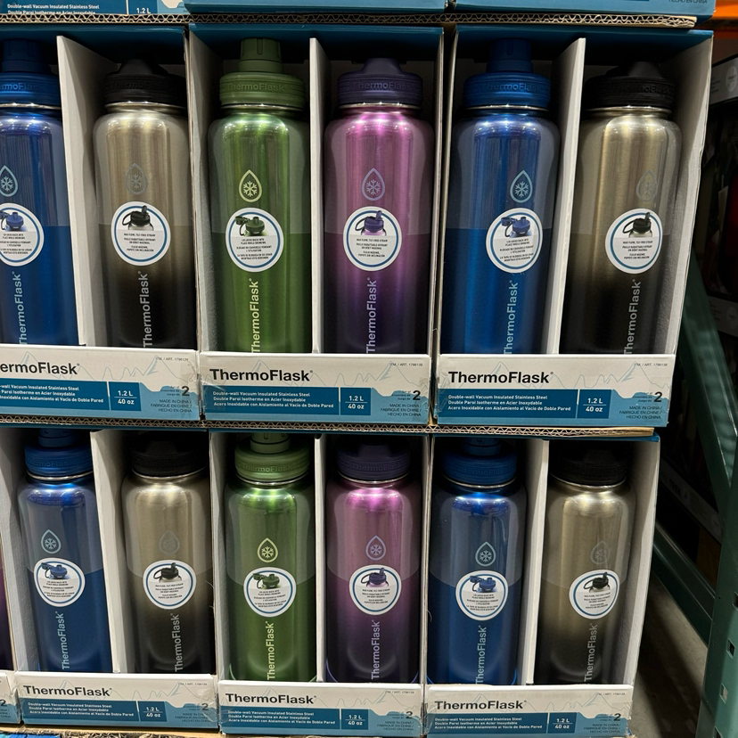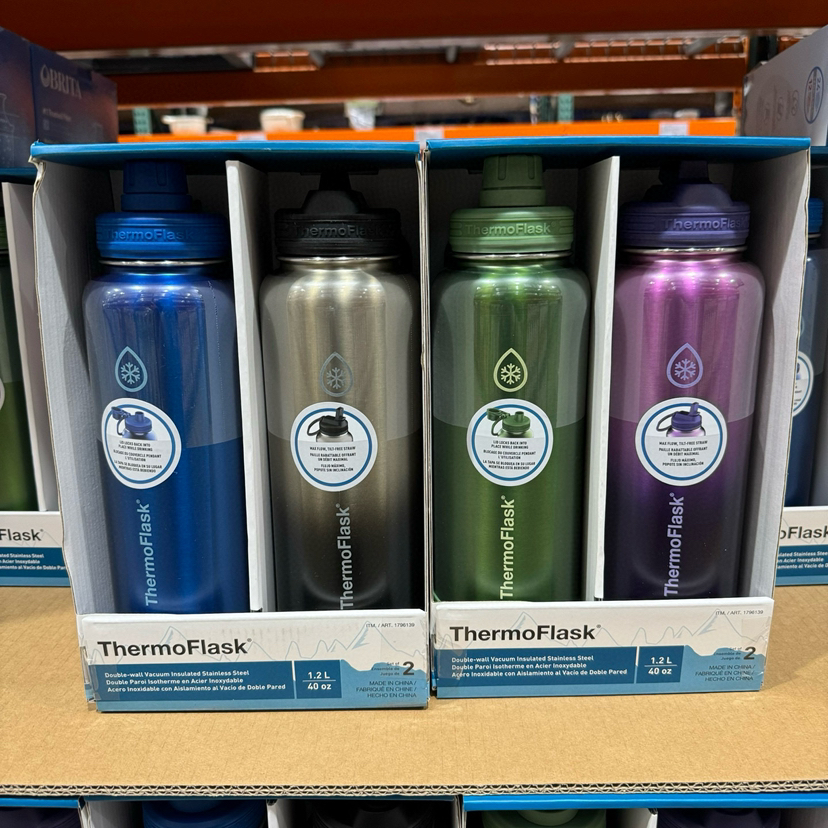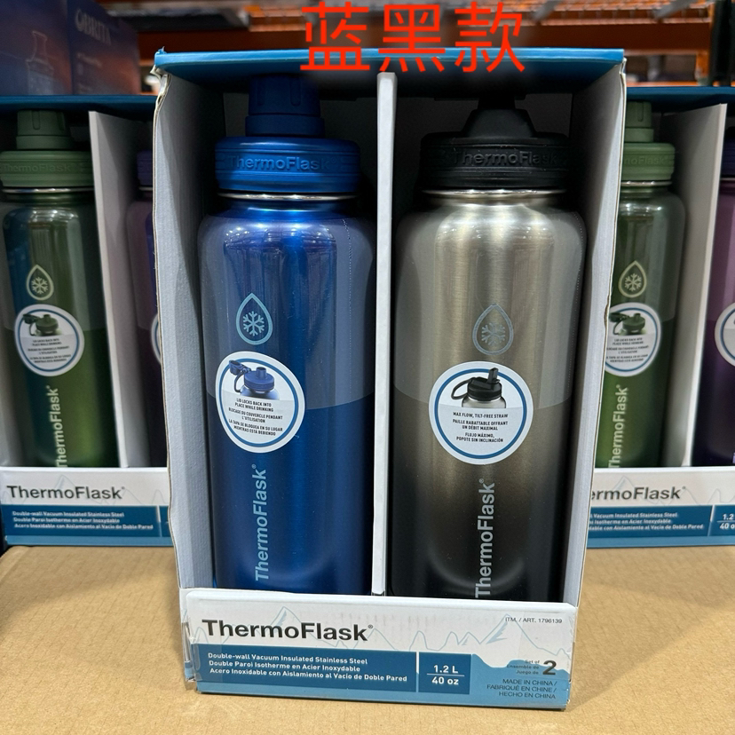 Thermoflask水杯超大容量1.2升水杯又来货了📣📣🔥热销产品!thermoflask水壶今年又上货啦!!美国直邮320元🉐/两个装!每只能装40oz /1.2升容量水 24小时保冷 12小时保温 有了这个 再也不怕冬天没温水 夏天没冰水喝了 哈哈 开长途车 喜欢自驾游的同志们必备啊!美国🇺🇸thermoflask专业户外运动品牌~ 颜色分紫黑和蓝白,1200ml 超大容量[得意]不锈钢保温杯 两瓶装! 颜色分:蓝黑和绿紫色!保温12小时!保冷24小时!工作、健身房锻炼、户外运动、旅行、露营、探险旅游都非常适合!国内商场好贵,一个就要5百多[惊讶]。