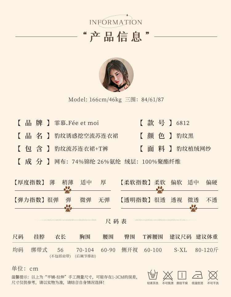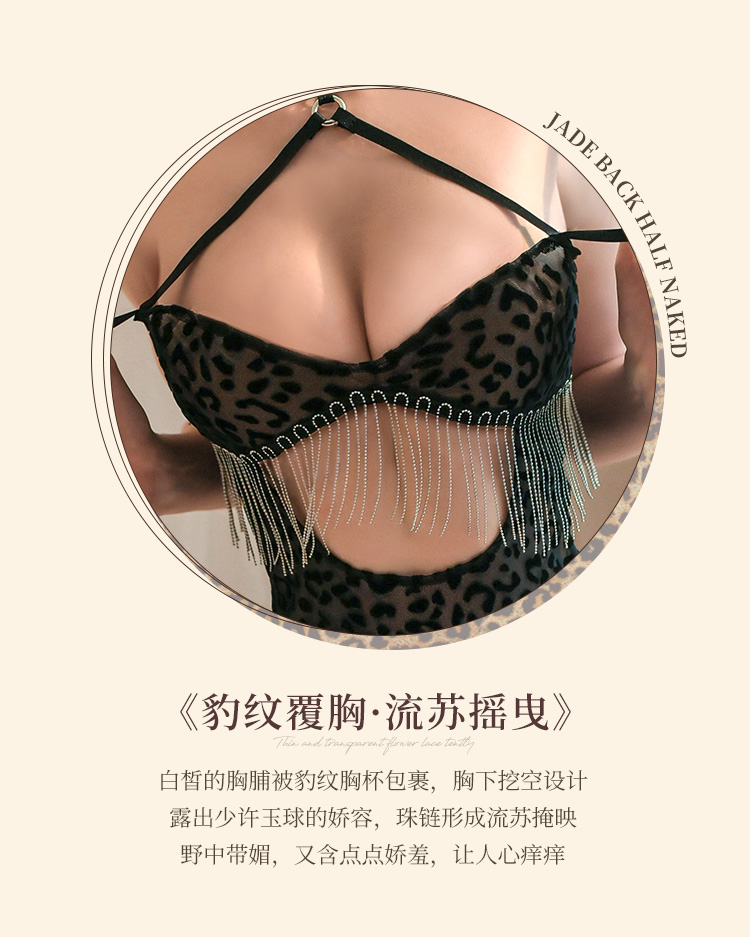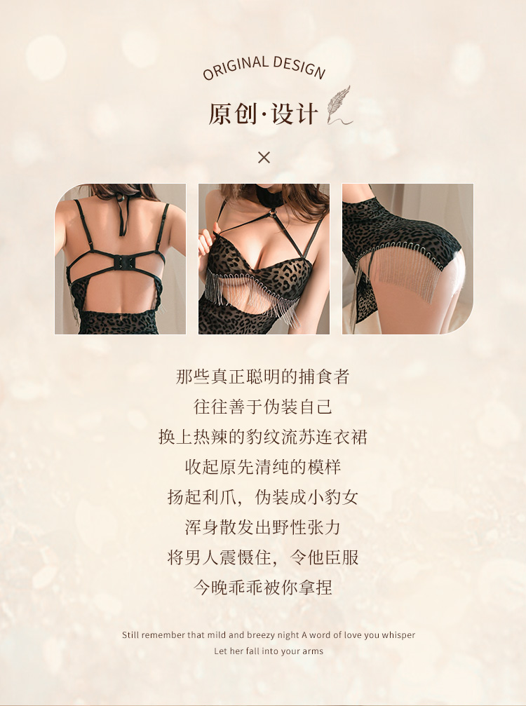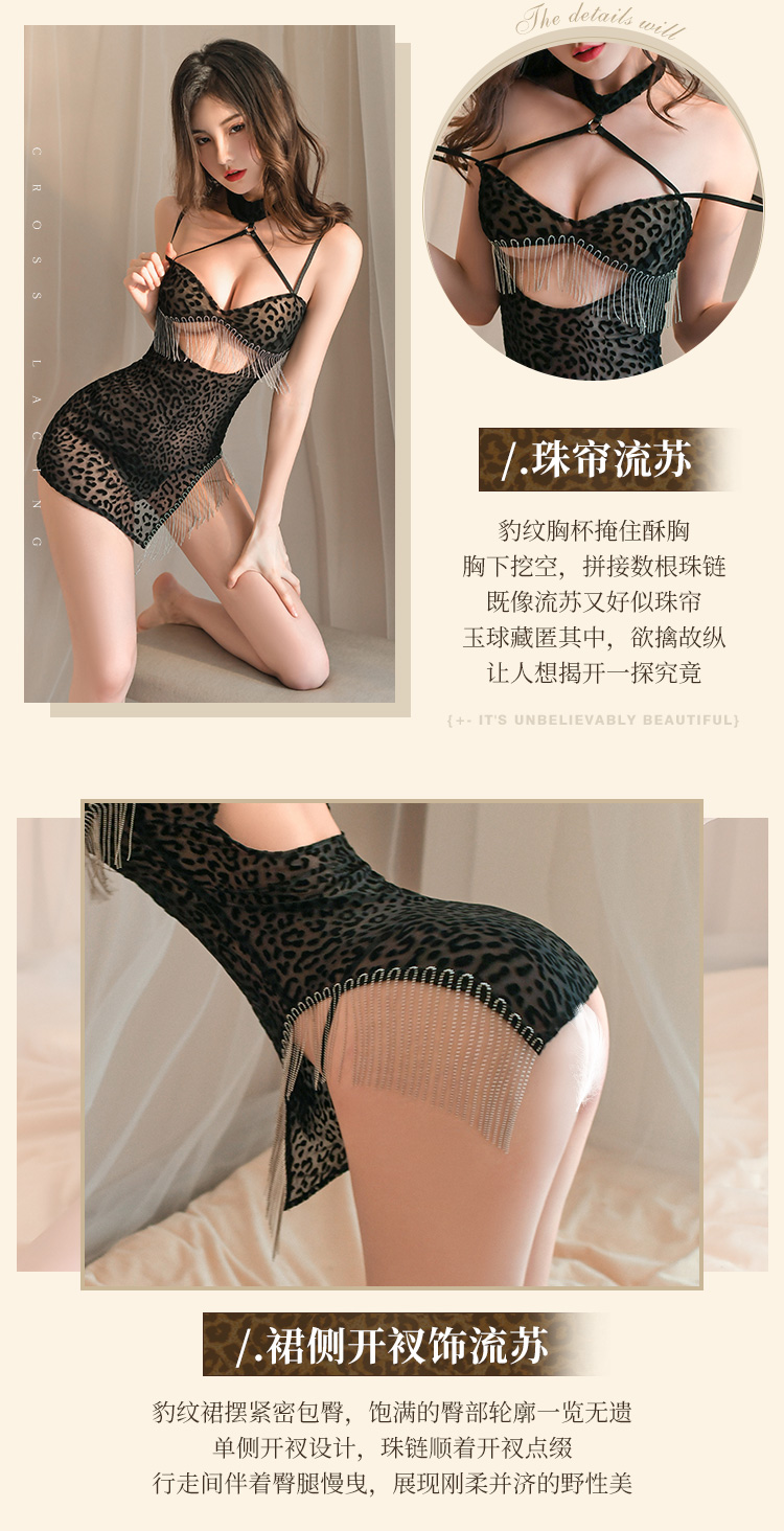 【野性之心】情趣内衣 豹纹 挖空 流苏 连衣裙 纯欲 女装 胸罩 内裤套装 型号:6812