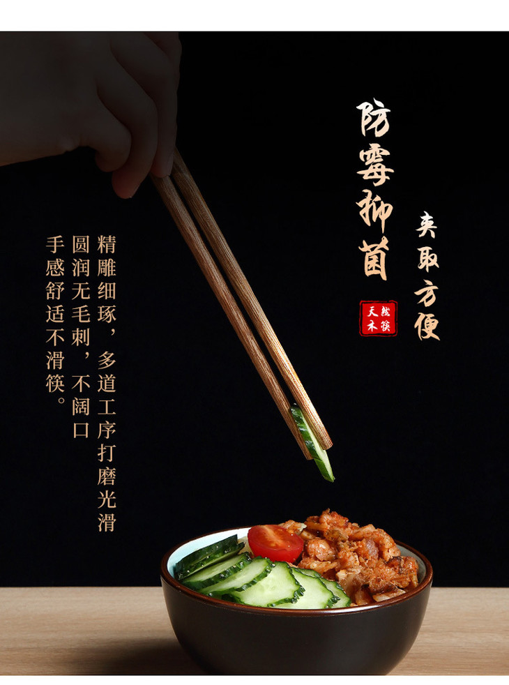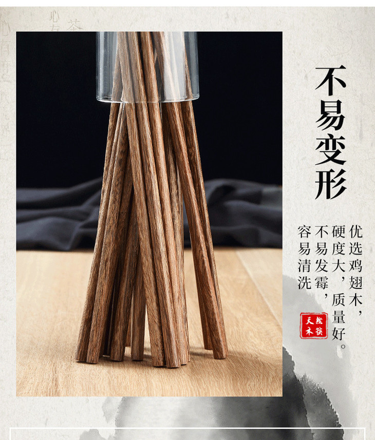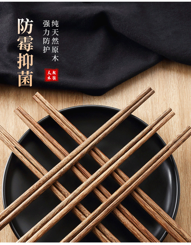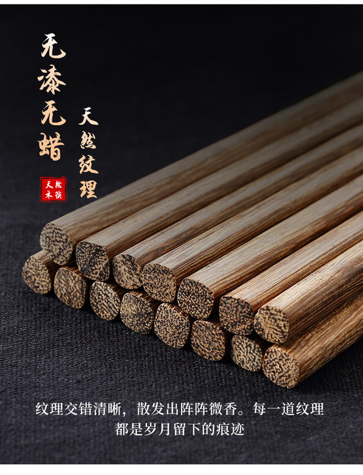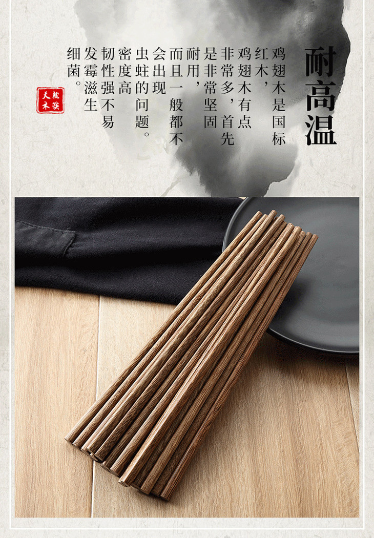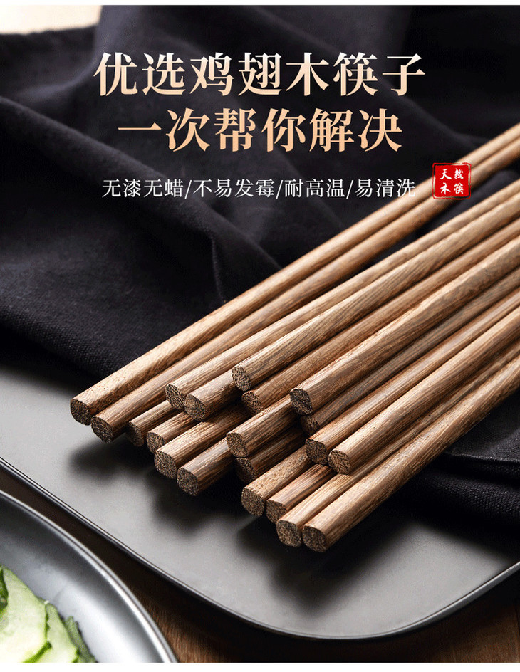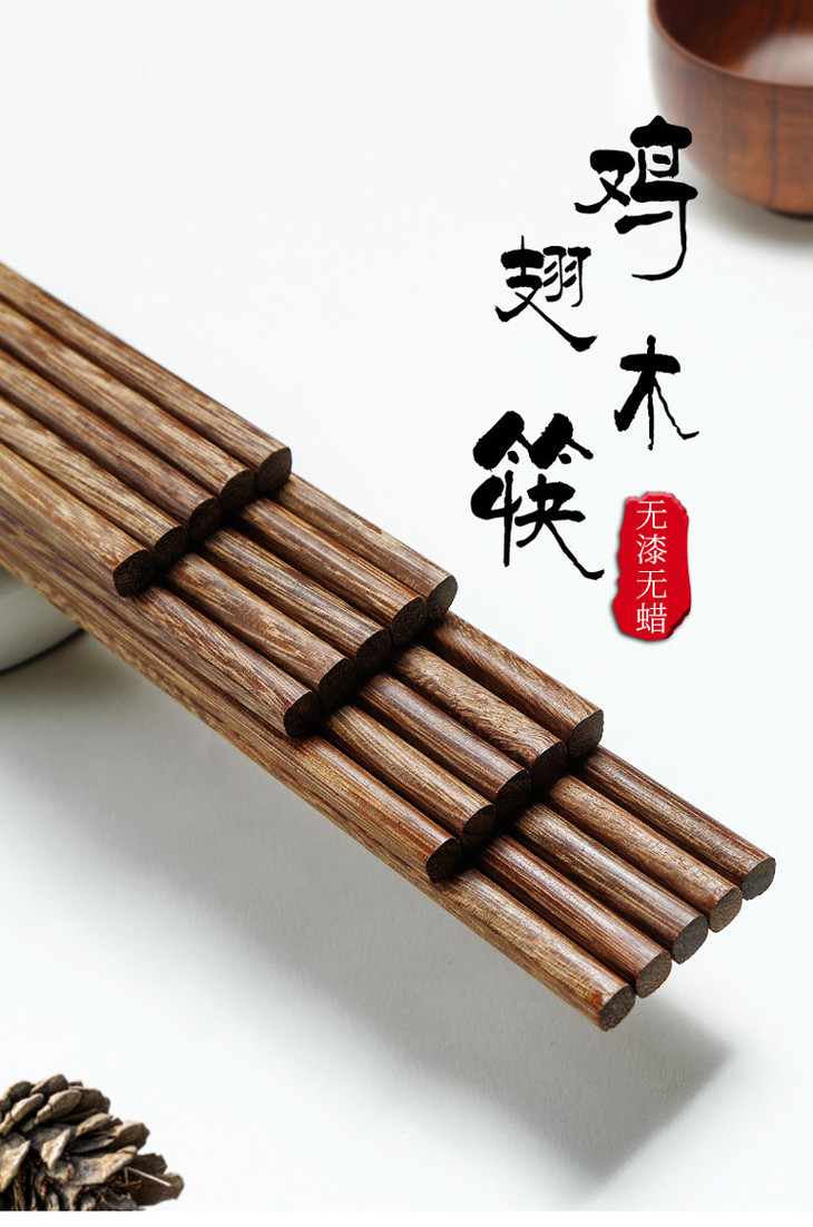 【筷子】*10双礼盒装鸡翅木筷子家用无漆无蜡环保健康筷子中式圆头木质筷子