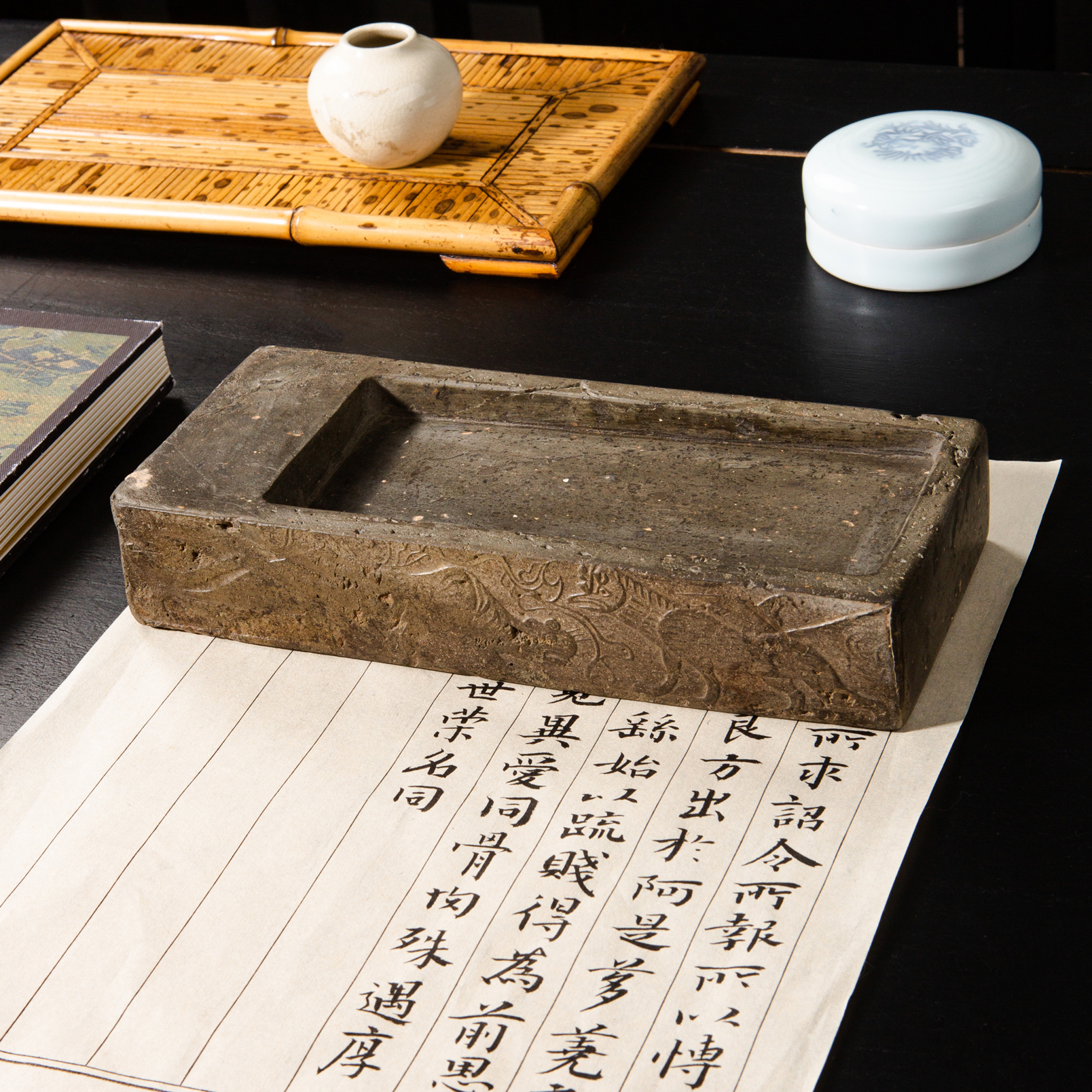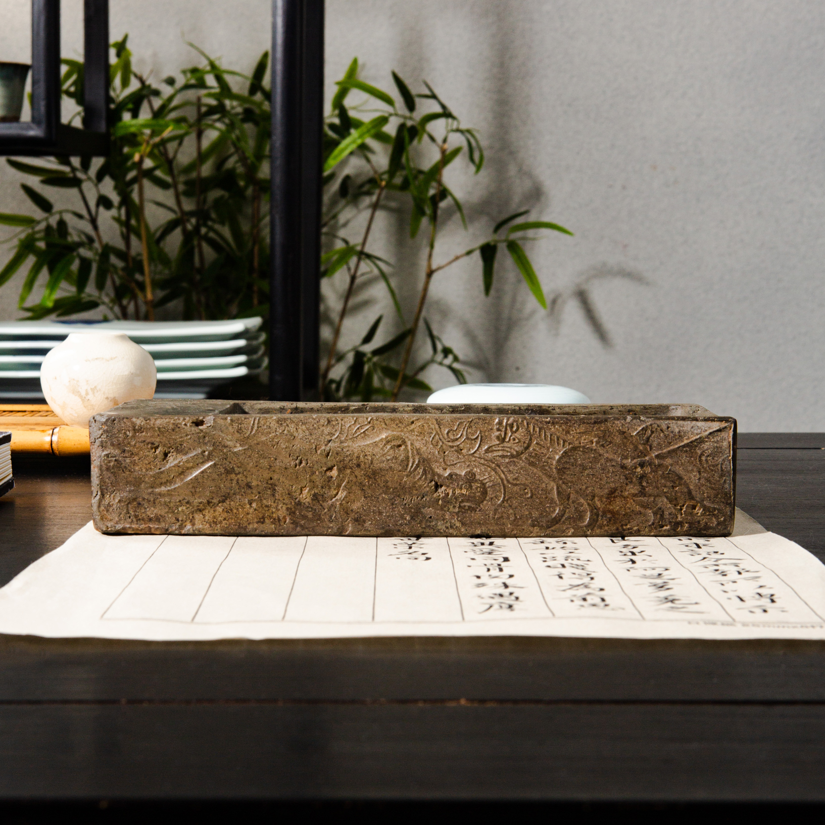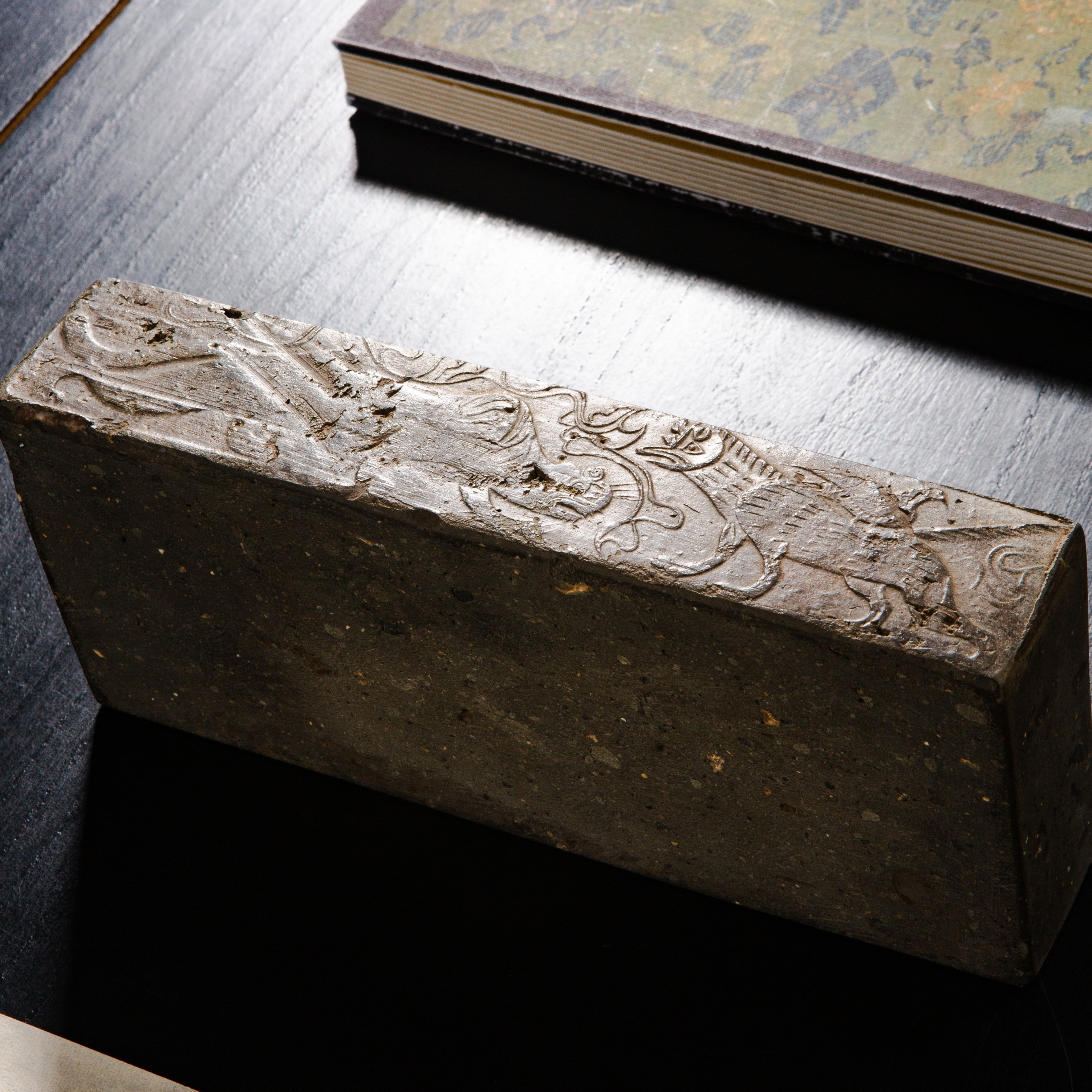 汉晋“古兽图”古砖制砚,其图案少见,胎质坚实细腻,器型典雅端庄,整体呈现古朴之气息,十分难得。