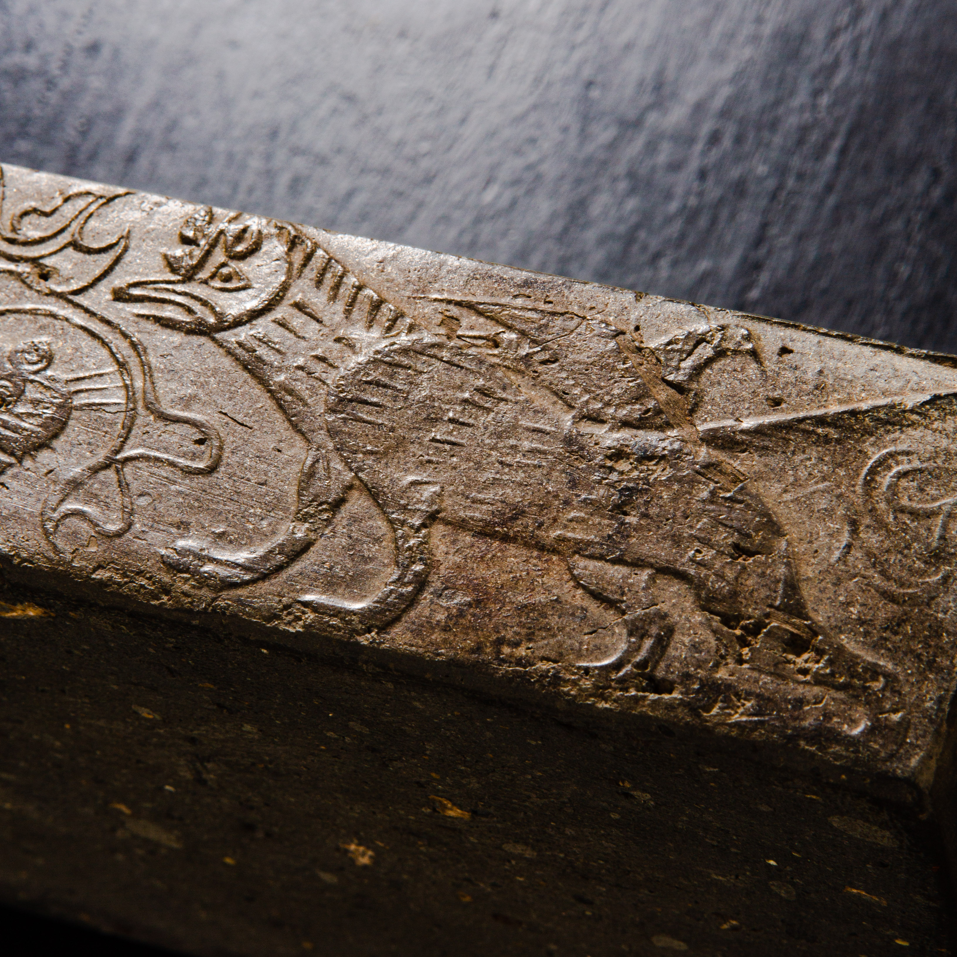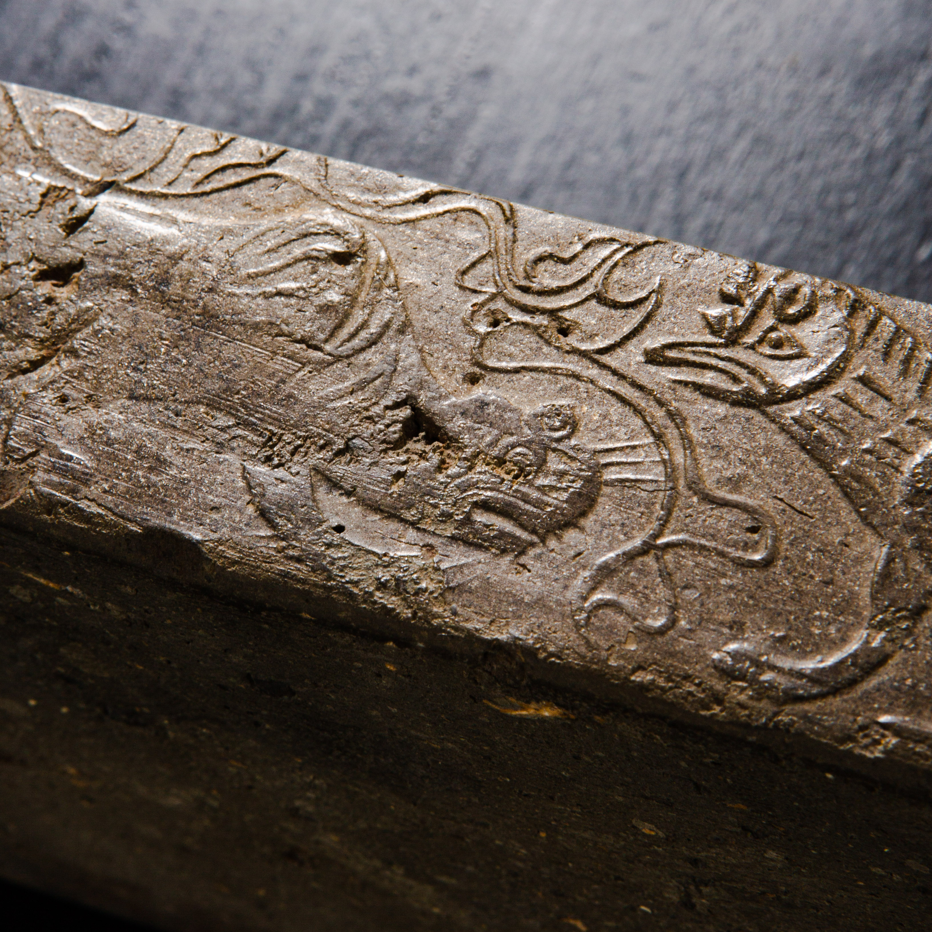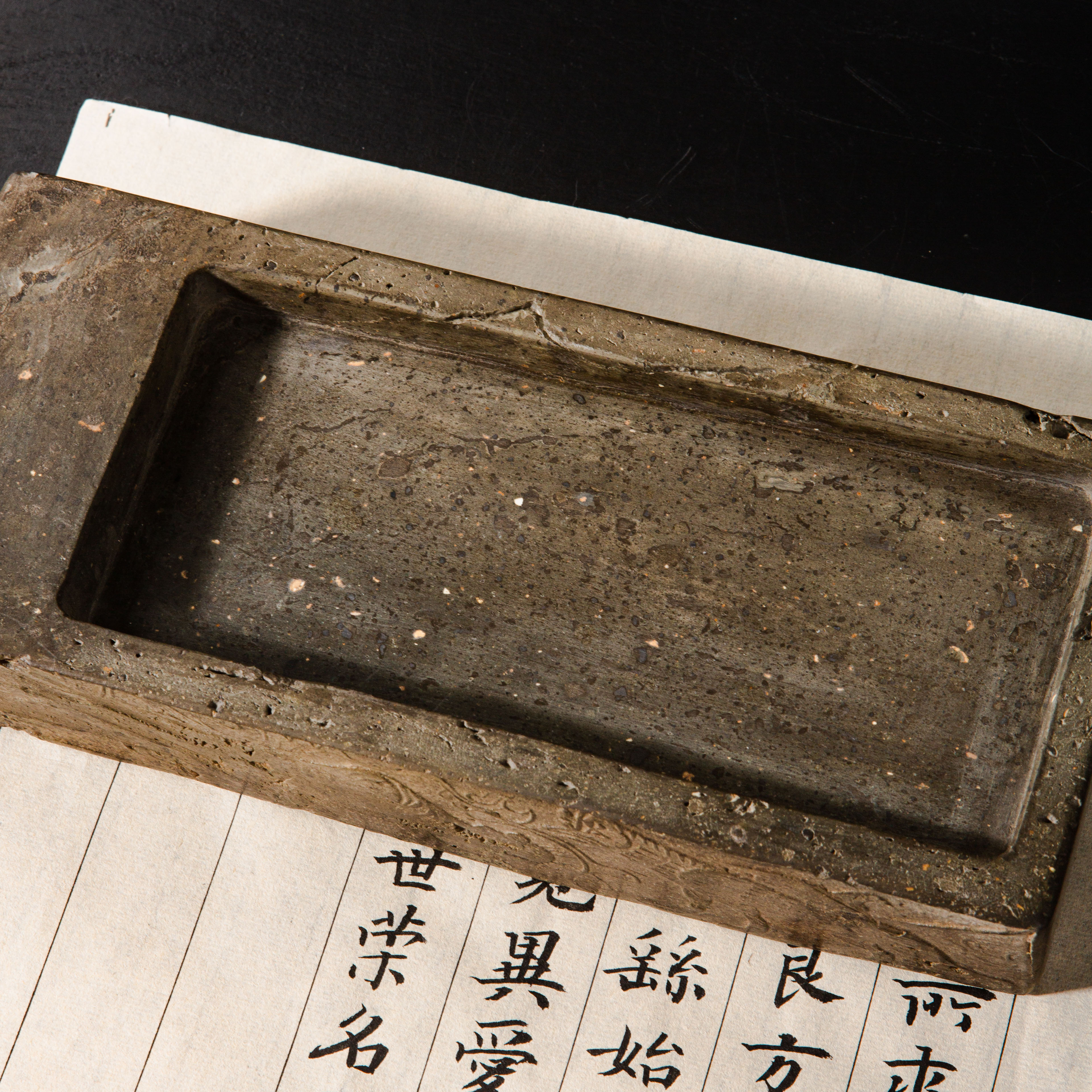 汉晋“古兽图”古砖制砚,其图案少见,胎质坚实细腻,器型典雅端庄,整体呈现古朴之气息,十分难得。