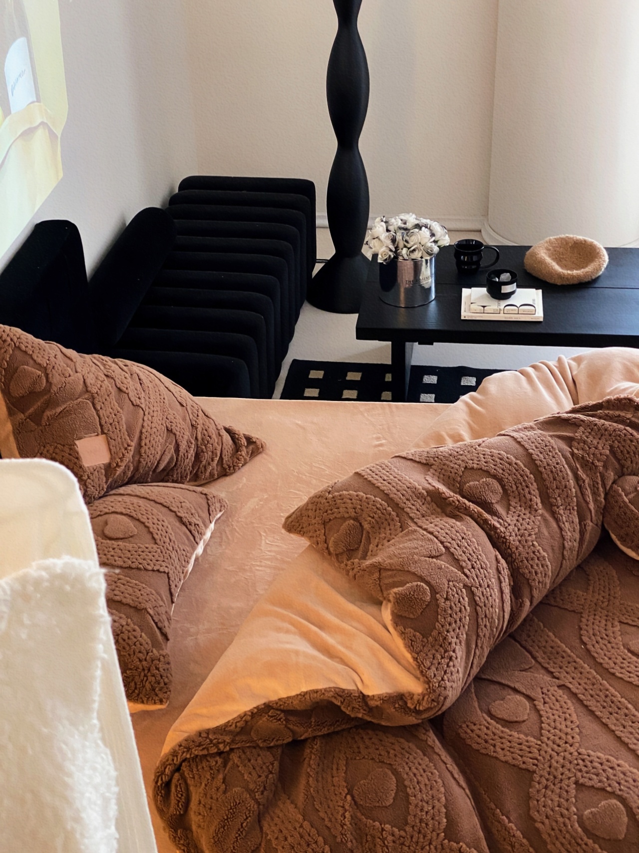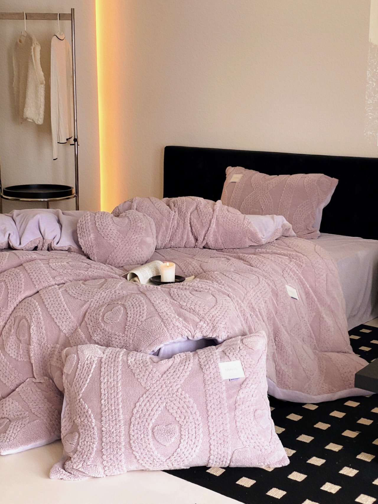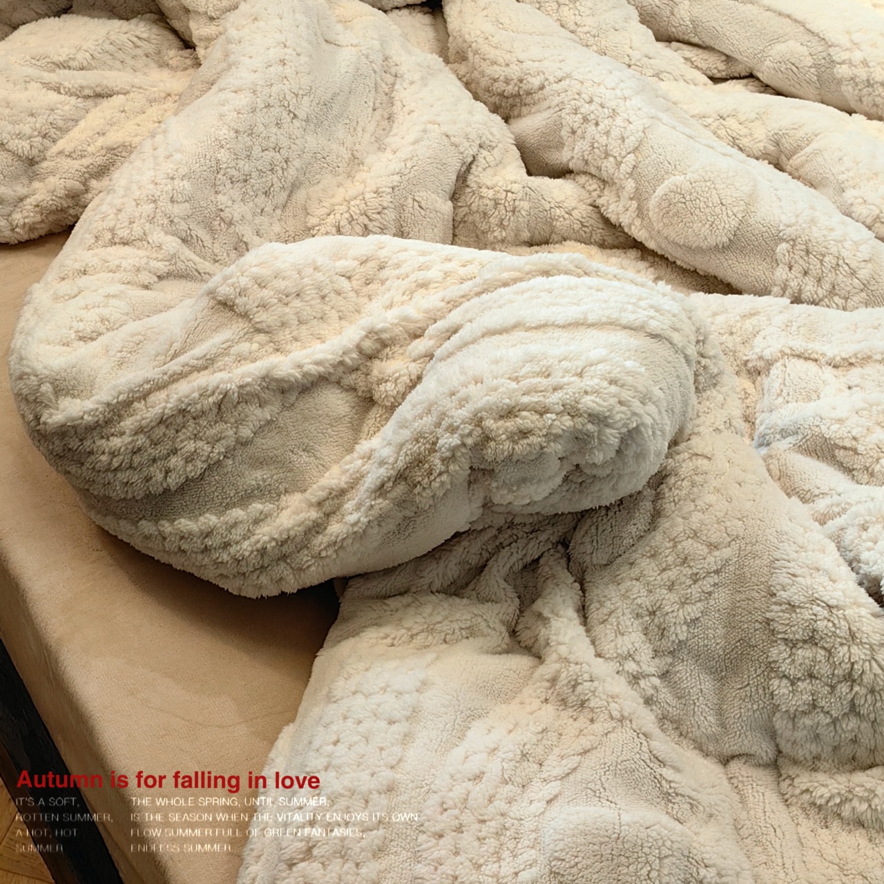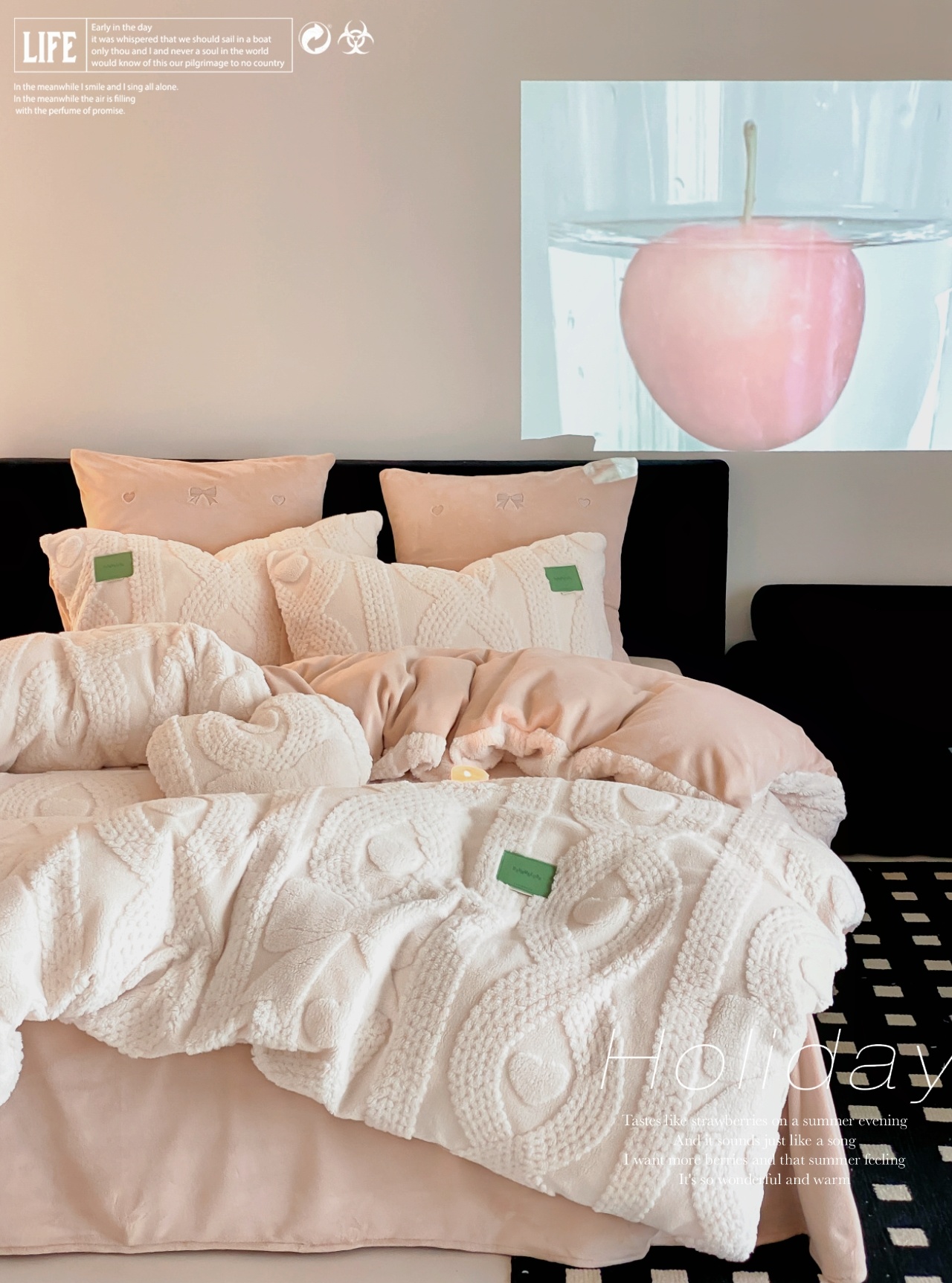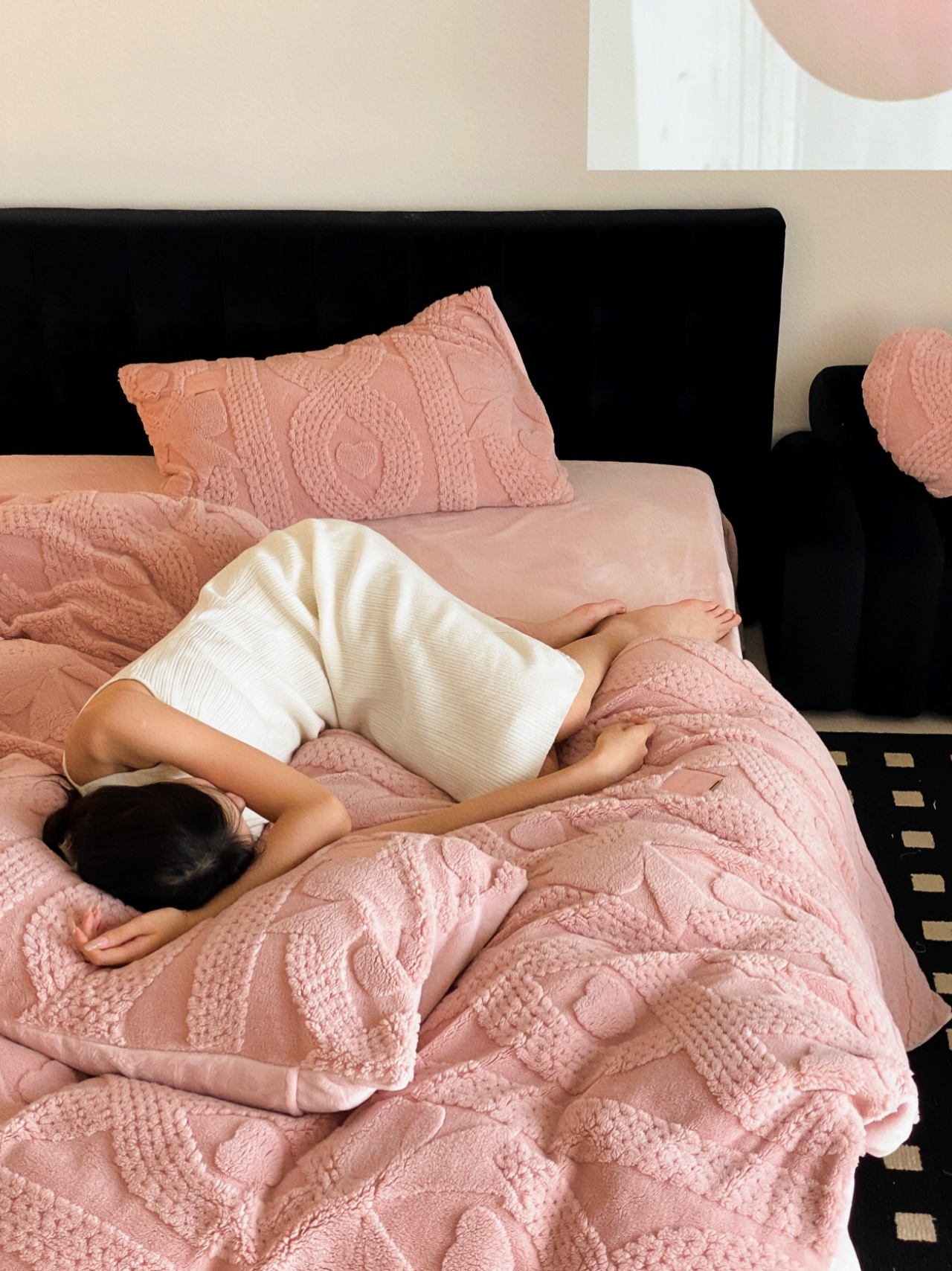 入冬了,除了要买买新衣物,床品毯子也该换起来啦!毛绒绒的高克重舒棉绒立体雕花四件套,依然是朋友工厂的新品,温暖柔软,粉嫩可爱,性价比极高,还有爱心抱枕哎!还有头等舱系列的抗皱磨毛毯,也是可以来一条,随时裹裹,放办公室还可以当午睡毯,也能作为披肩盖脚,很是垂坠!
