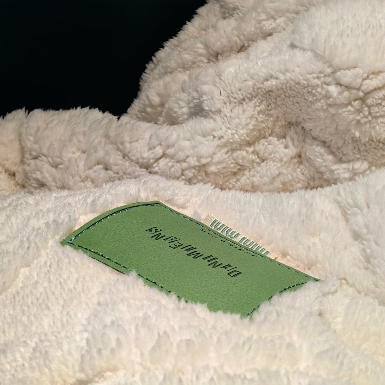 B面纯色部分则是和之前的暮色森林一样,230g牛奶绒,细腻柔软,主要成分是牛奶蛋白纤维和聚丙烯腈,富含17种氨基酸,具有很强的亲水性、导热性,在防霉和防虫蛀方面也更出色,还具有三维立体纤维结构,所以睡起来,真的是冬暖夏凉!
