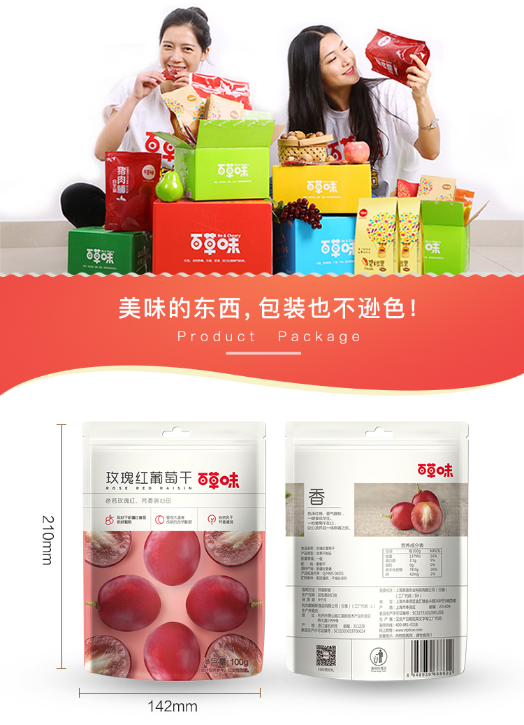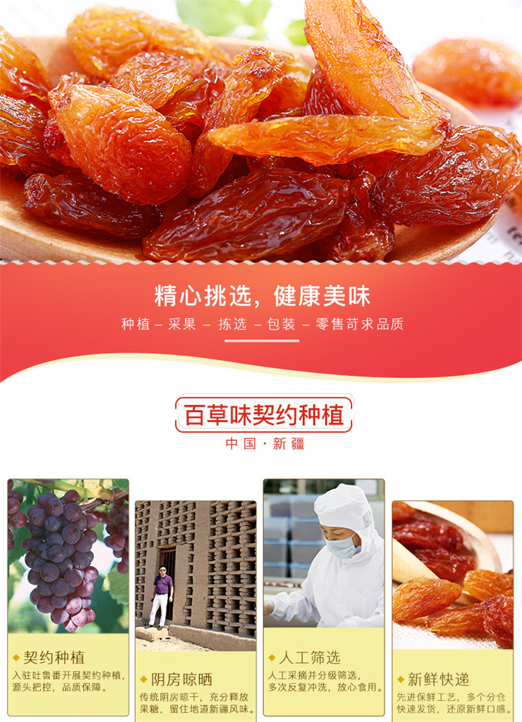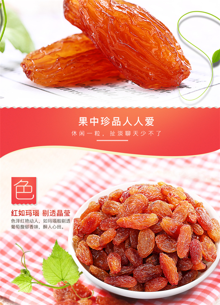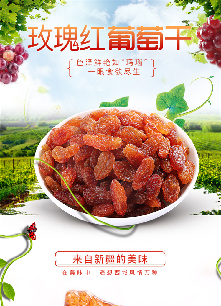 百草味玫瑰红葡萄干100g新疆特产蜜饯无籽提子果