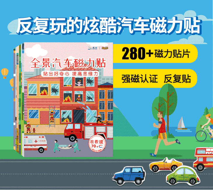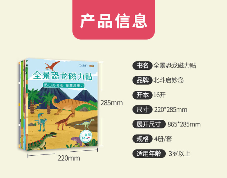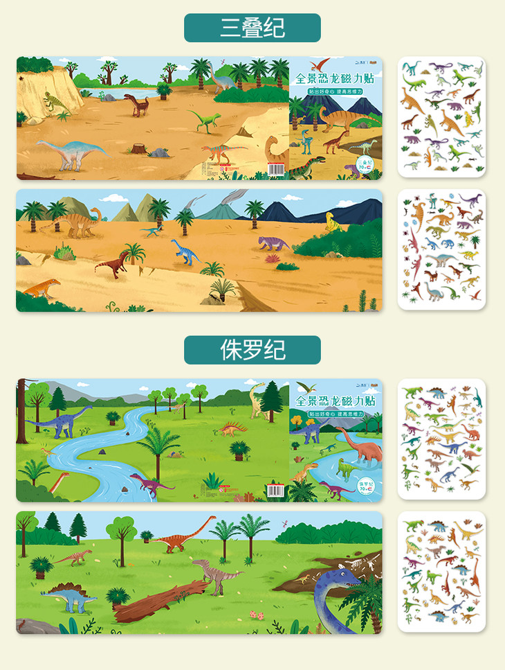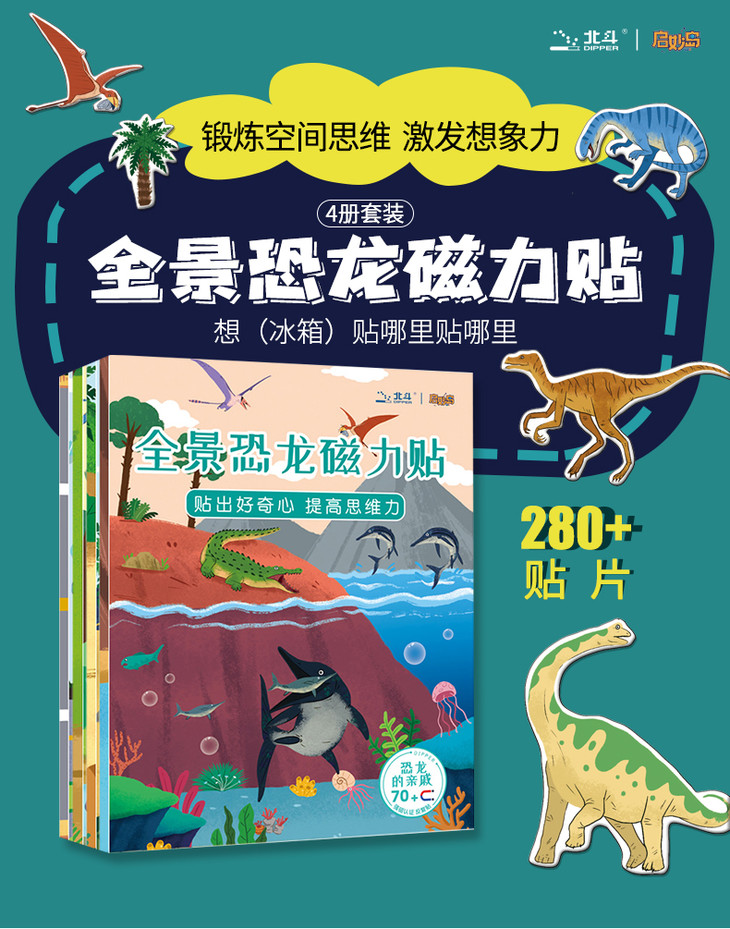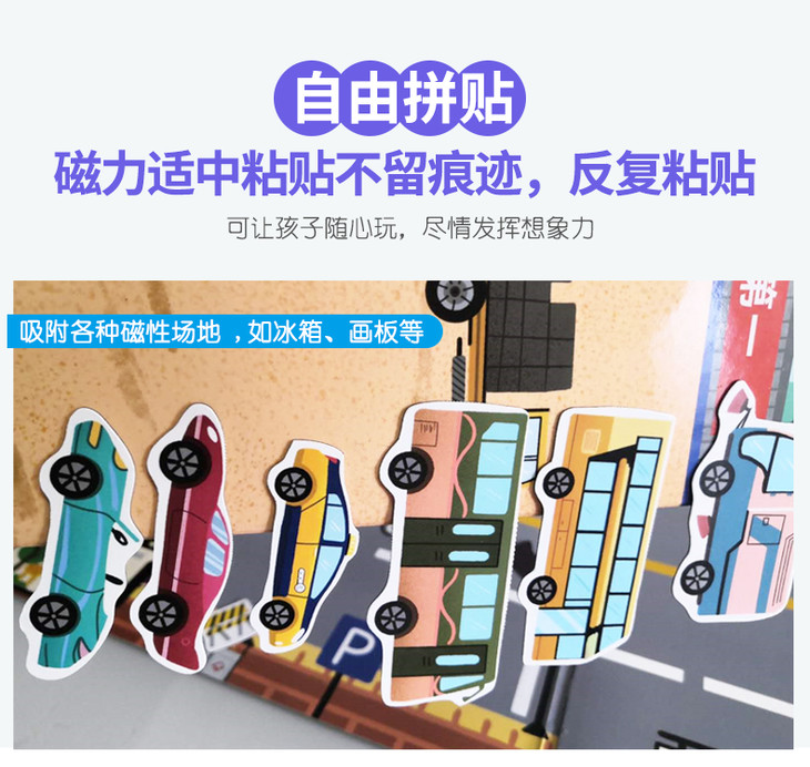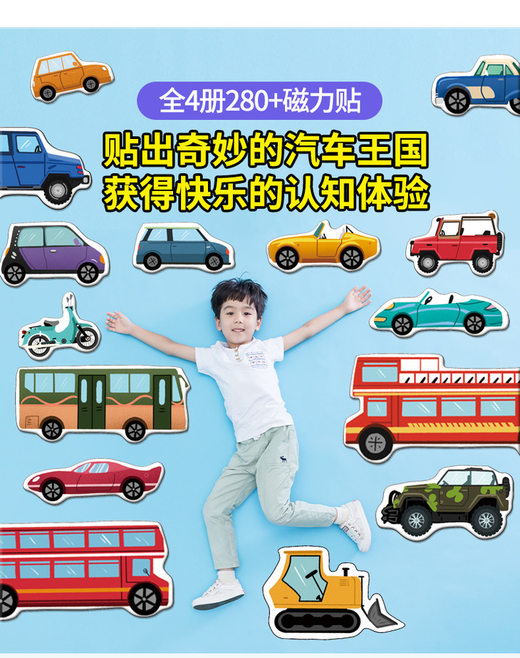 北斗 全景磁力贴游戏书 (全8册)益智恐龙、汽车磁力贴纸书 2岁+,儿童3D立体反复粘贴纸贴画书