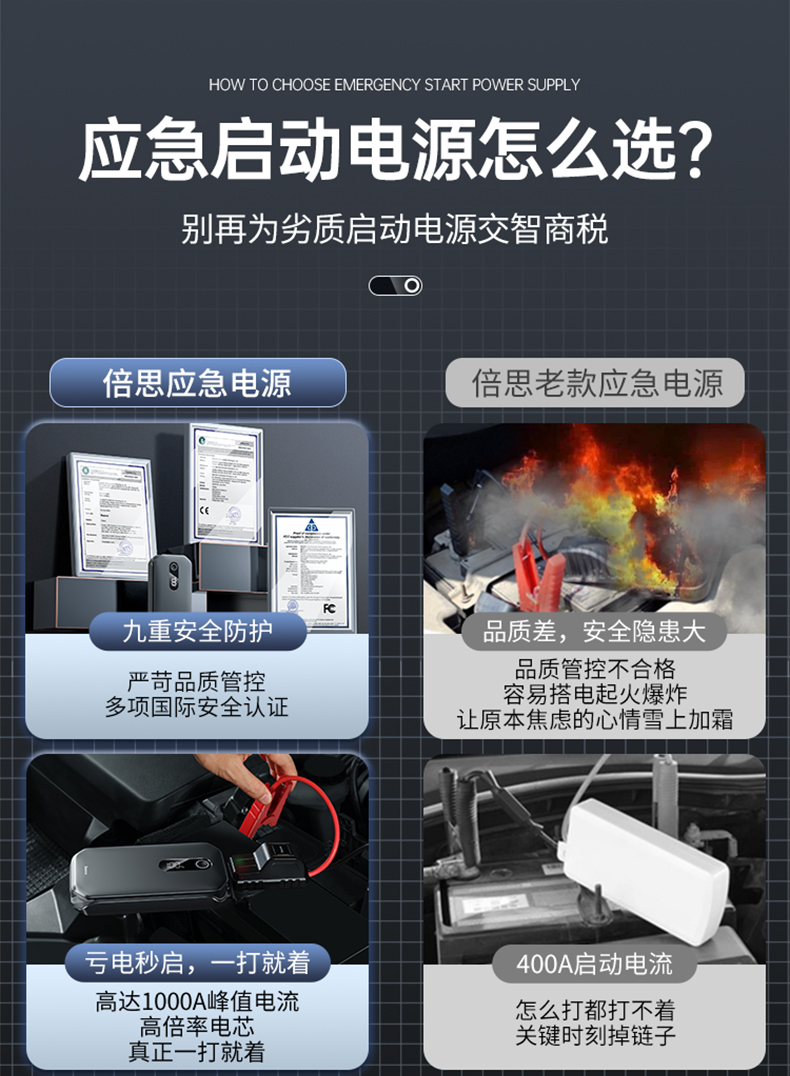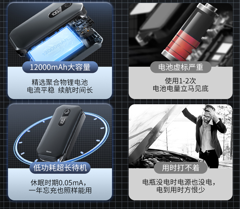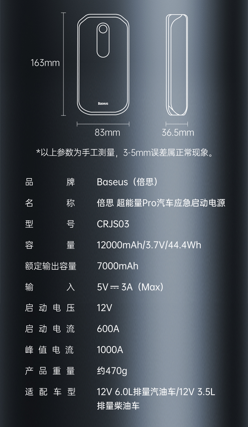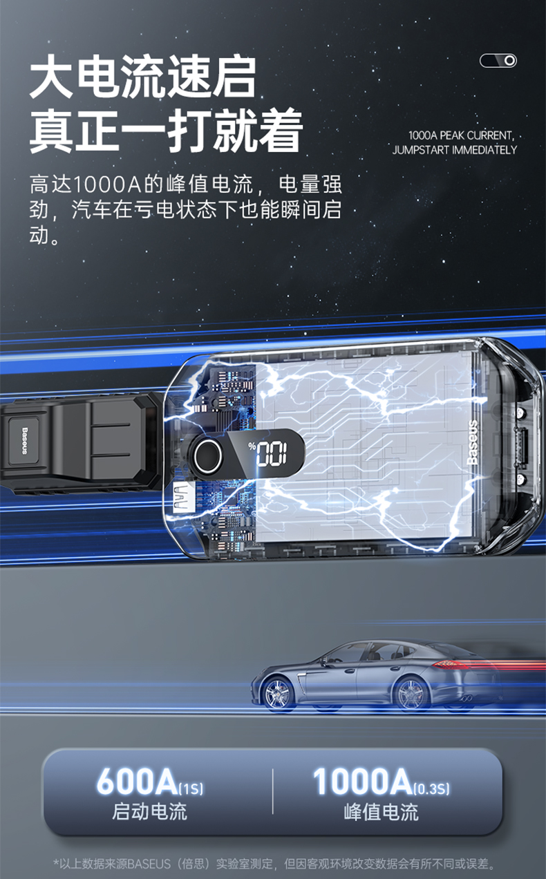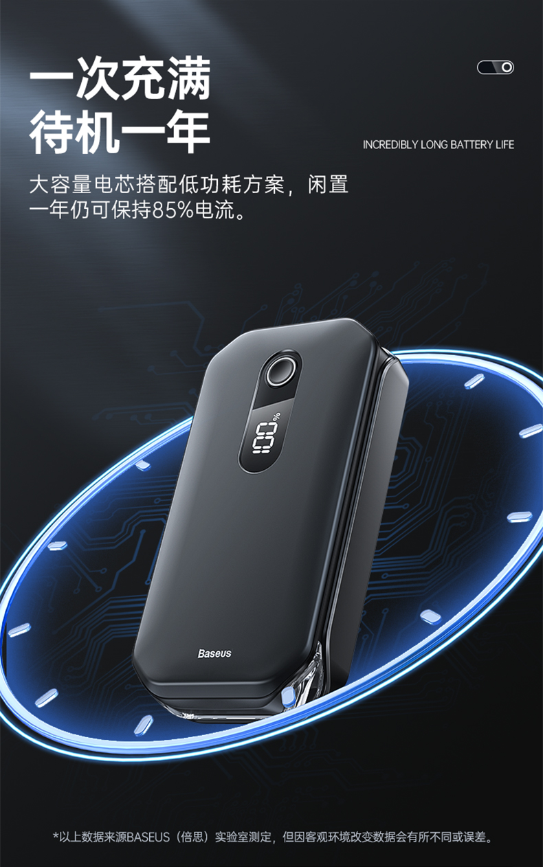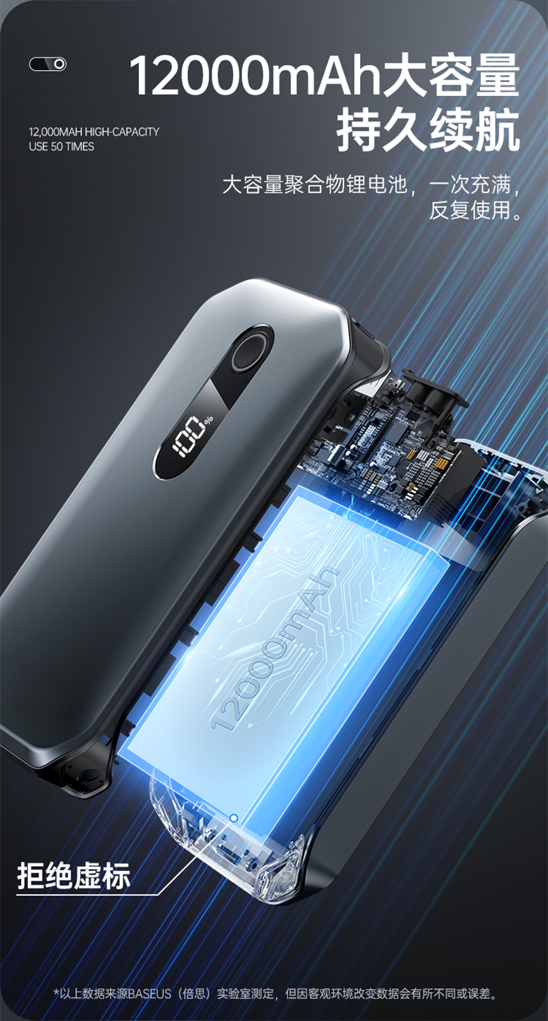 倍思 超能量Pro汽车应急启动电源(12000mAh,5V/3A,峰值电流1000A)汽车户外备用启动电源