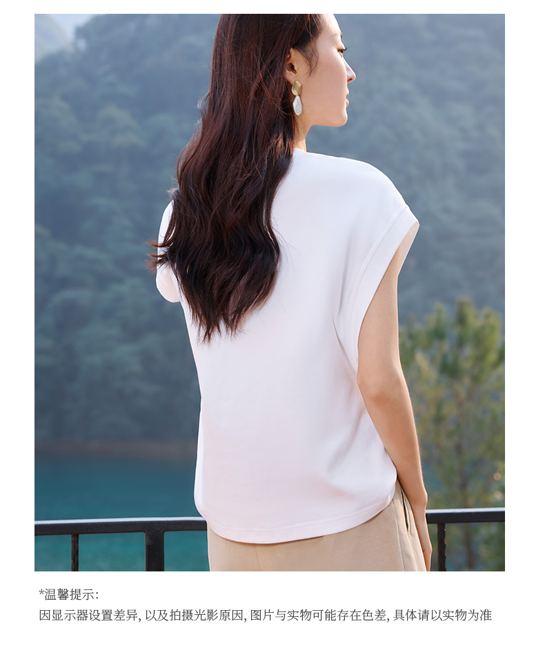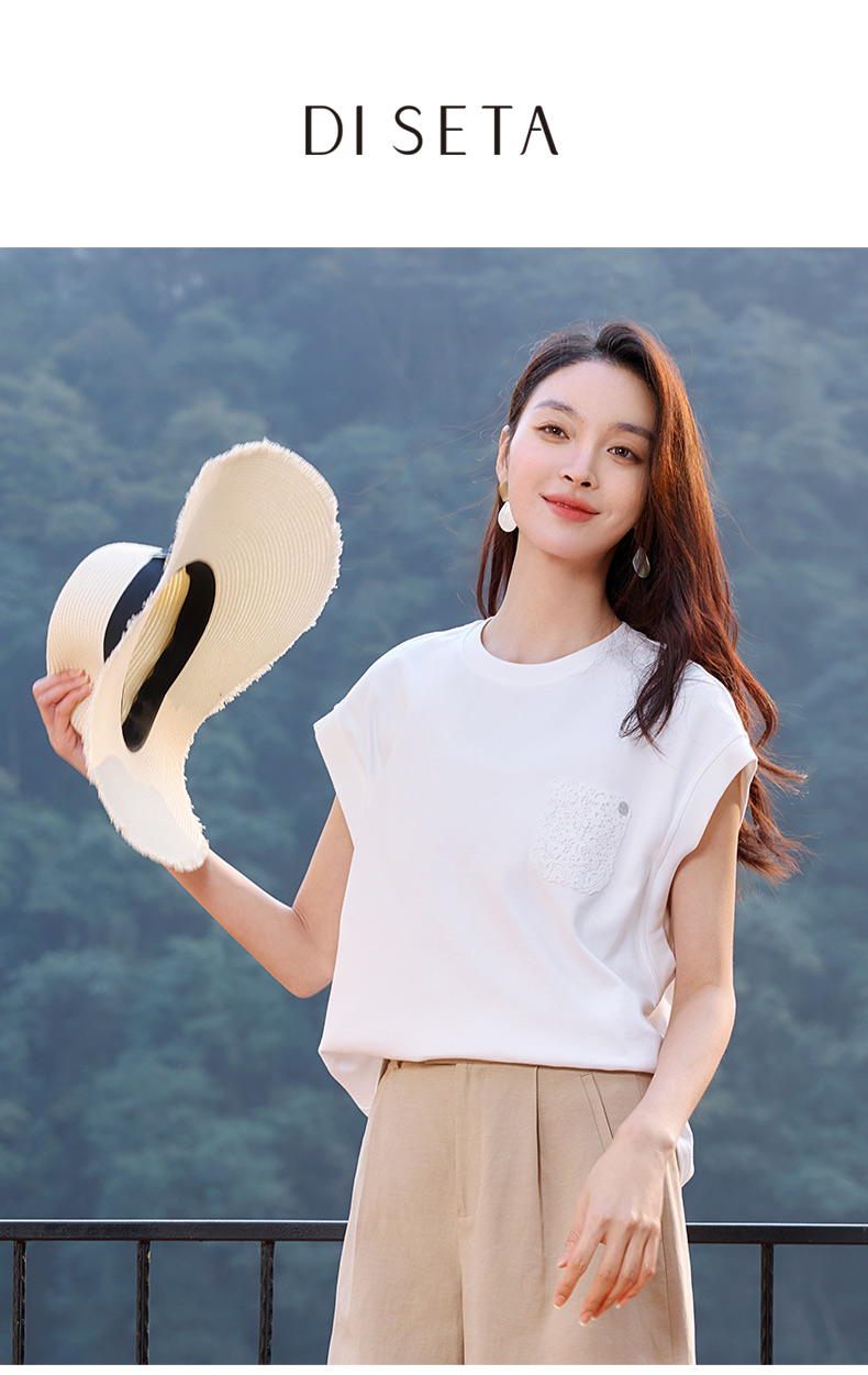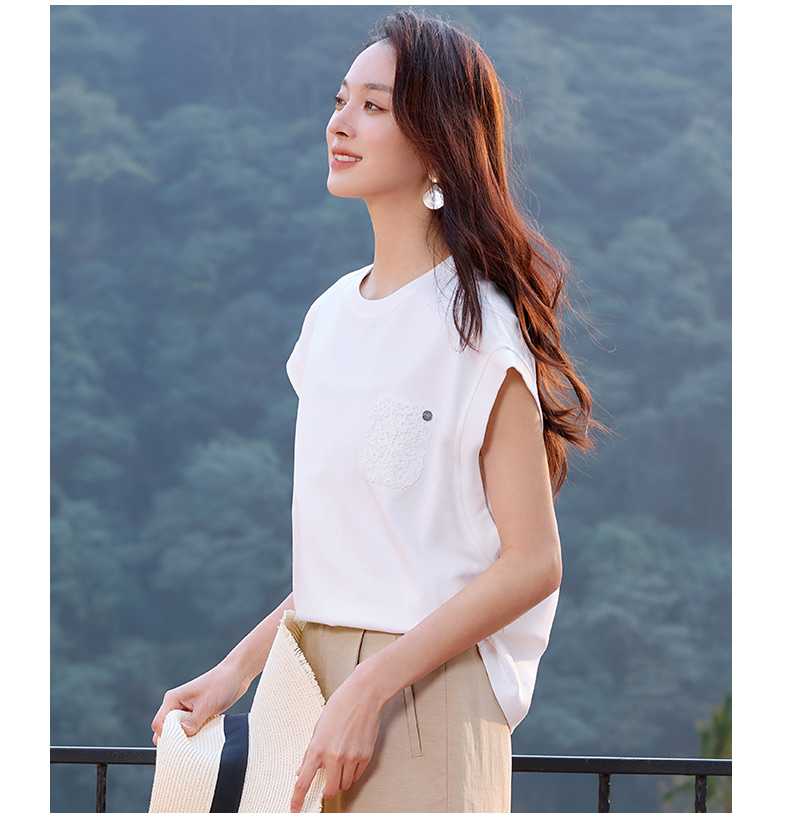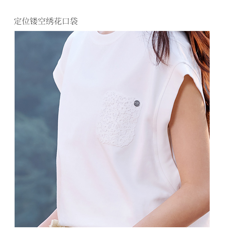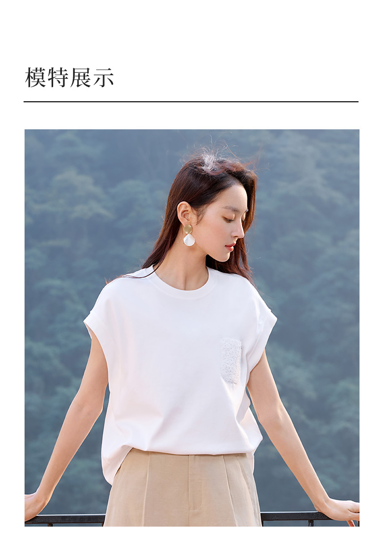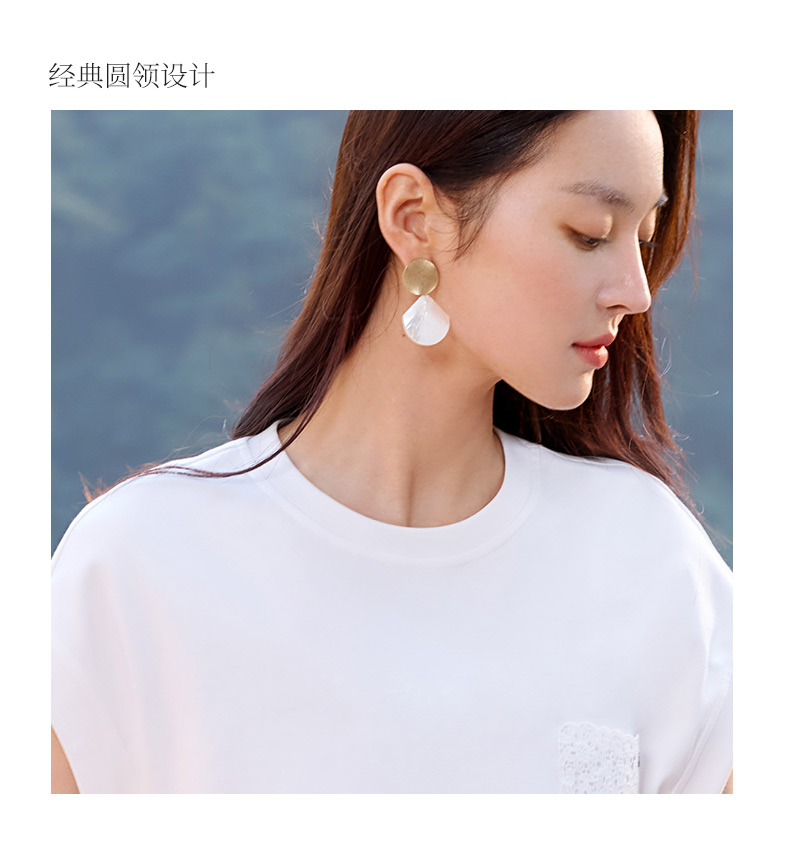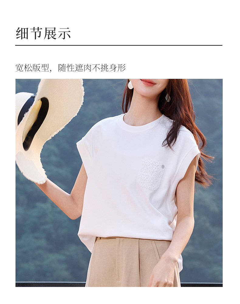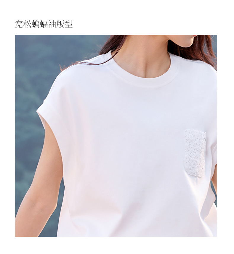 玳莎蝙蝠袖圆领T恤女2025年夏季新款宽松百搭定位绣花纯棉上衣 FB32109