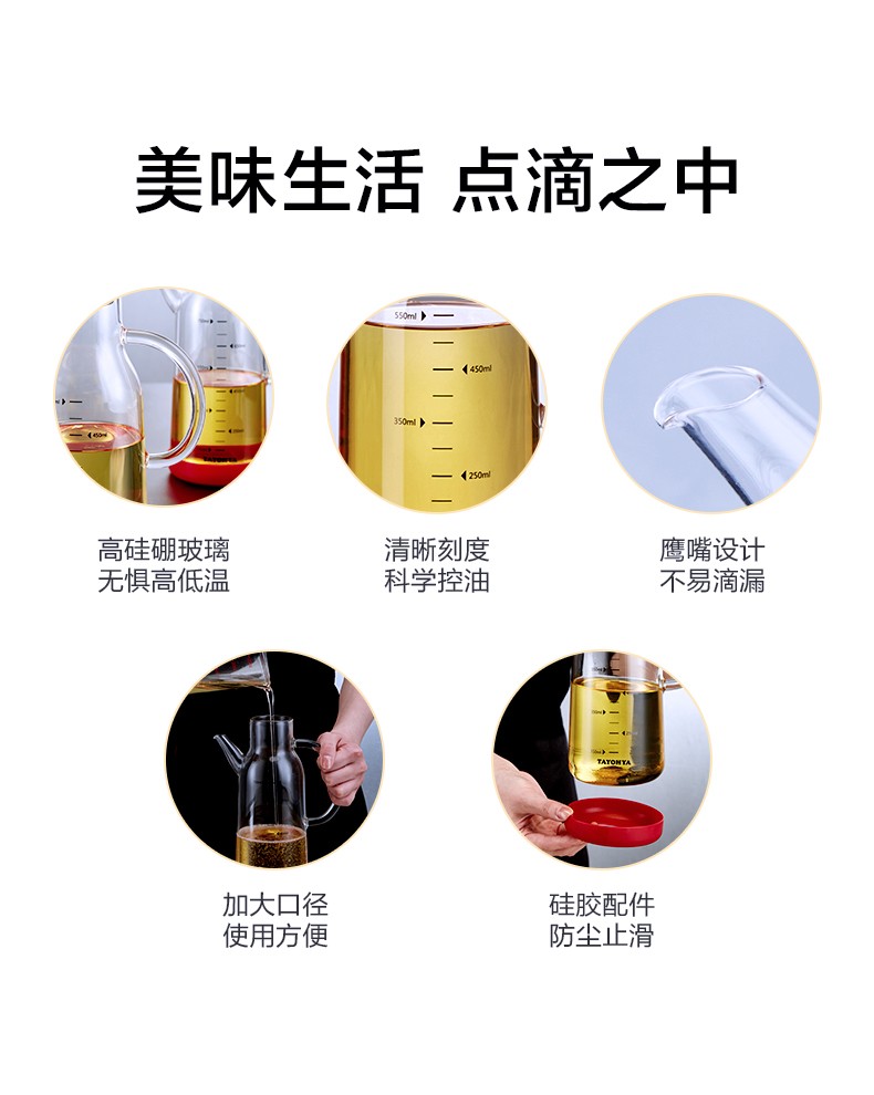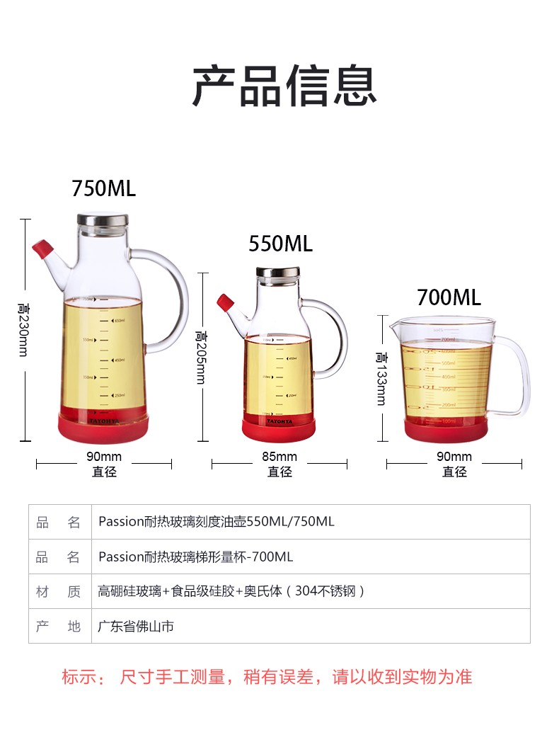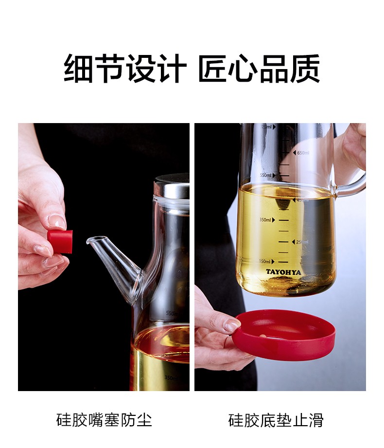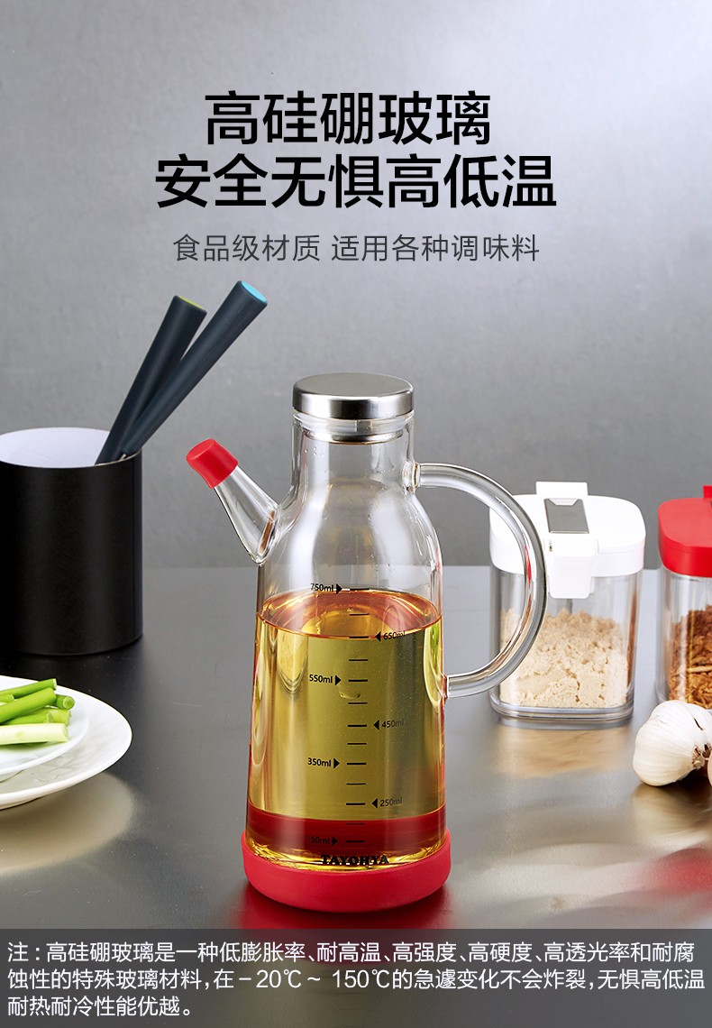 【6F】多样屋(TAYOHYA) 玻璃油壶加厚高硼硅防漏油瓶带刻度家用厨房酱油瓶醋瓶 刻度油壶-550ml