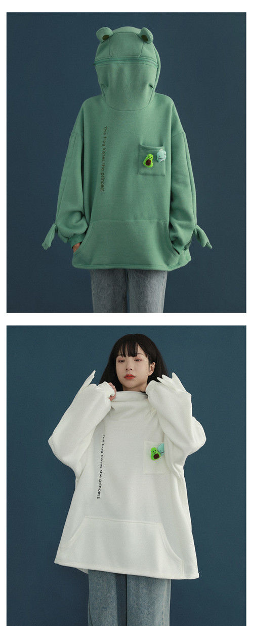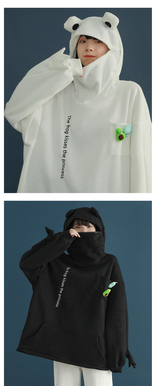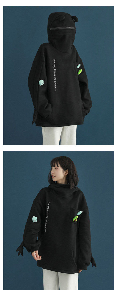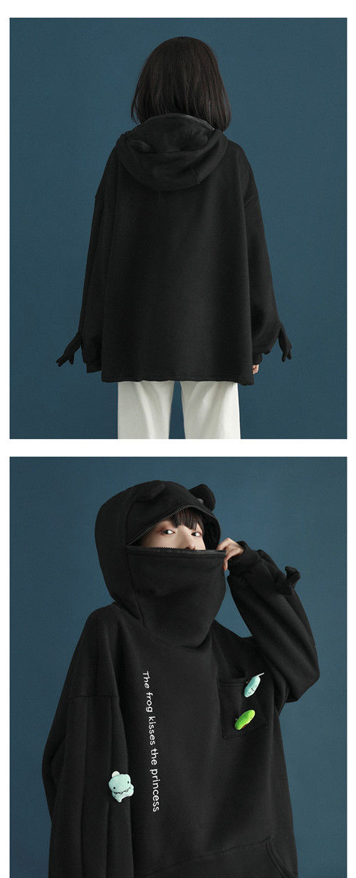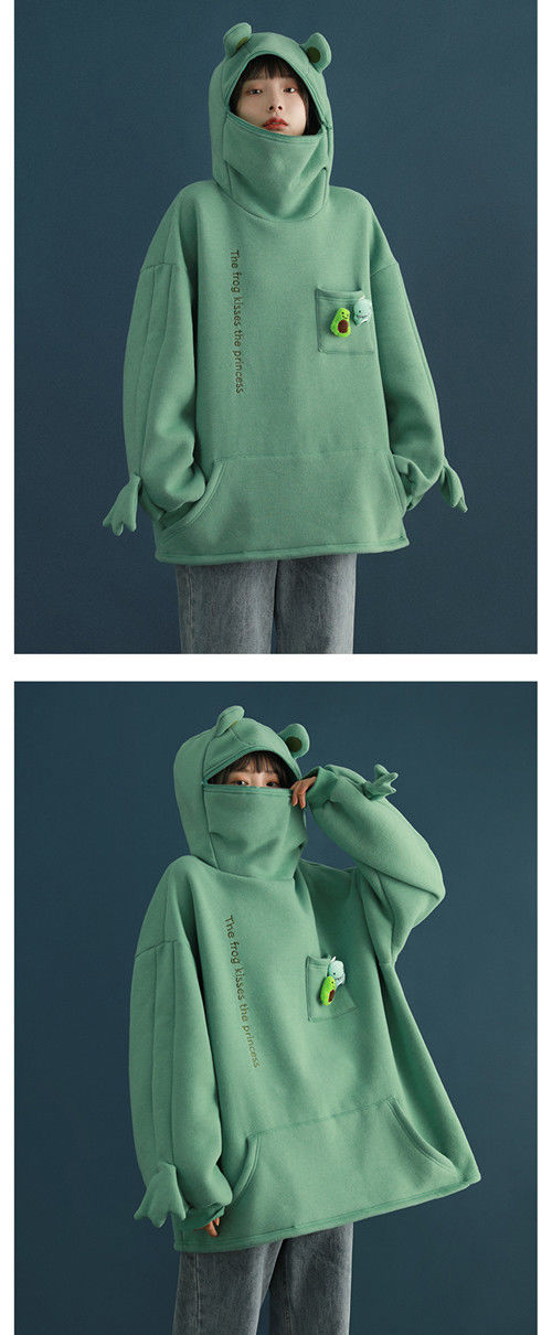 加绒青蛙卫衣外套女学生韩版宽松百搭潮ins冬季新款情侣连帽上衣
