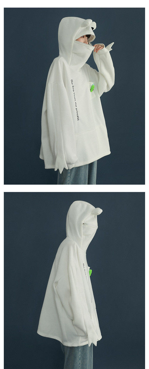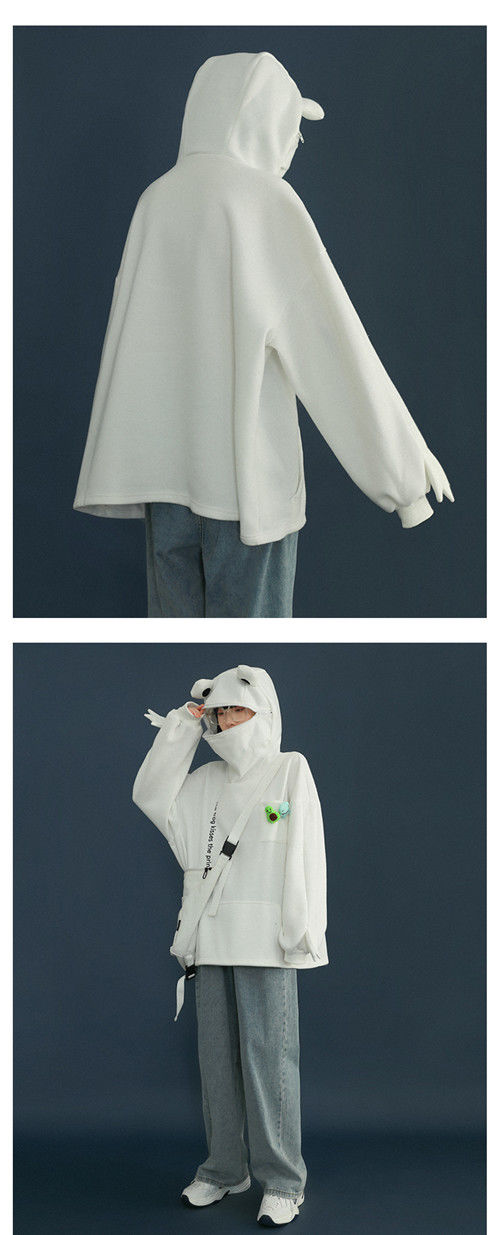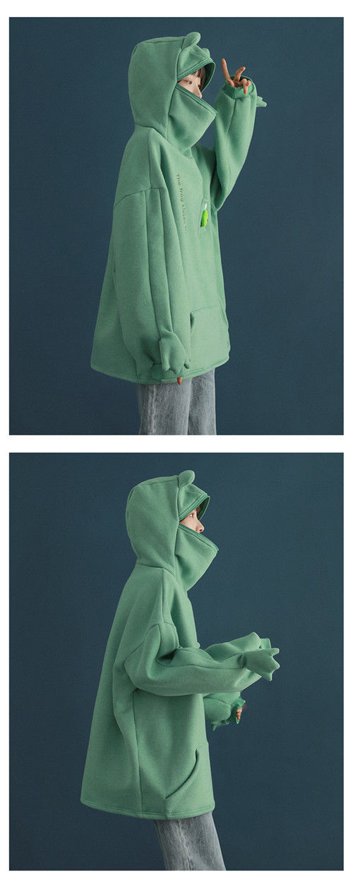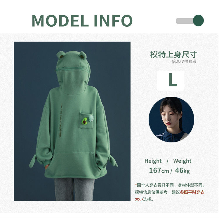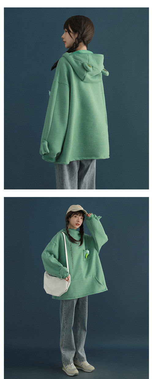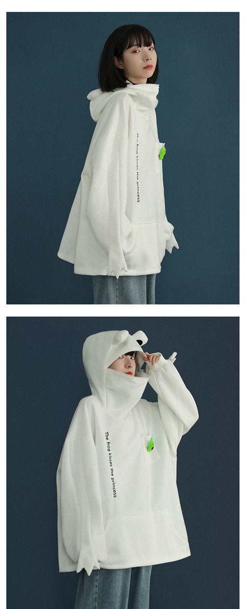 加绒青蛙卫衣外套女学生韩版宽松百搭潮ins冬季新款情侣连帽上衣