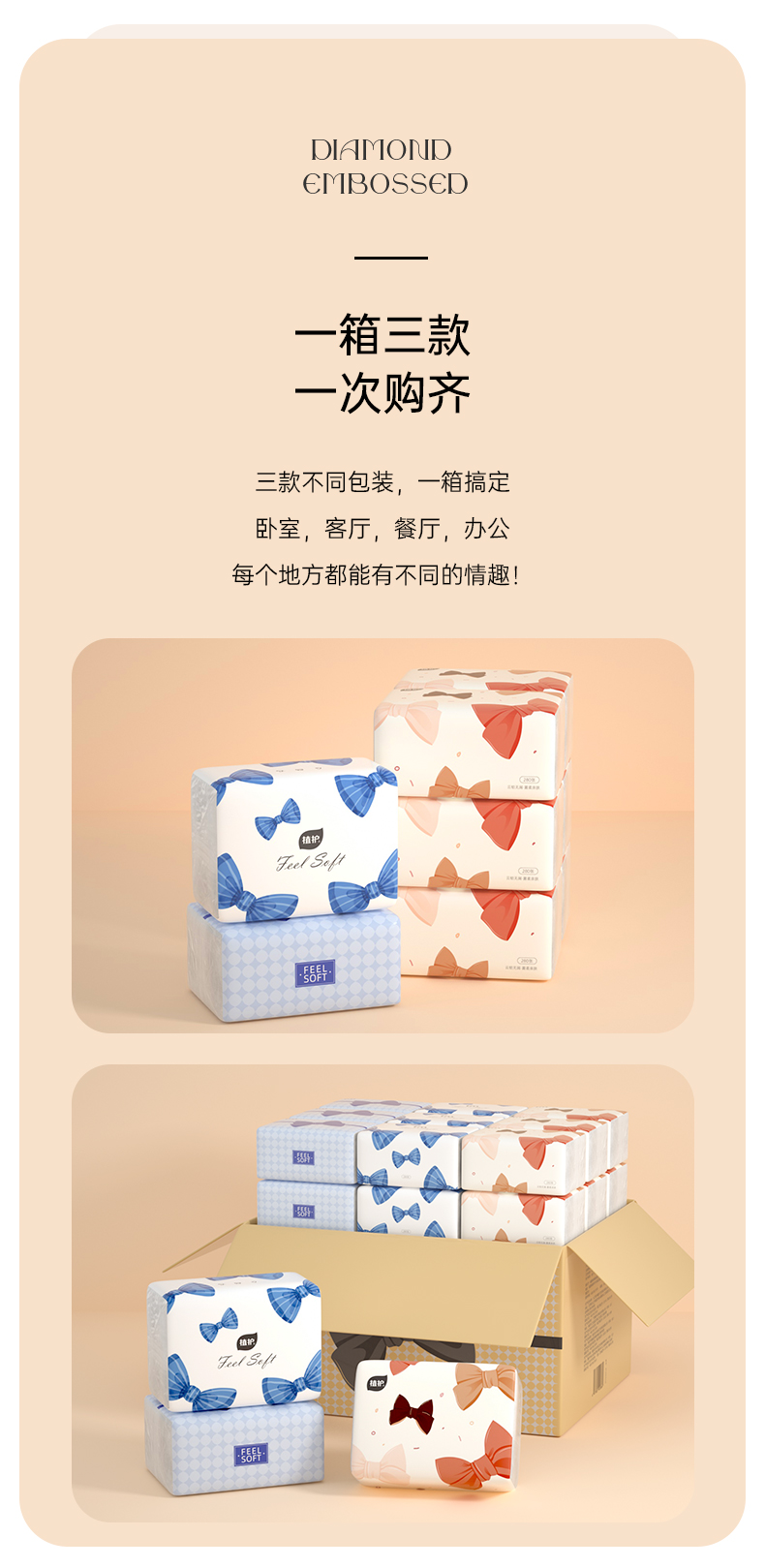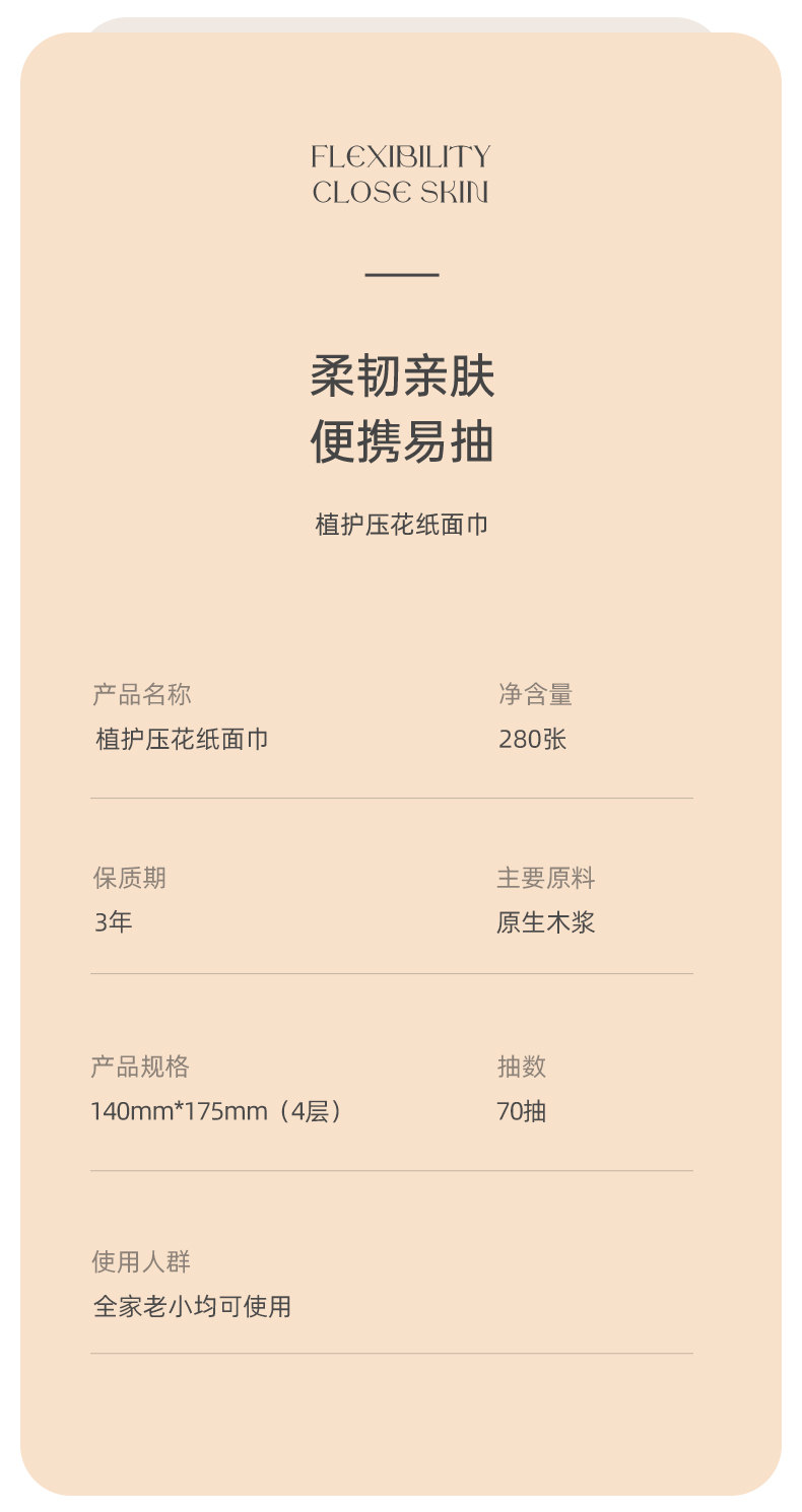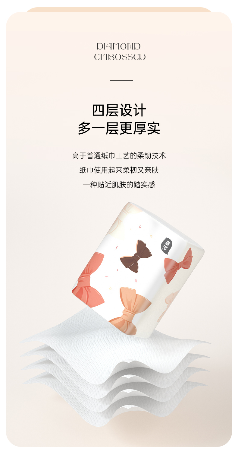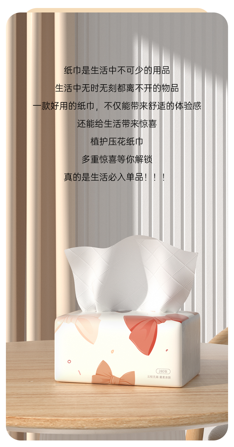 植护 气垫纸巾蝴蝶结压花纸面巾280张/包