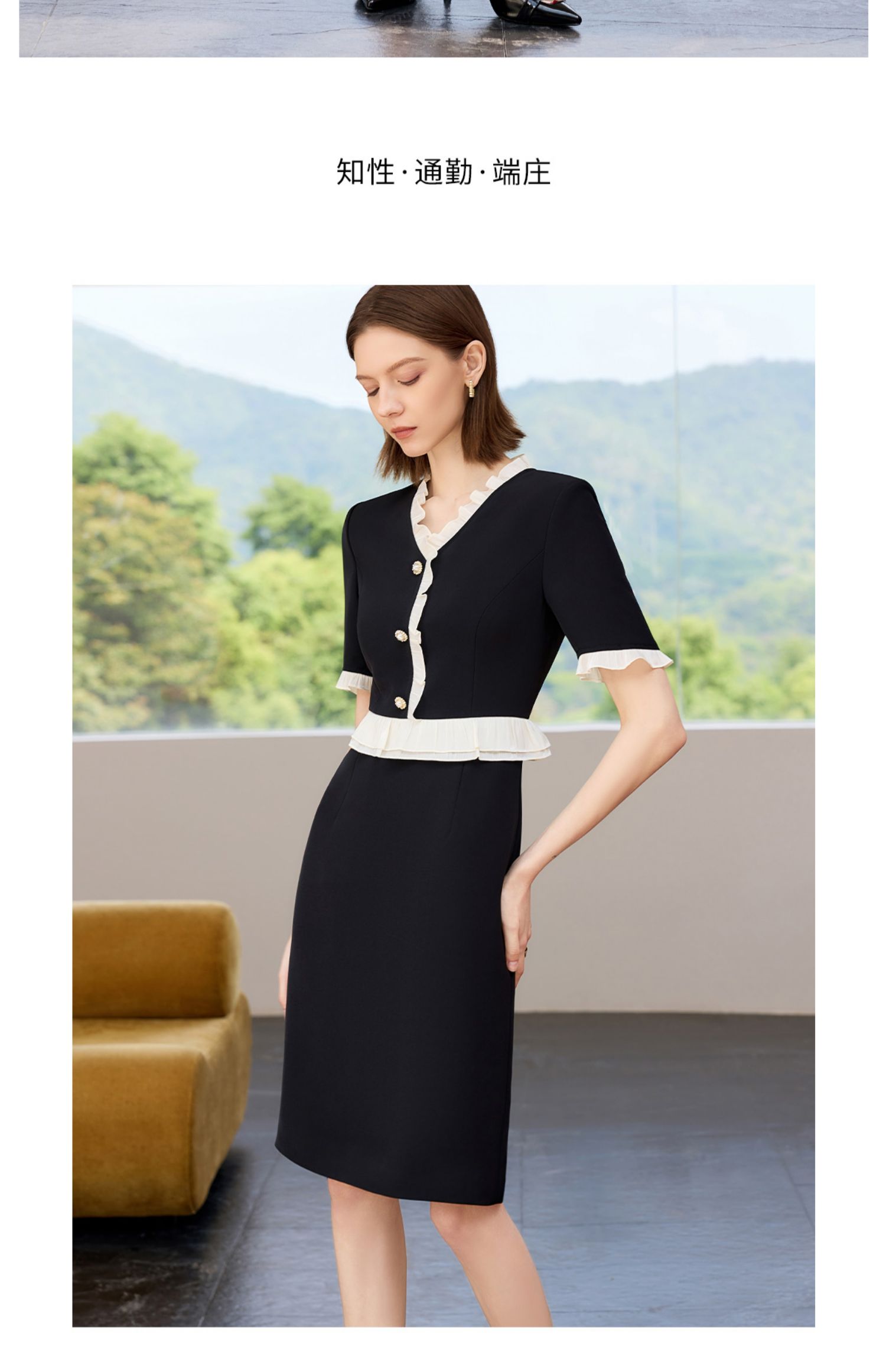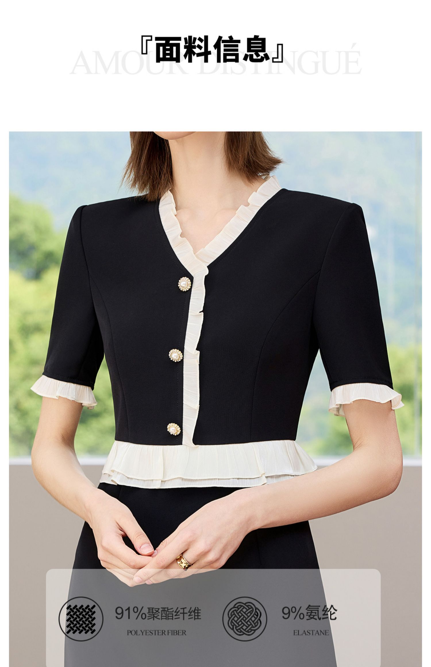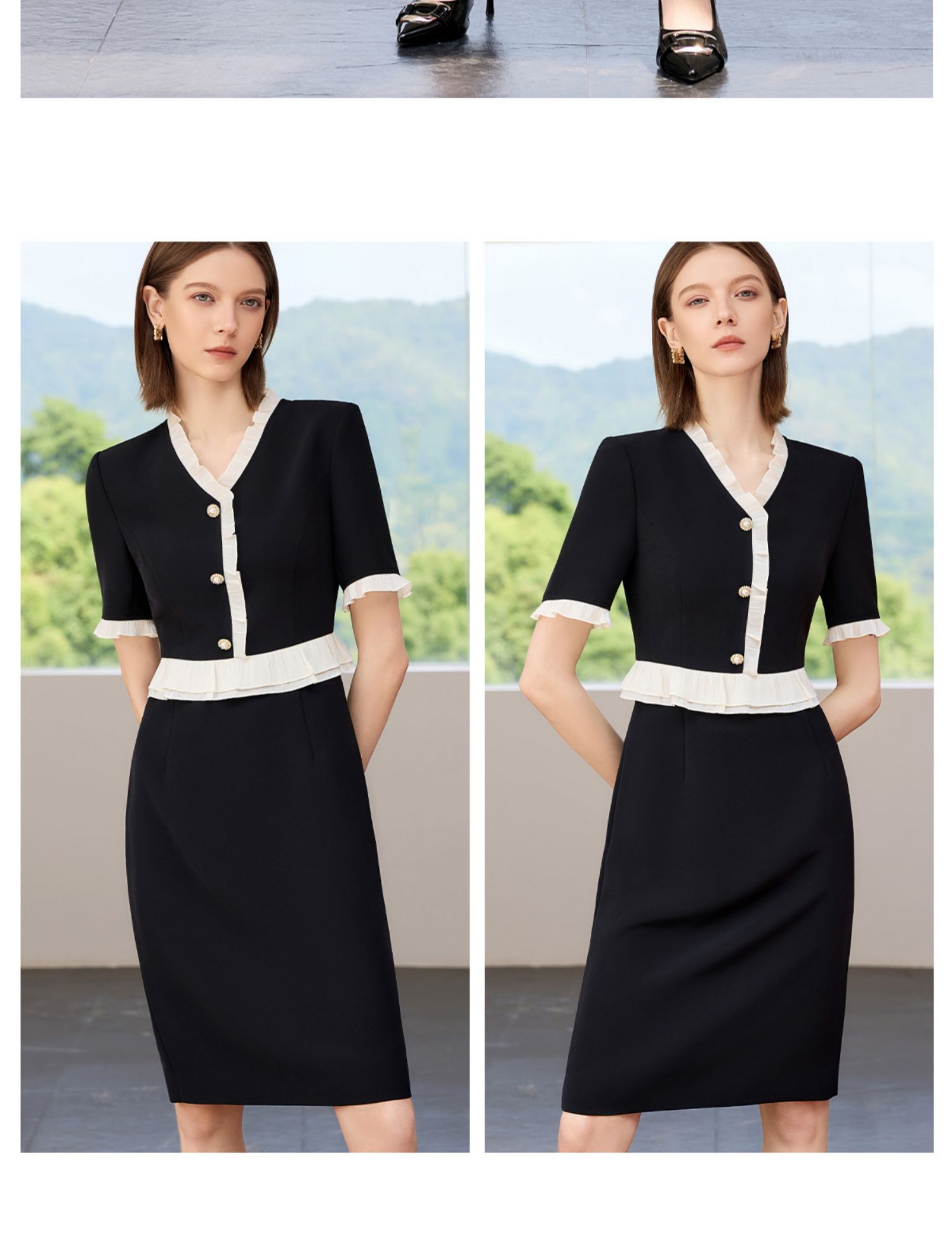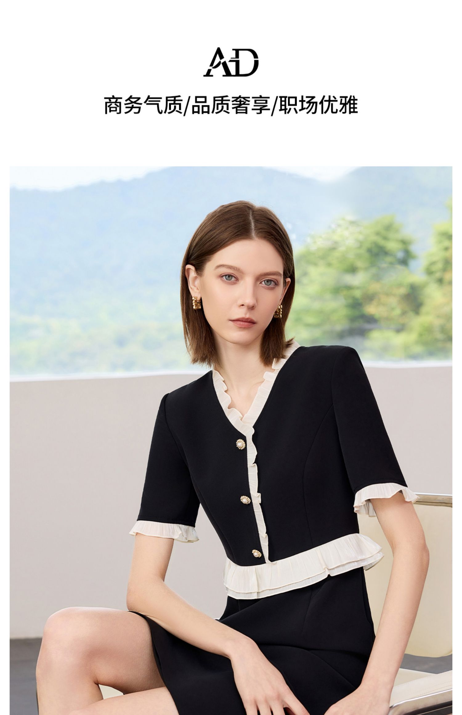 AD御姐范连衣裙女夏季2025新款洋气木耳边假两件西装裙时尚通勤风