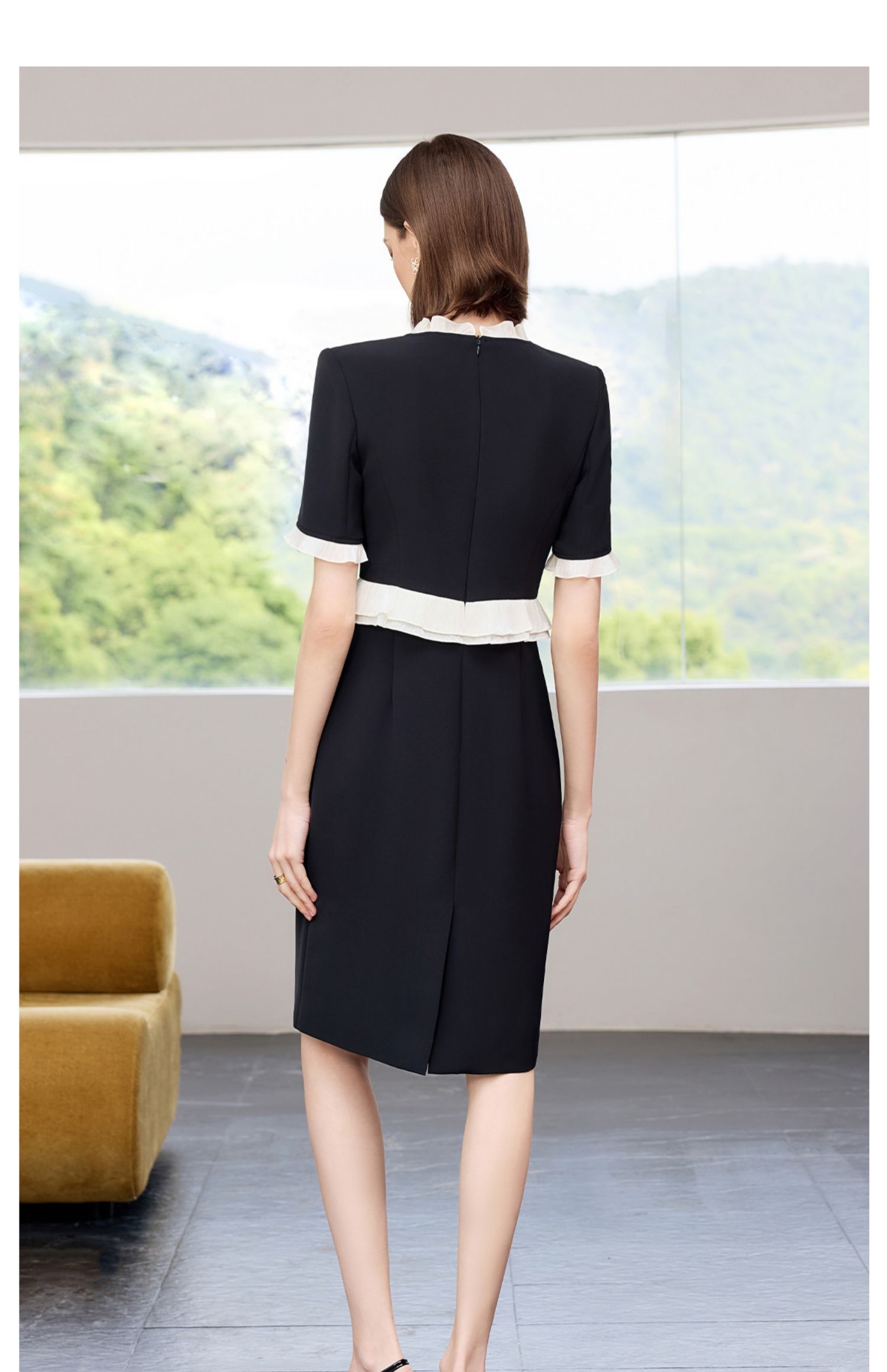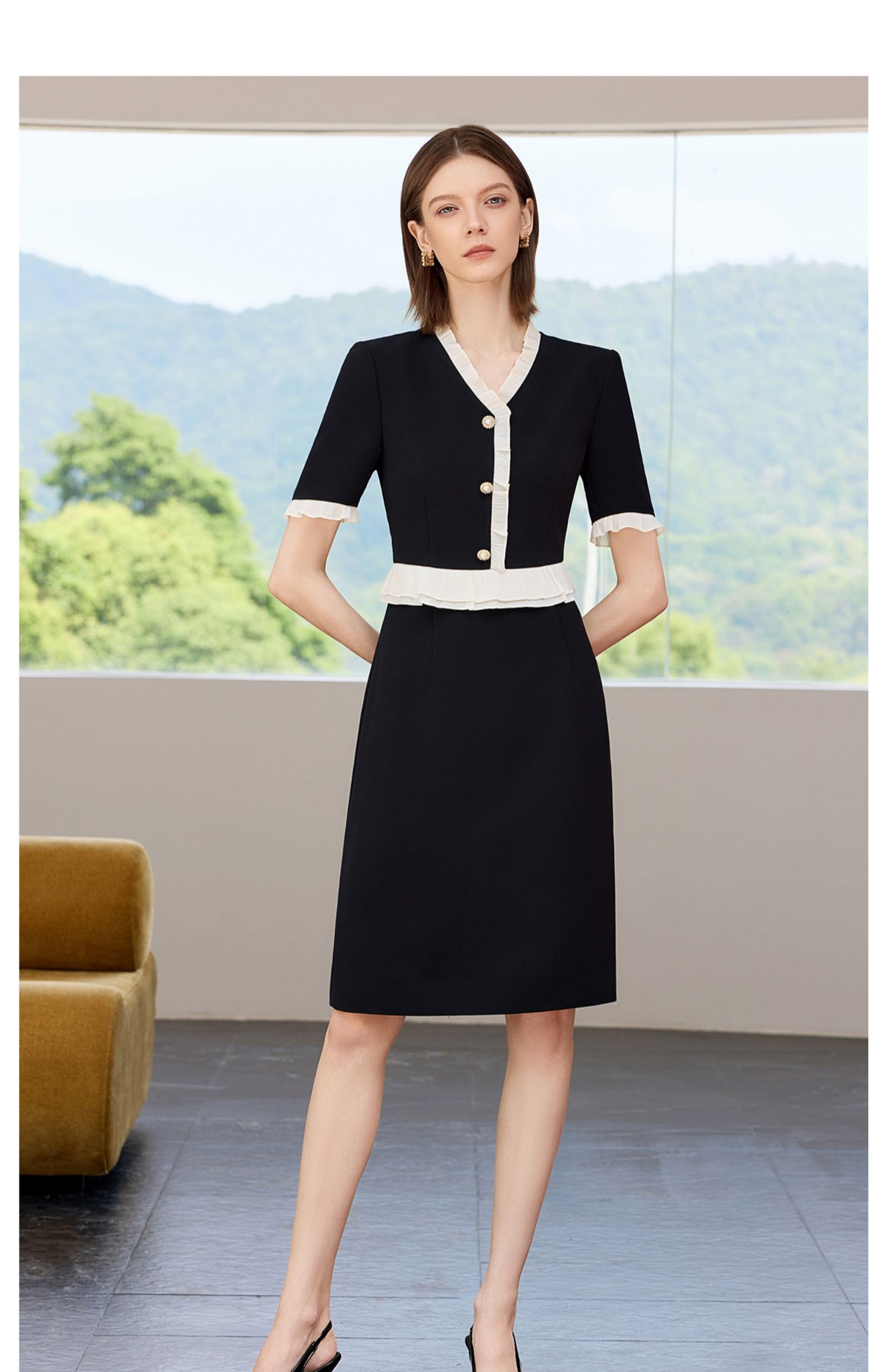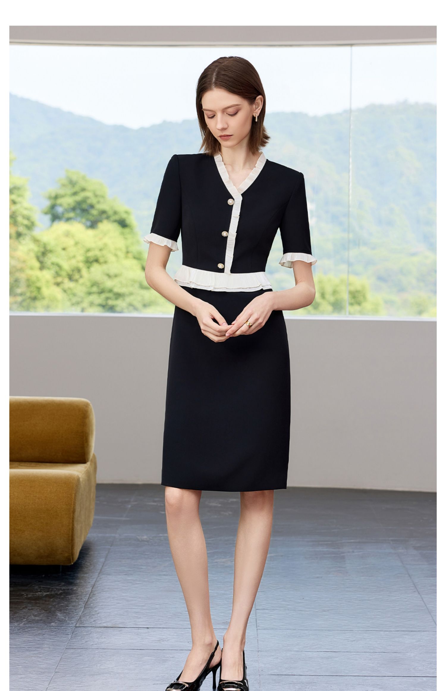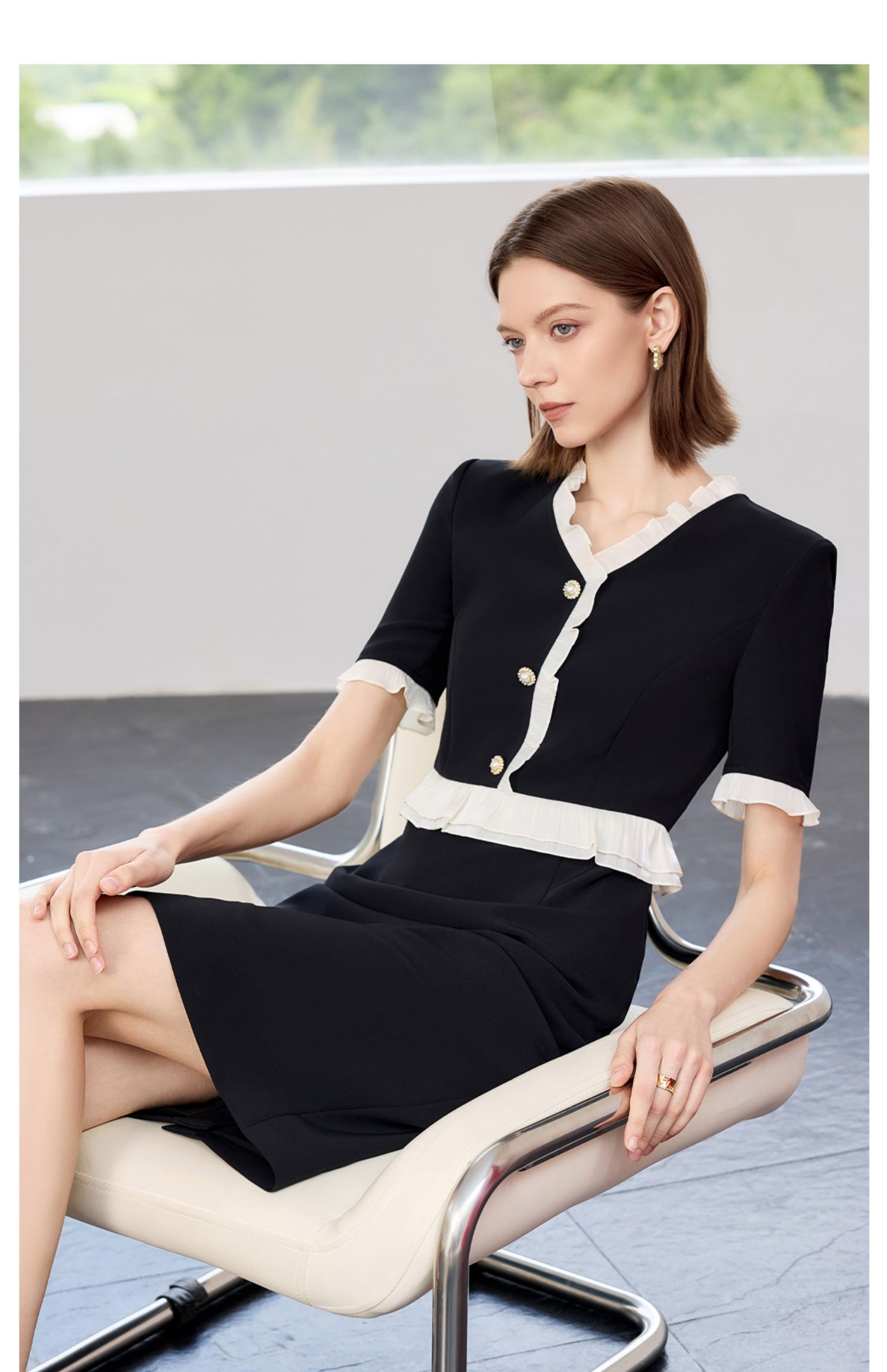 AD御姐范连衣裙女夏季2025新款洋气木耳边假两件西装裙时尚通勤风