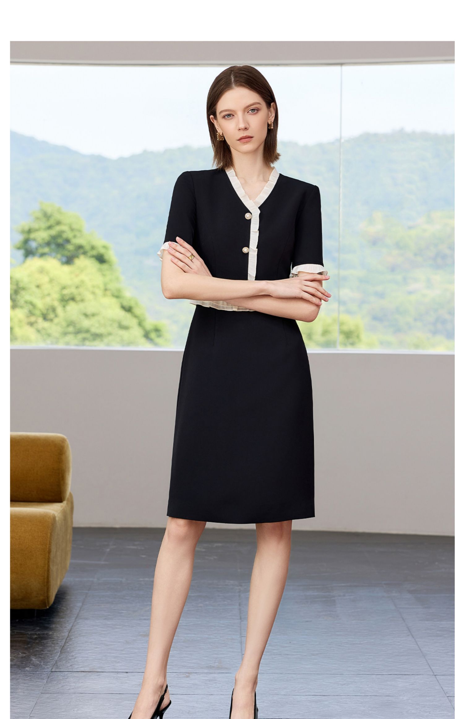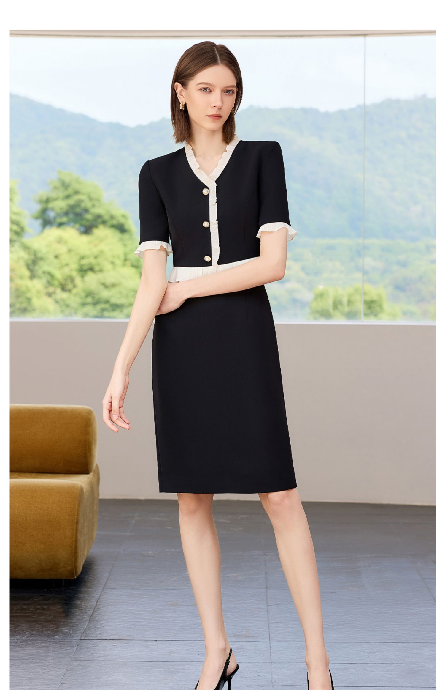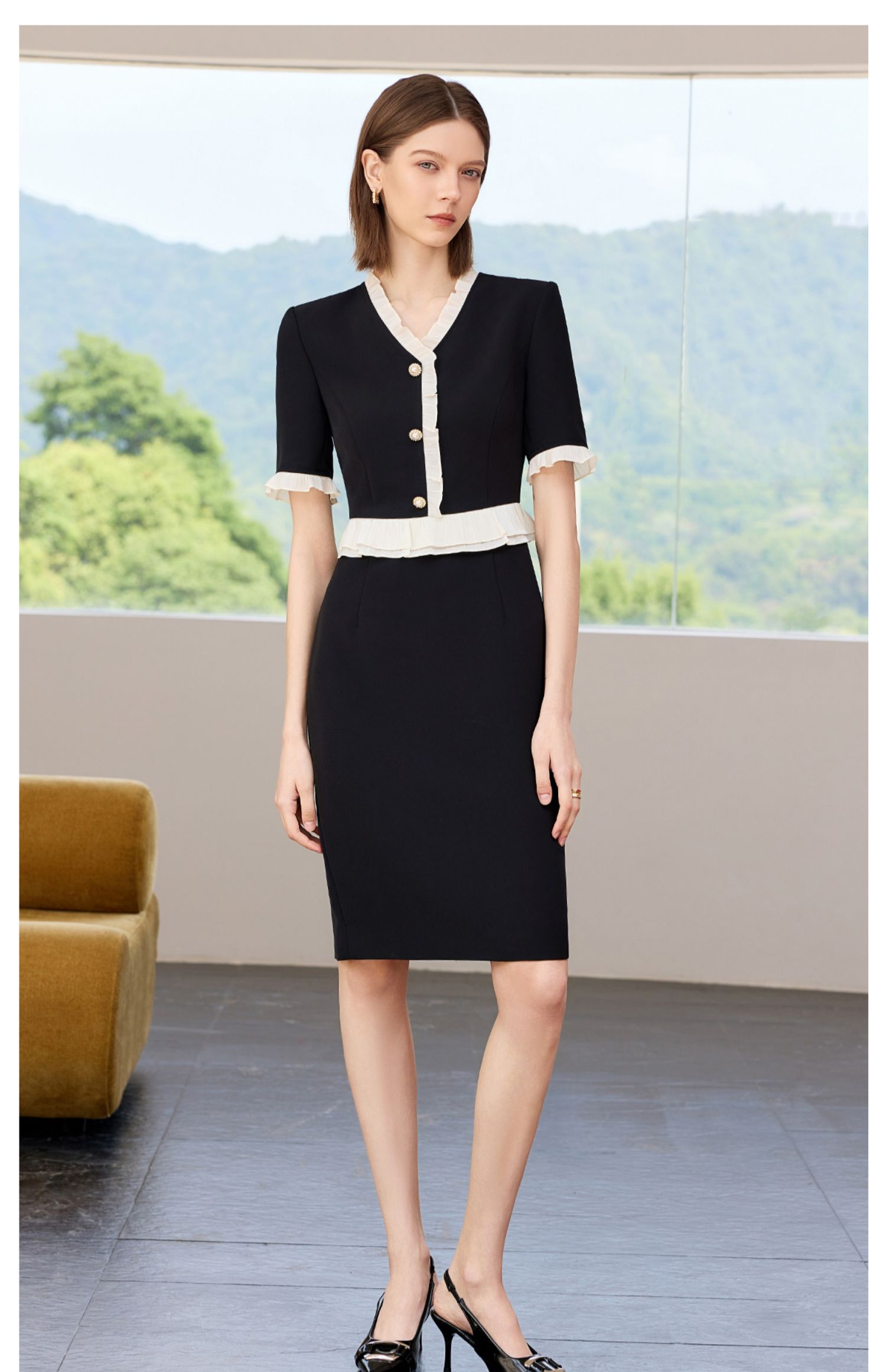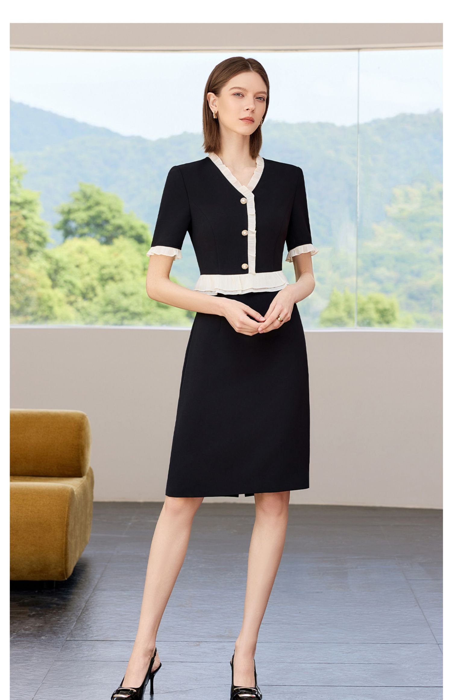 AD御姐范连衣裙女夏季2025新款洋气木耳边假两件西装裙时尚通勤风