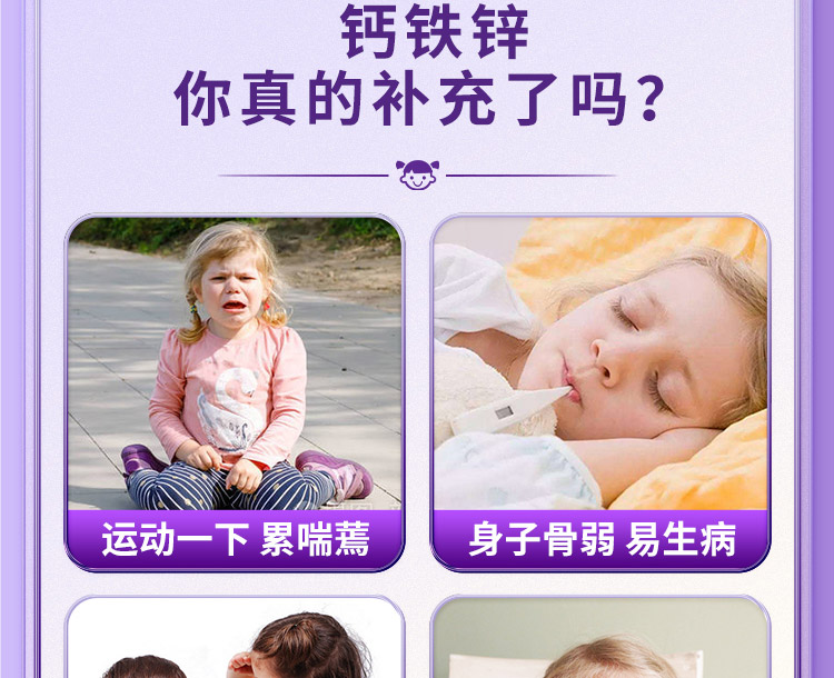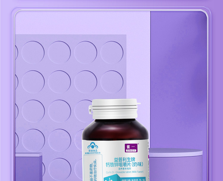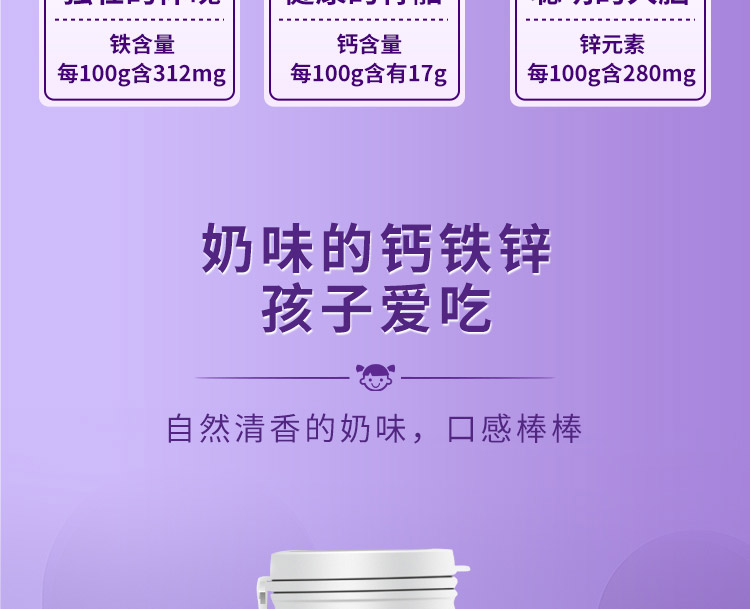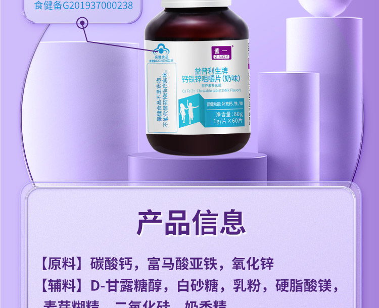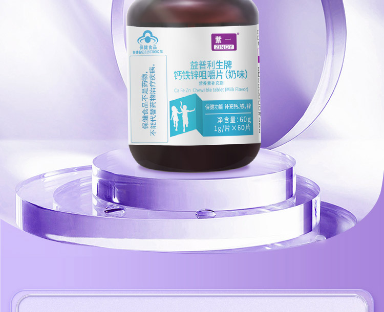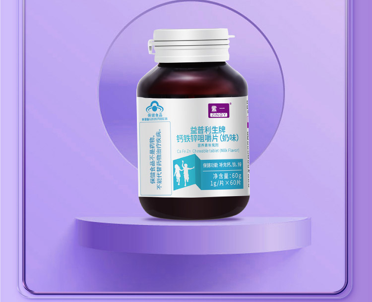 【助力成长,补充钙铁锌】紫一钙铁锌咀嚼片 60片/瓶