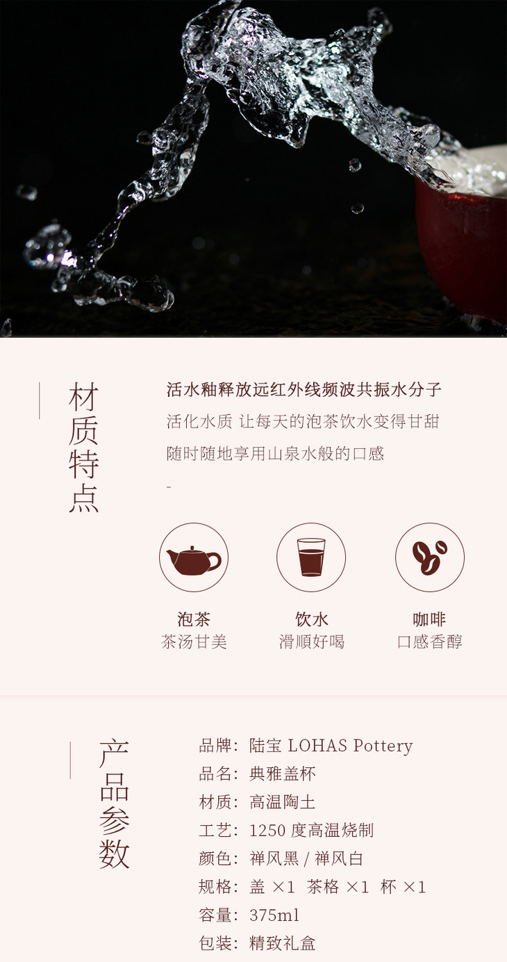 【LOHAS陆宝 典雅盖杯】茶具礼盒套装 茶礼陶瓷茶具送礼自用高端功夫茶具套组当代人文美学茶壶茶杯茶盘 办公茶具 泡茶过滤茶杯子茶具 陶瓷水杯 375ml【台湾陆宝】