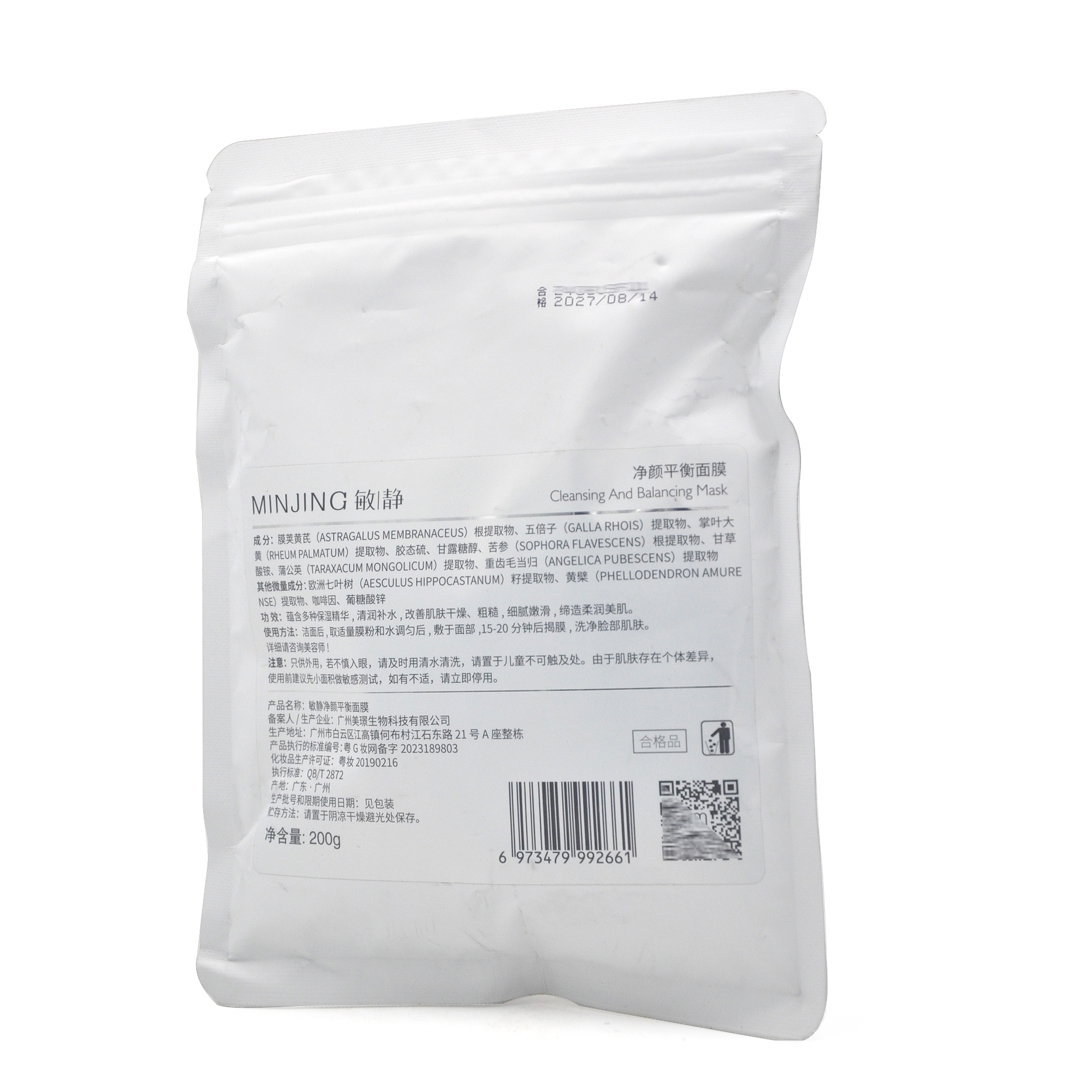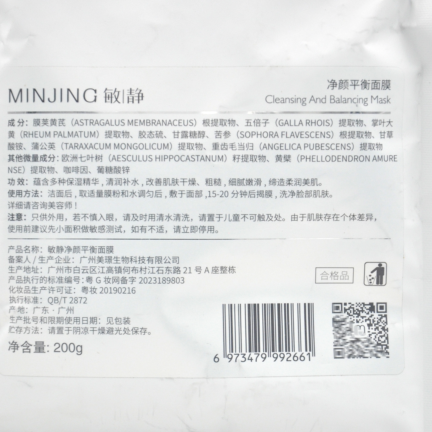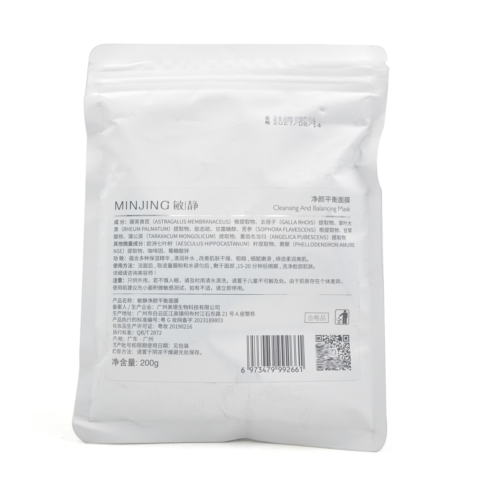 敏静清痘平衡面膜200g