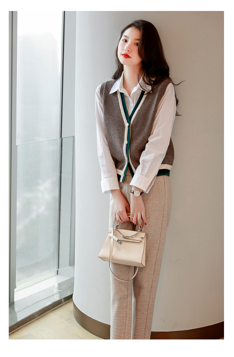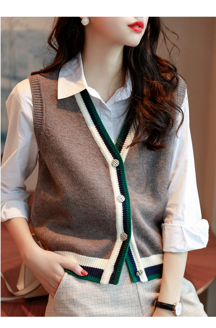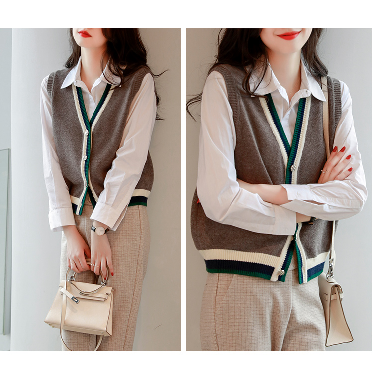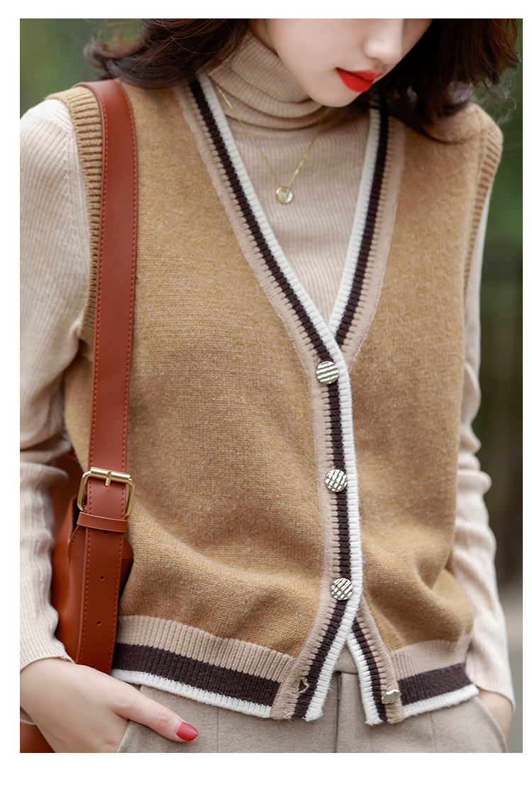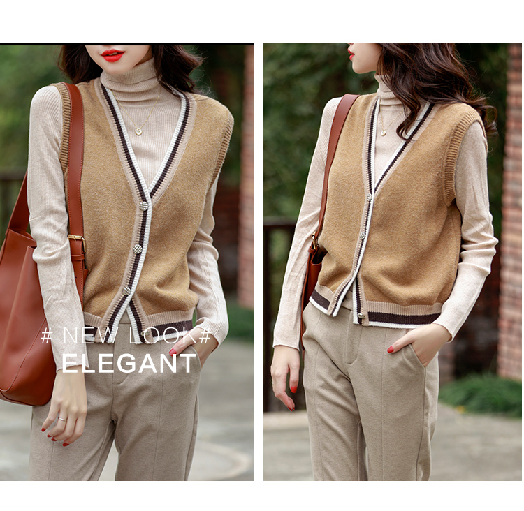 2021春秋冬新款针织开衫马甲时尚宽松V领无袖针织背心马甲外套女