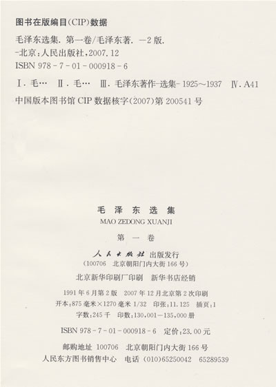 第四,本选集有两种装订的本子。一种是各时期的著作合订的一卷本,另一种是四卷本。四卷本的*卷包括*次国内革命战争时期和第二次国内革命战争时期的著作;第二卷和第三卷包括抗日战争时期的著作;第四卷包括第三次国内革命战争时期的著作。